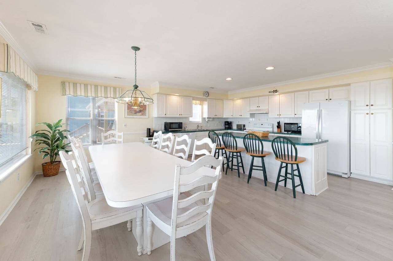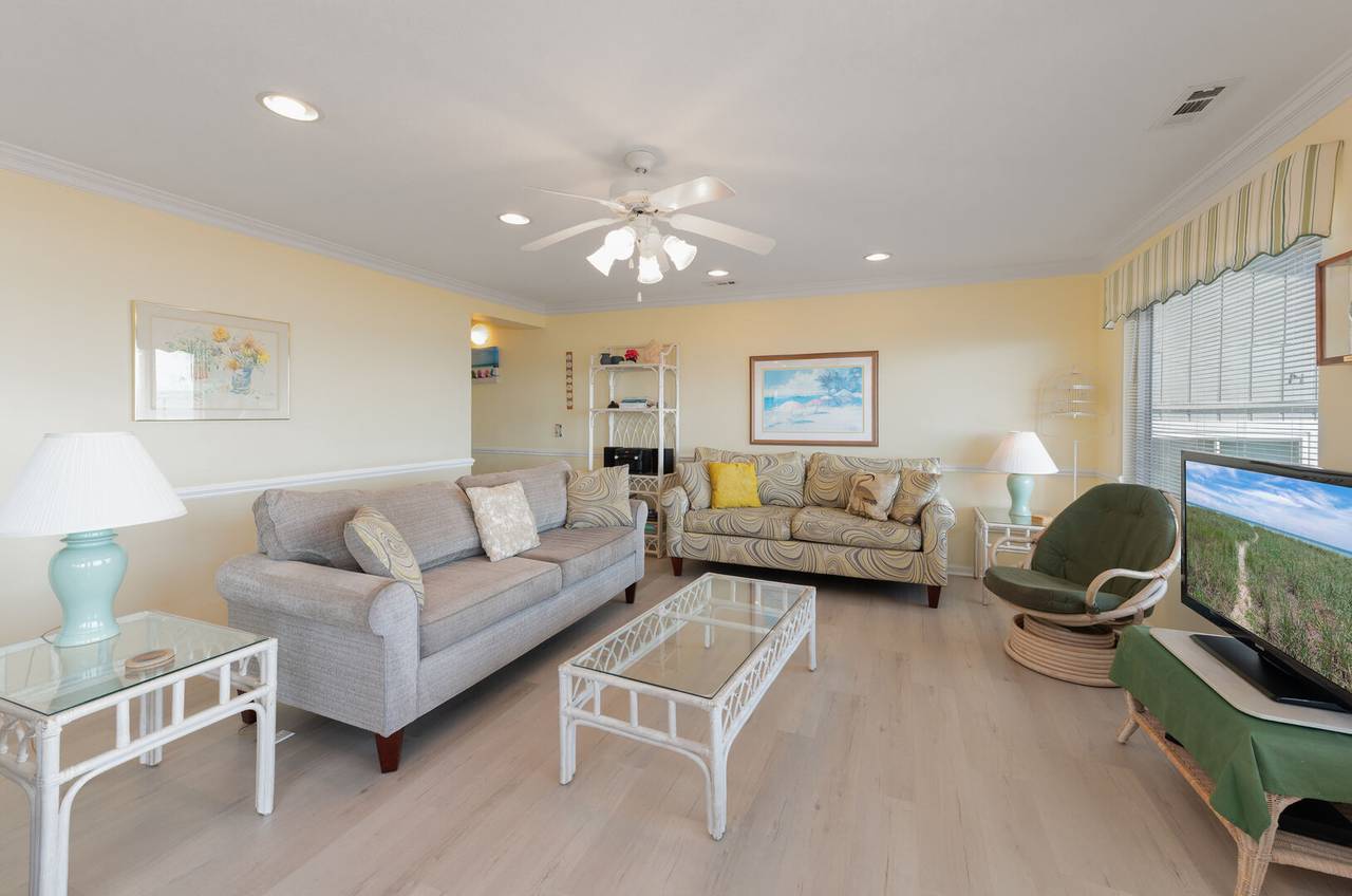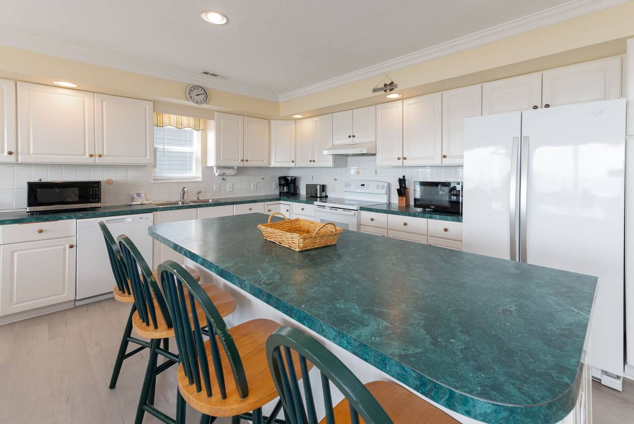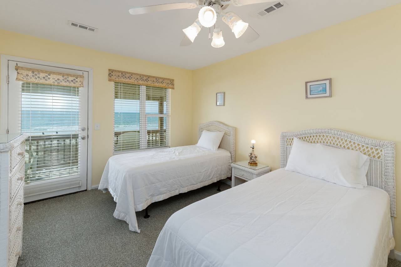 Named after the gorgeous abalone shell, this lovely oceanfront home is beautifully decorated and sure to please with spectacular ocean and marsh views. The home offers two spacious living areas, one upstairs and one downstairs. This five-bedroom home can comfortably host your extended family or circle of friends (1K, 3Q, 4T, 1F futon). Three covered porches, a well-appointed interior, and all the conveniences of being a Hobbs Smart Home will help make your time away easy.