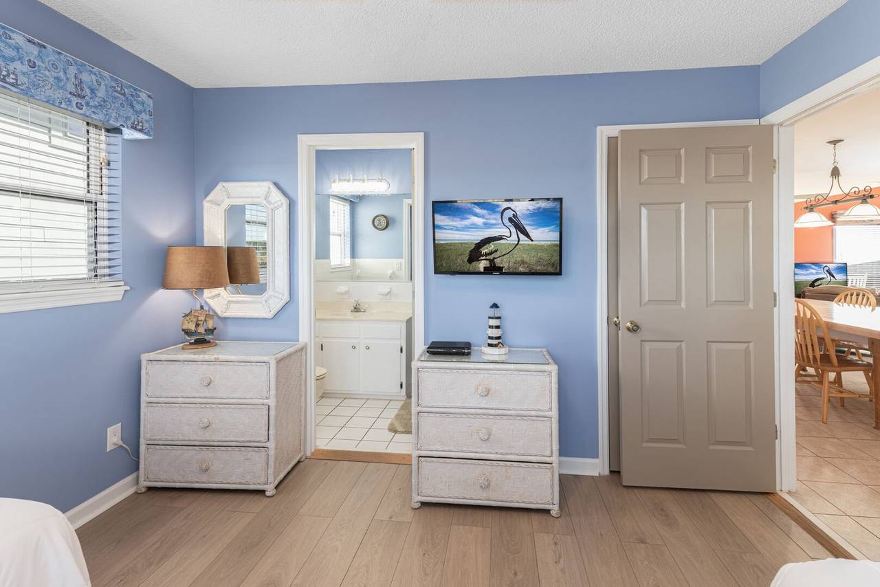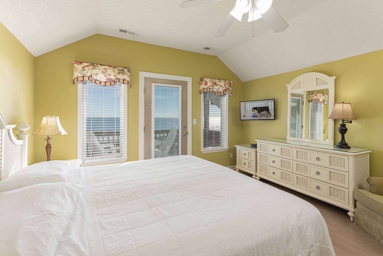 All dogs deserve their day at the beach! This owner invites you to bring your canine family member along, up to 65 pounds. Your first doggie stays for free, and your second dog requires $500 per week in Doggie Dues.