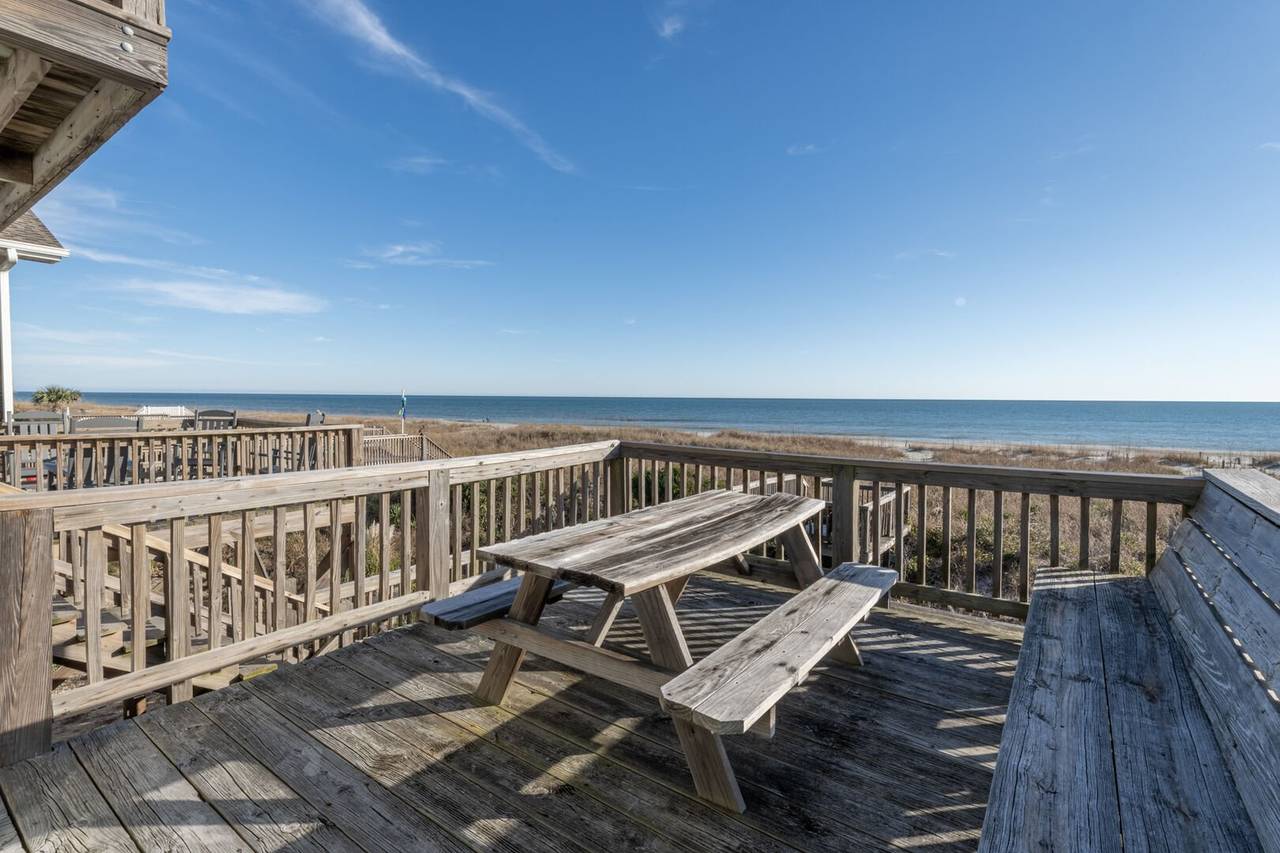 Make some wonderful memories with your family in this beautiful oceanfront home. Two covered porches and two private balconies along with five bedrooms (2K, 1Q, 2F, 2T) and five baths provide plenty of room for family and friends to spread out in comfort! Savor a morning cup of coffee on the porch while watching a Holden Beach sunrise or enjoy lunch at the picnic table. Enjoy amenities such as a Keurig, Crock-Pot, park-style charcoal grill, and LVP flooring. Smart TVs in each bedroom and living room too!