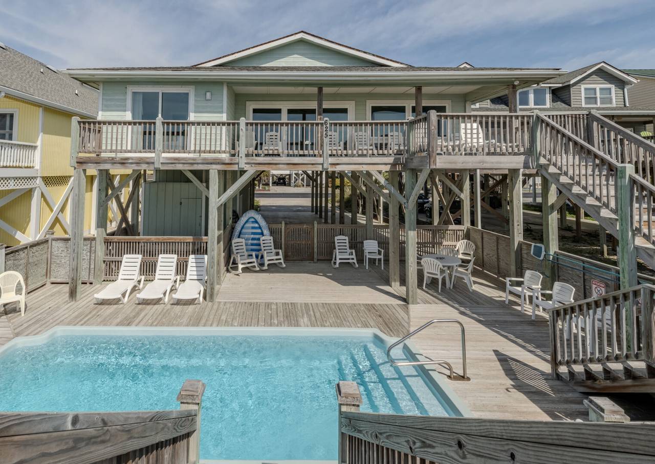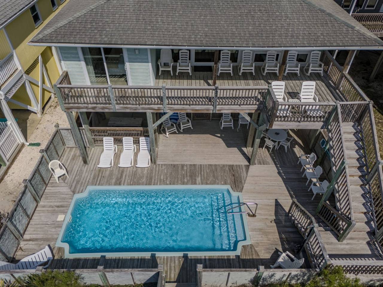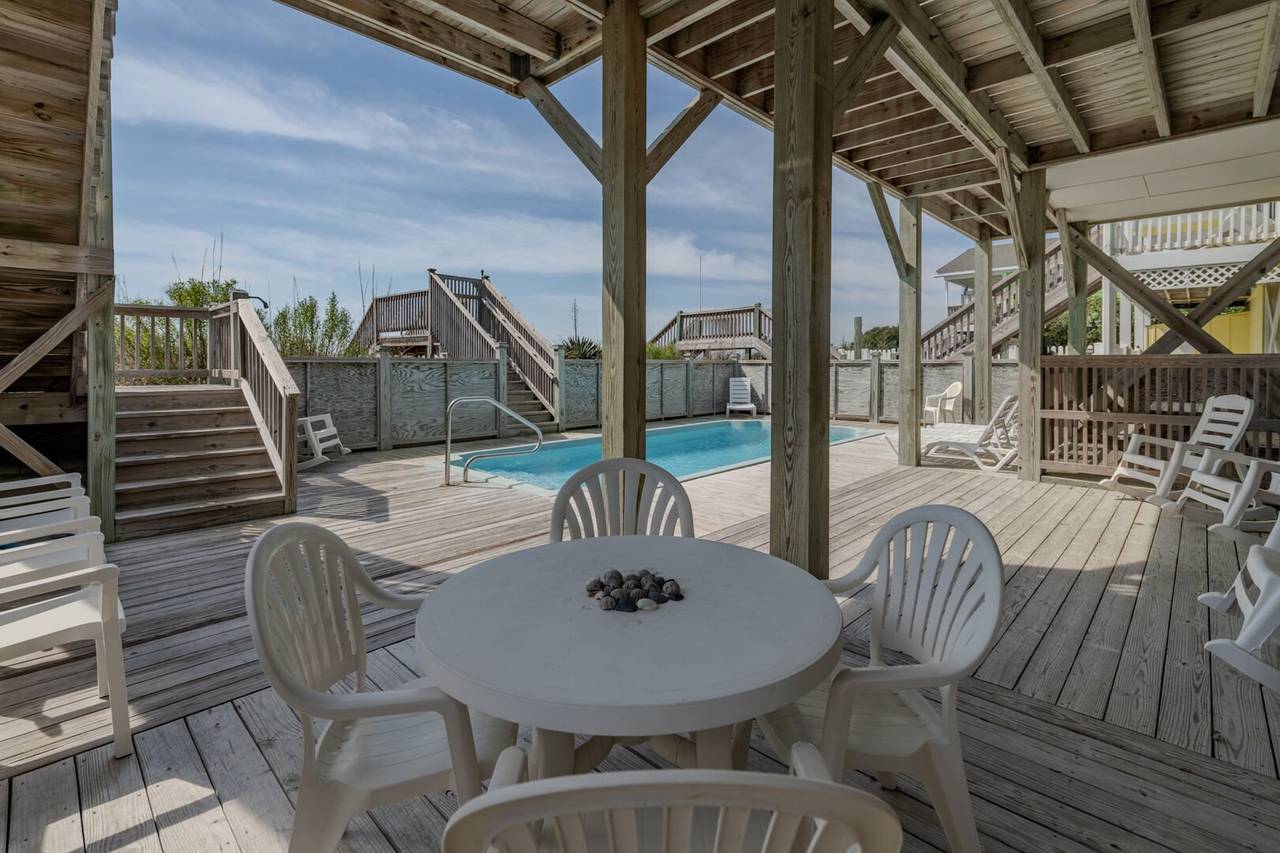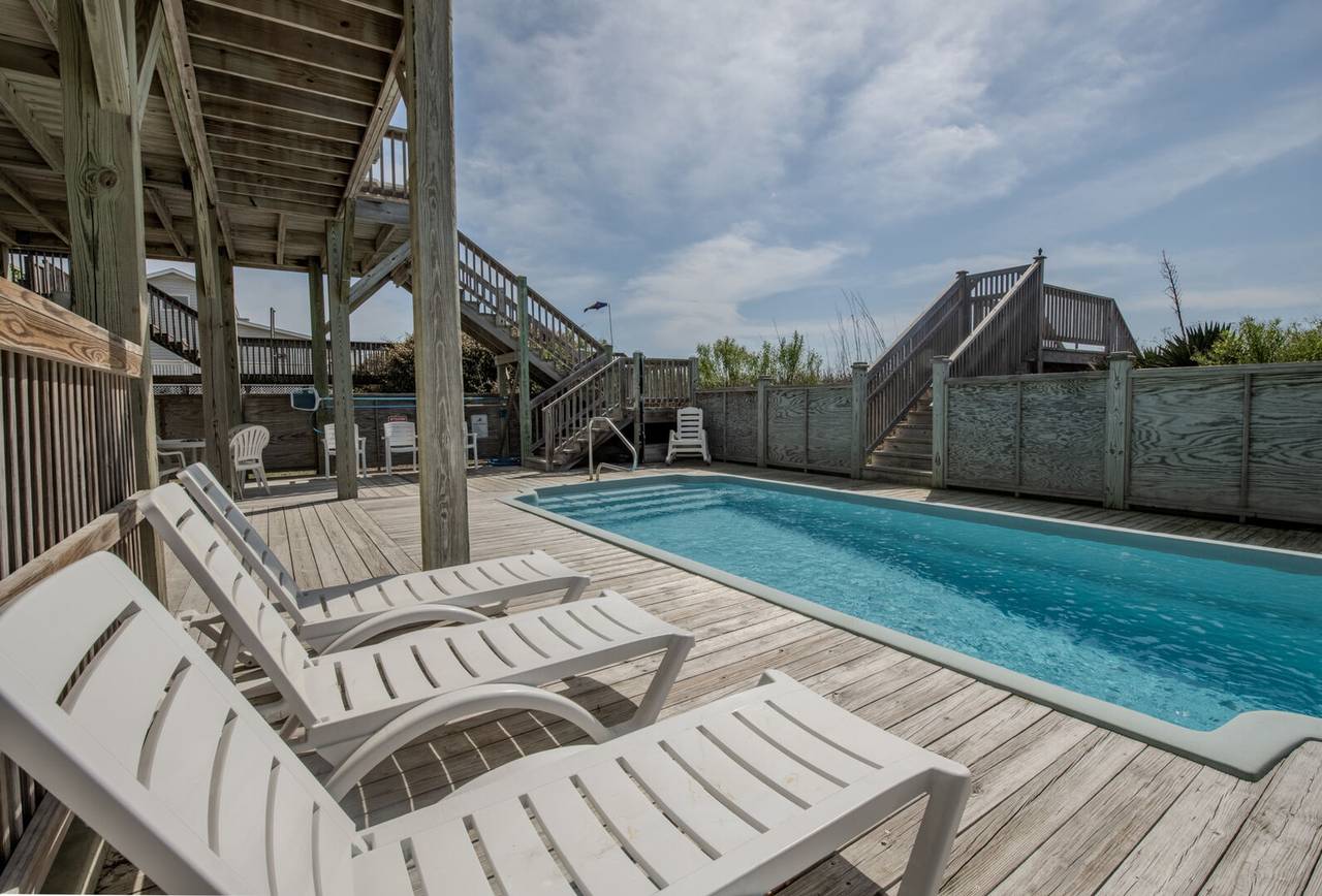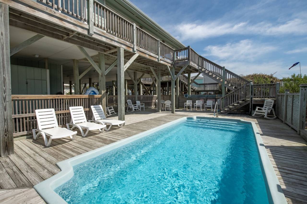 Relax by the private oceanside pool (open from Easter - October)Â in a chaise lounge or put a rocker to good use on one of the covered porches. A large open kitchen and dining area, five bedrooms (2K, 2Q, 2T), and 4 baths mean there is room for the whole family. An enclosed outside shower and a second refrigerator make beach living easy!
