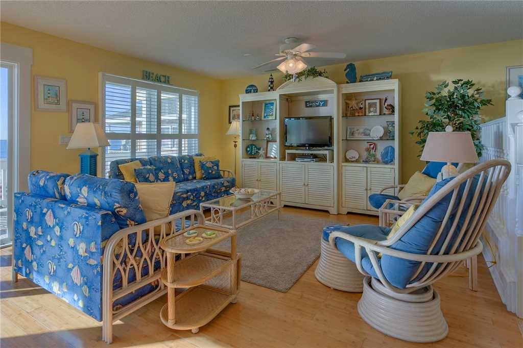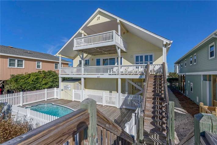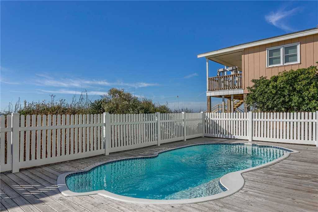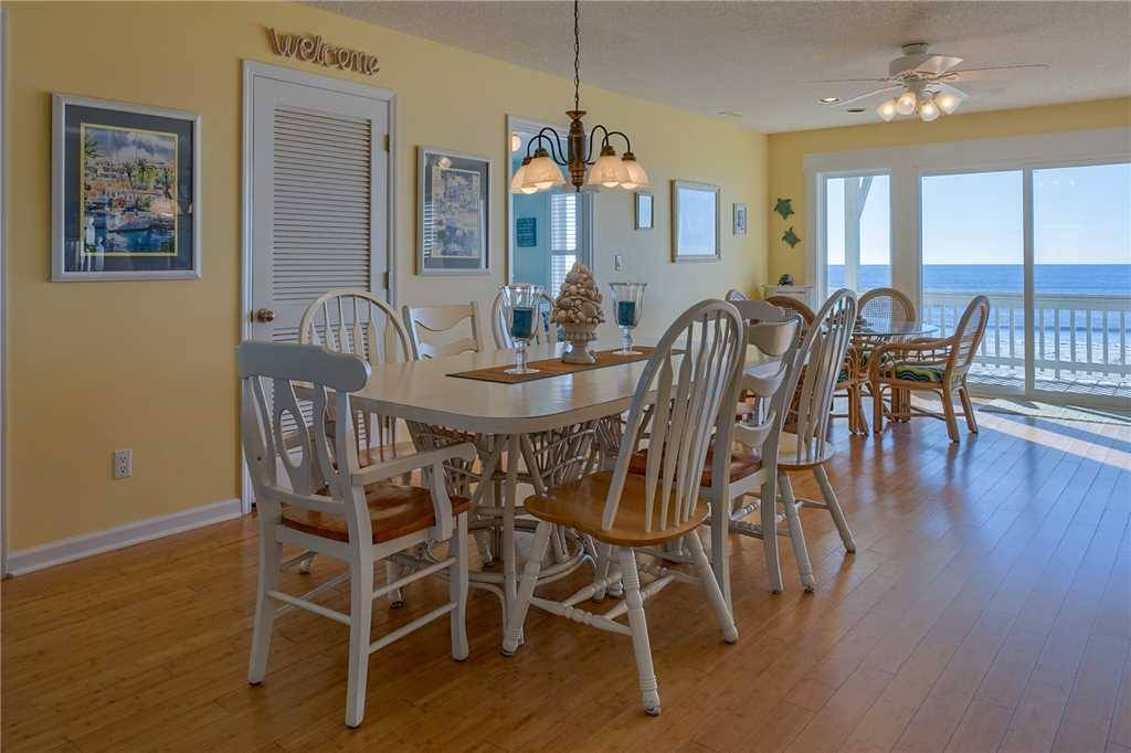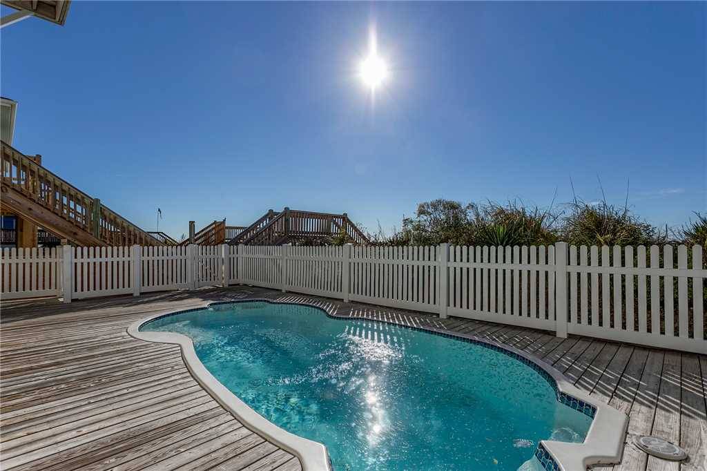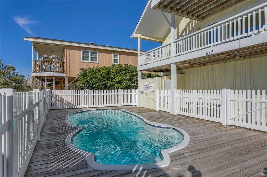 Relax by your private oceanside swimming pool (open from Easter - October) or watch the sunset from one of four covered porches. Five bedrooms, nicely furnished family room, dining area, garage, and paved parking for four cars. A guest refrigerator has been added to the lower level with easy access to the pool.Â