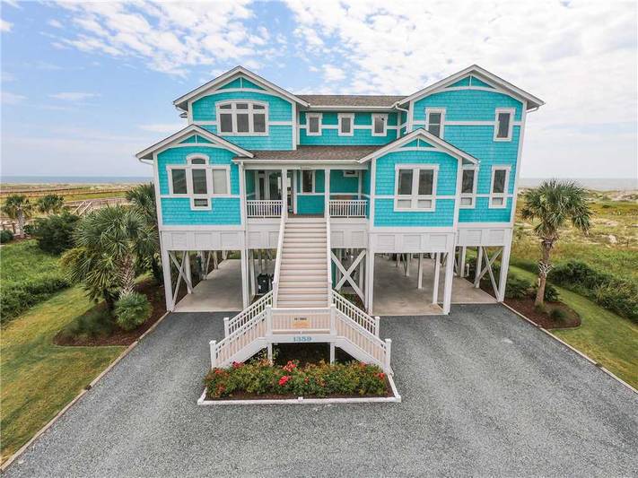 What a welcome Benvenuto extends for your Holden Beach vacation! This gorgeous oceanfront home (4K, 2Q, 4T), with two primary suites, provides all the amenities you expect from a luxury home. Located on the private West End, the inverted floor plan of this Hobbs Smart Home offers stunning seaside views from the second-floor living area, dining area, and kitchen. The first floor features a TV room, and simply step outside to enjoy the upscale, private oceanside swimming pool (open from Easter - October), covered porch, or upper deck.