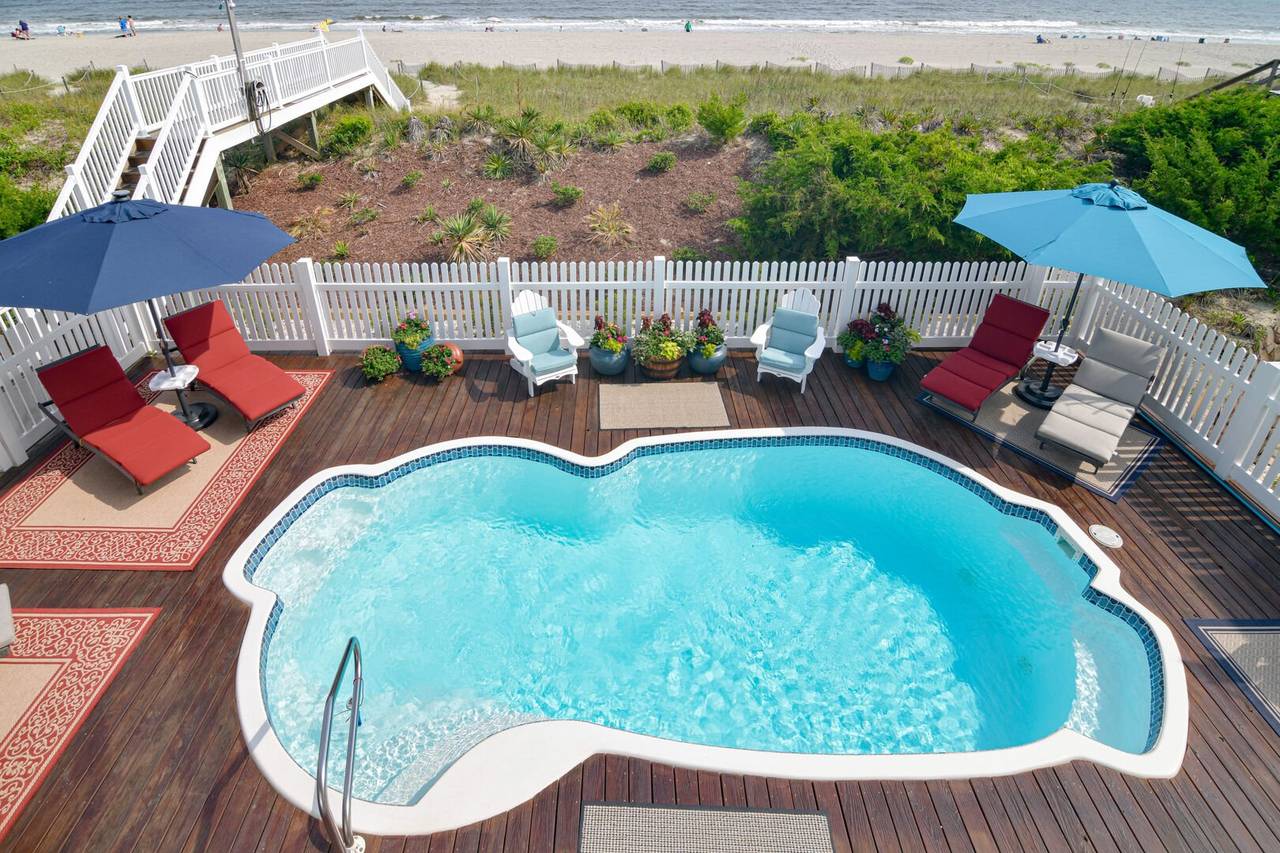 Breaker's Edge is the tranquil vacation home you need to unwind, relax, and enjoy Holden Beach. The fabulous amenities offered in this home begin with the exterior elevator with access to both living floors. Recline on a lounge chair beside the private, oceanfront heatable swimming pool with an amazing and comfortable pool area. Rejuvenate in a rocker on one of the three covered porches and rinse your cares away, along with the sand, in the outdoor shower. This Hobbs Smart Home offers spacious bedrooms. The main level has an open floor plan with a roomy living and dining area with coastal cottage-style furniture and stunning views from the expansive oceanfront windows.