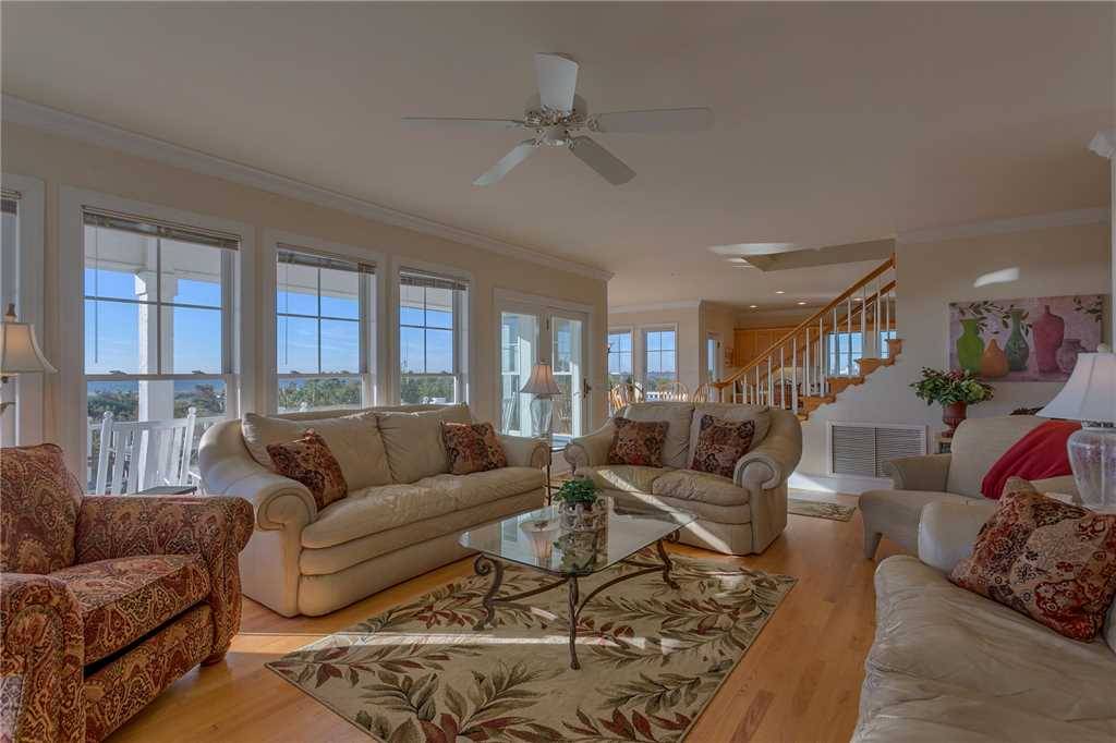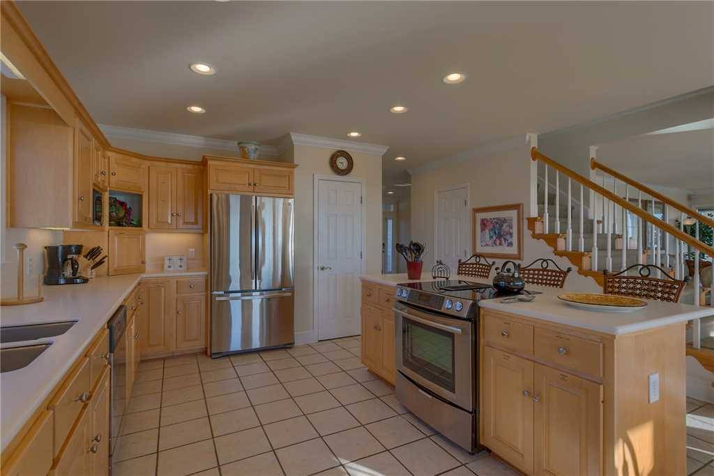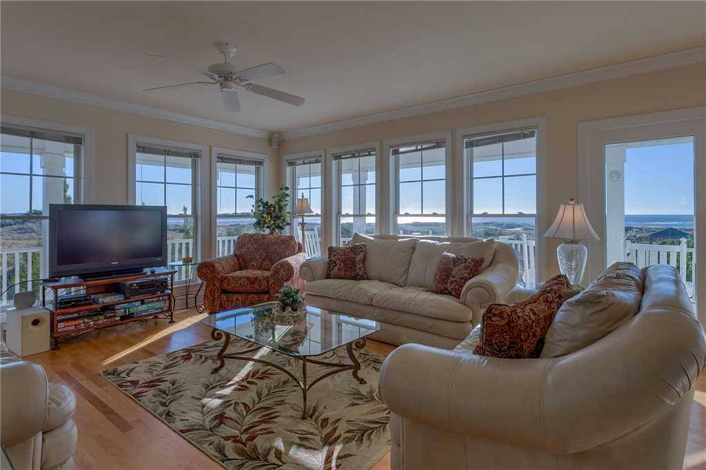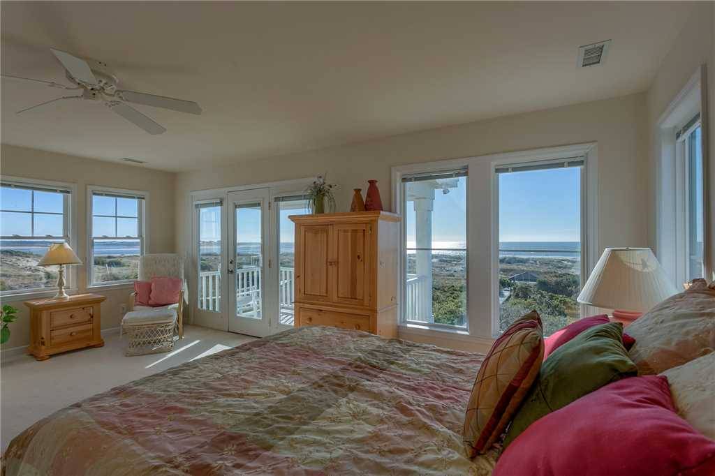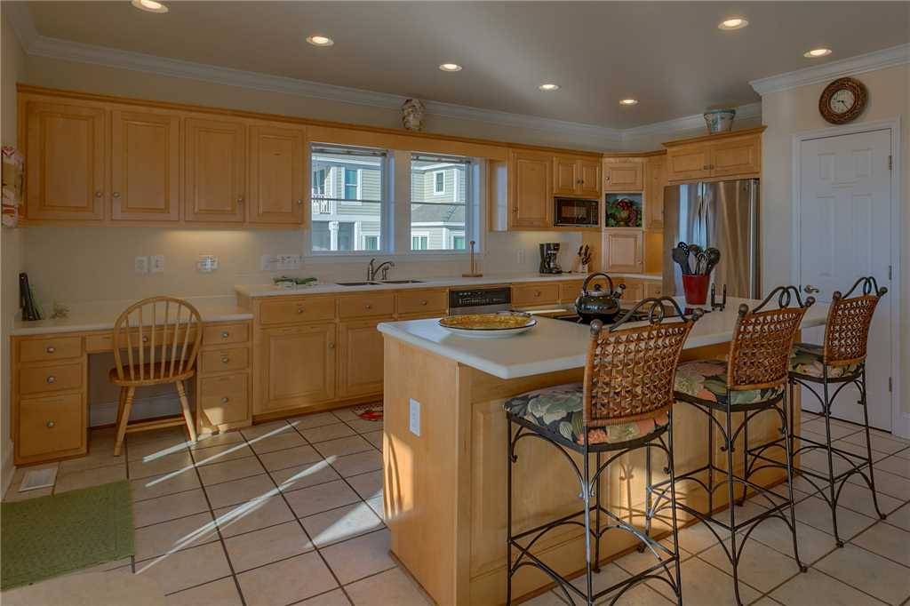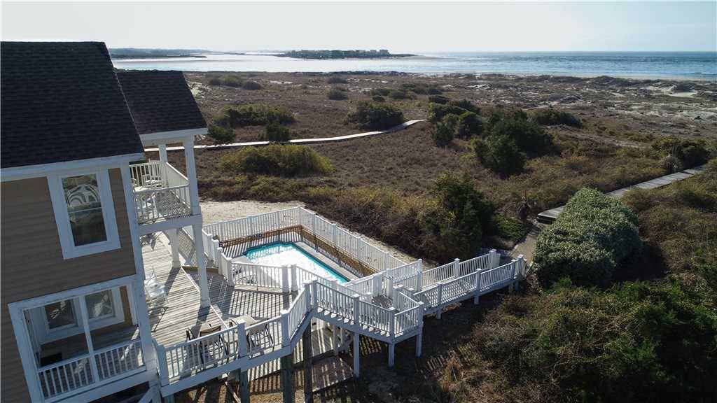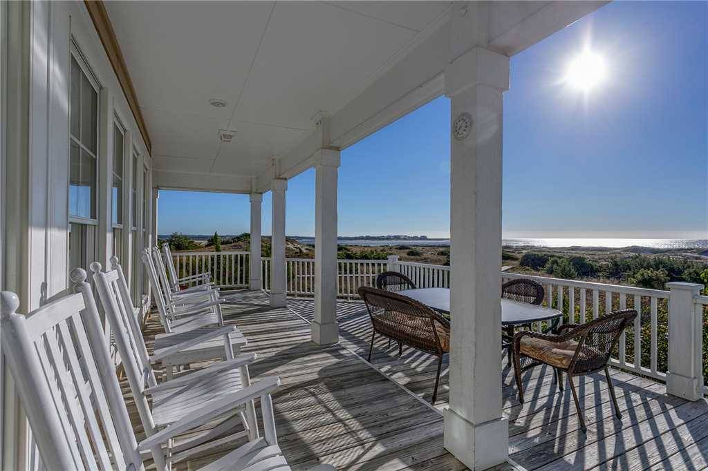 A private ground-level primary suite (no interior stairs), upstairs and downstairs living rooms, large well-equipped kitchen including a Keurig, large slow cooker, and two refrigerators, spacious decks, and a boardwalk to the beach with gazebo on the dunes are only a few of the points that this home has in its favor! There are two large covered oceanside porches, with two smaller covered porches off bedrooms #3 and #4. Indoors or out, this Hobbs Smart Home offers spectacular views of the ocean and the inlet. Gas grill included.Â