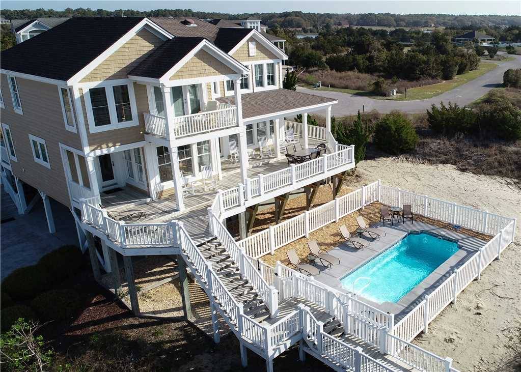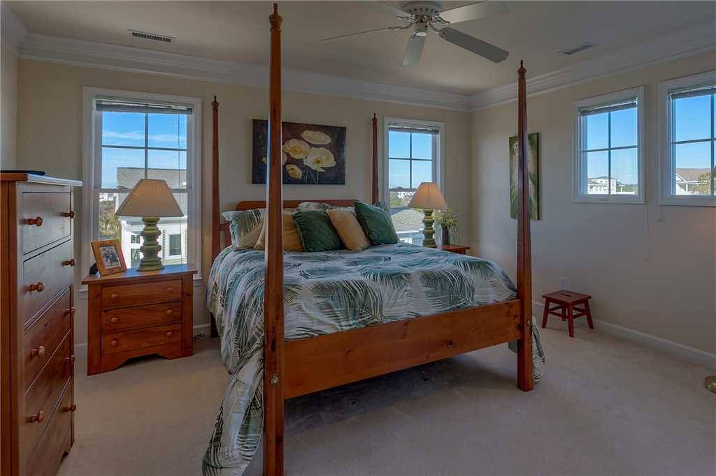 Once you've lived it, you'll know how Breezy Point got its name! Your vacation will be a breeze in this beautiful five-bedroom home (1K, 4Q) located in a private gated community. The tennis and basketball courts and the community swimming pool (non-heated) are open year-round and less than a 3-minute walk! Soak up the salty air and sunshine by your own private pool (open Easter - October).