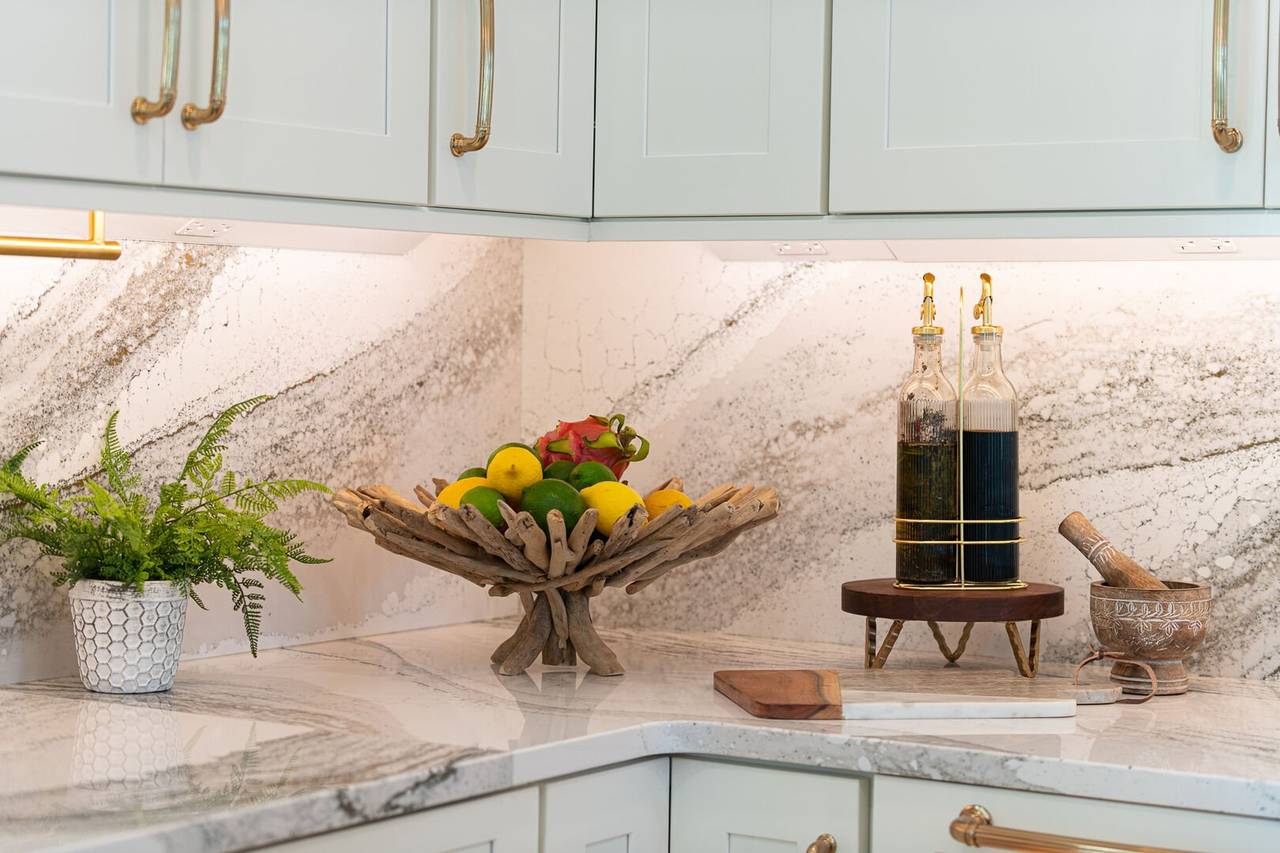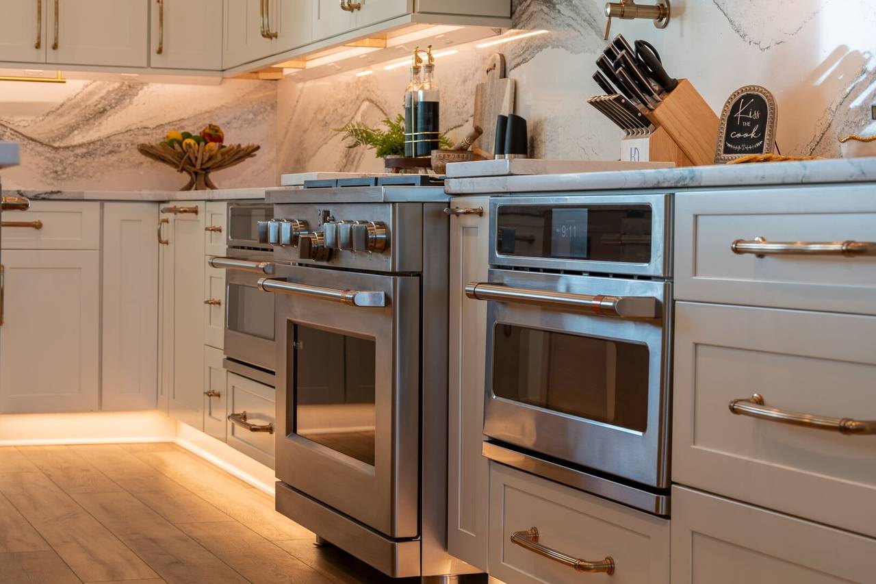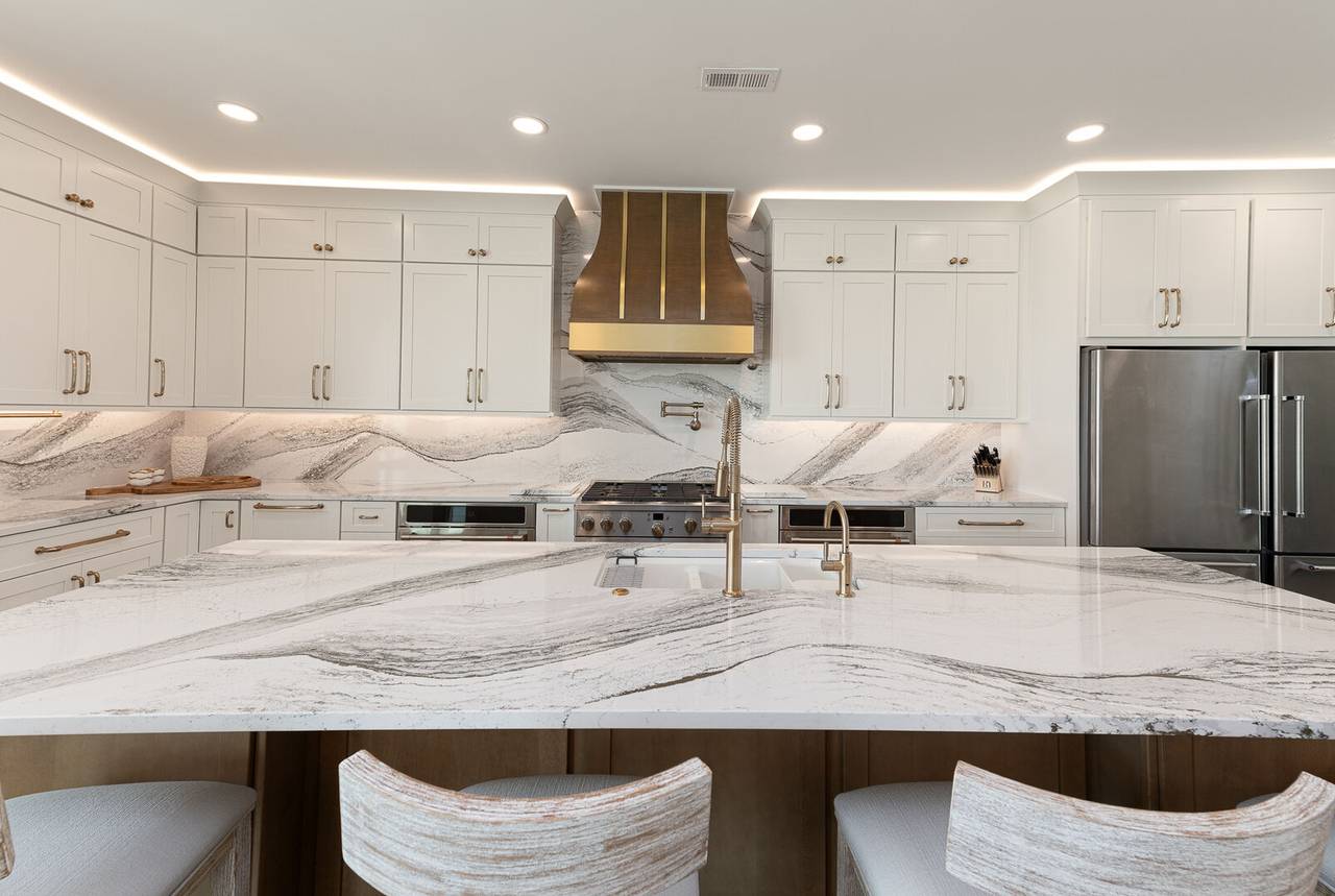 On the main floor, foodies will delight in a chef’s kitchen hosting a 6-burner gas range, oven, and 2 convection microwave ovens.  The oversized kitchen also boasts double refrigerators and freezers, a dual temperature wine and beverage cooler, and a dedicated 35lb, high-capacity ice maker.  Above the wine cooler, you will find a 2nd prep sink and another beverage station for your favorite drinks, along with yet another Cuisinart Coffee maker for drip coffee, espressos, and cappuccinos.