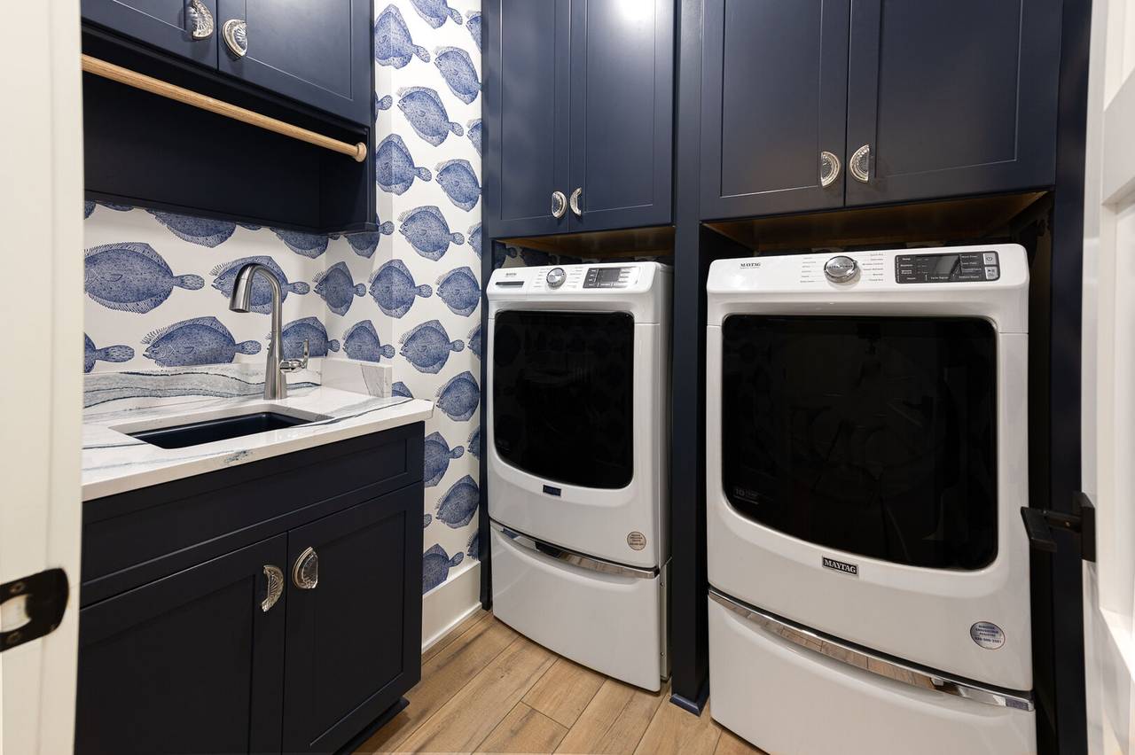 Also on the bedroom floor and conveniently located between the bedrooms is a thoughtfully designed laundry room with an oversized washer and dryer, so you can wash regularly and return home with all fresh clothes.   The laundry room also contains a soaking sink and abundant storage for your linens.