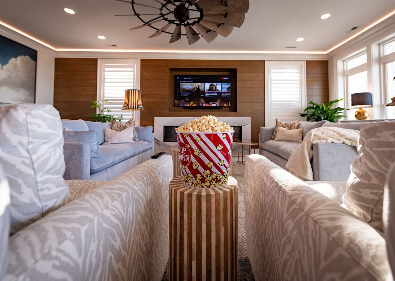 You and your family will gather at each meal period around a reclaimed wood table seating 12 and the kitchen island seating 4.  Under the kitchen island, charging stations have been thoughtfully included for your electrical devices.   Then, retire to the family room for family movie night or your favorite shows on a 75” Smart TV with surround sound prewired for the family’s preferred game consoles.  For a quiet change, a finish of the day reminiscing in the quiet and romance of an 8-foot fireplace.