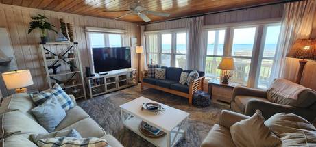 This cozy oceanfront home is full of coastal charm. With 5 bedrooms and 4 bathrooms, Driftwood is just the right size for your next island getaway.