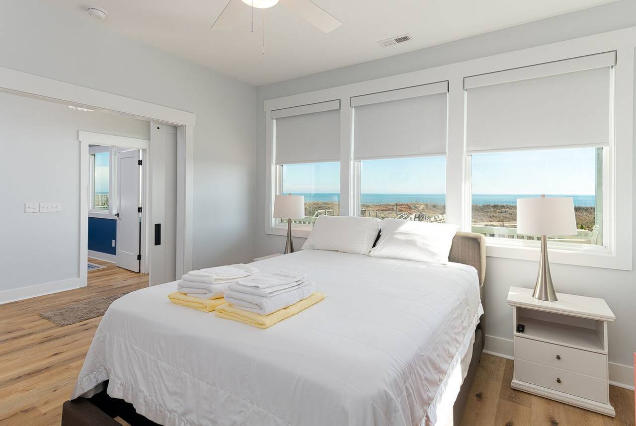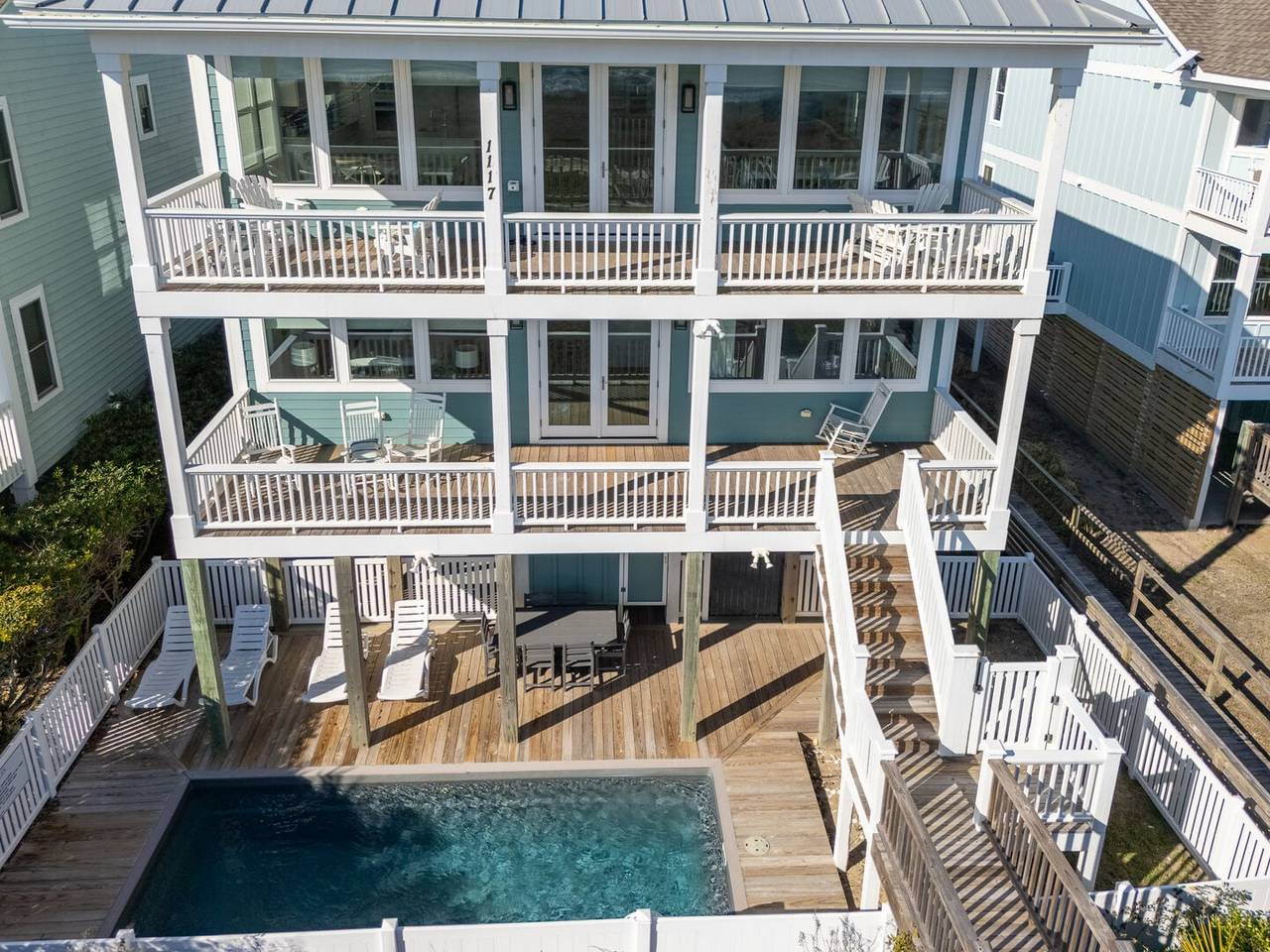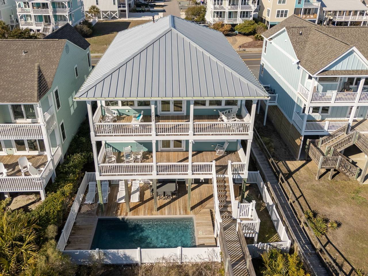 Look no further for the perfect island vacation home! This oceanfront beauty on Holden Beach has everything you need to relax and enjoy the best of the beach! Outside you will find two levels of oceanfront covered decking and a private swimming pool (open from Easter - October)! On the street side, there is also a deck with partial views of gorgeous sunsets over the Intracoastal waterway. Spend your days relaxing around the pool or the beach strand, and then relax on the deck for the perfect island sunset. You will even find an enclosed outdoor shower with hot and cold water! Inside are 6 bedrooms, 5.5 bathrooms, and space for your whole party! The inverted floor plan helps maximize the amazing ocean views. 2025- Brand new boardwalk to the beach makes your commute to the beach strand an absolute breeze!