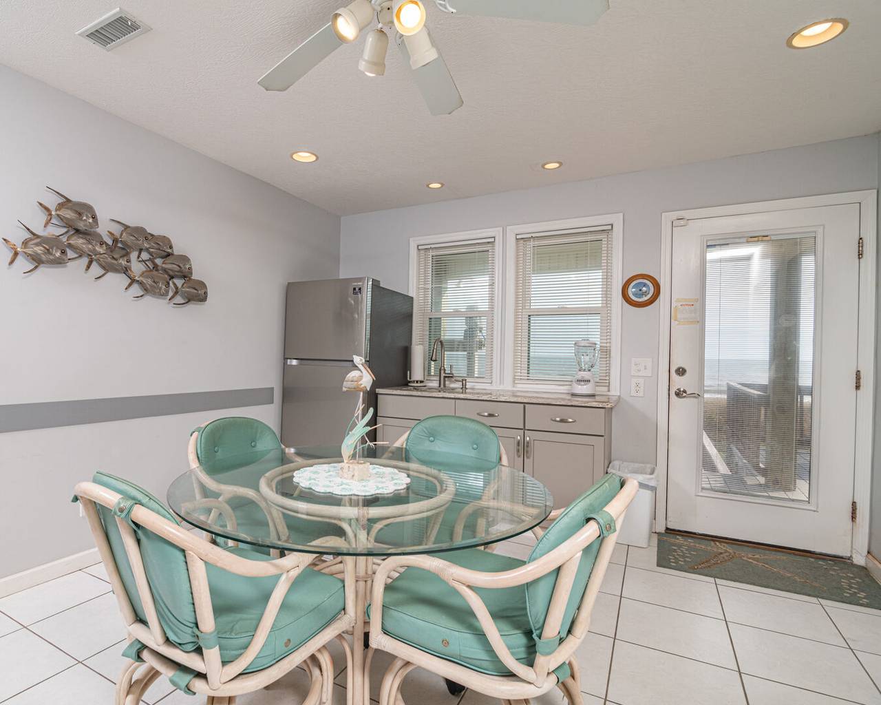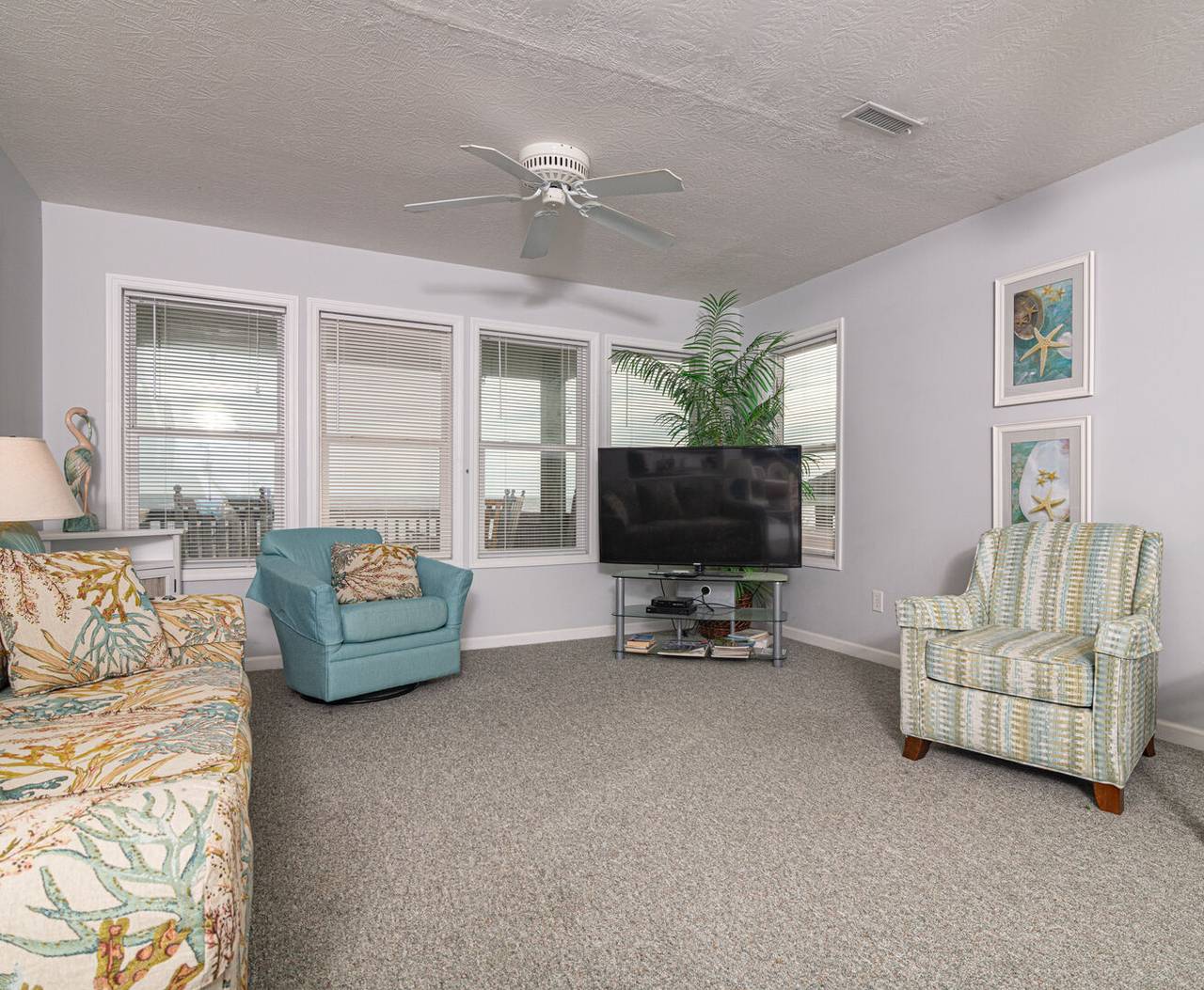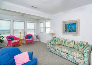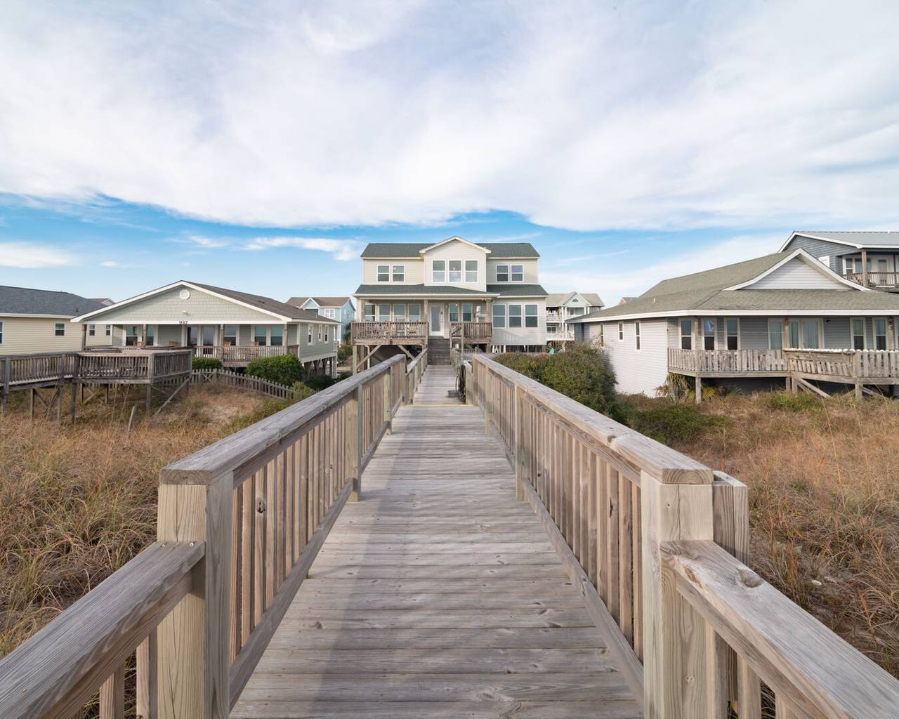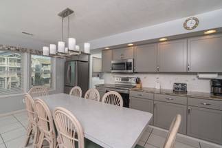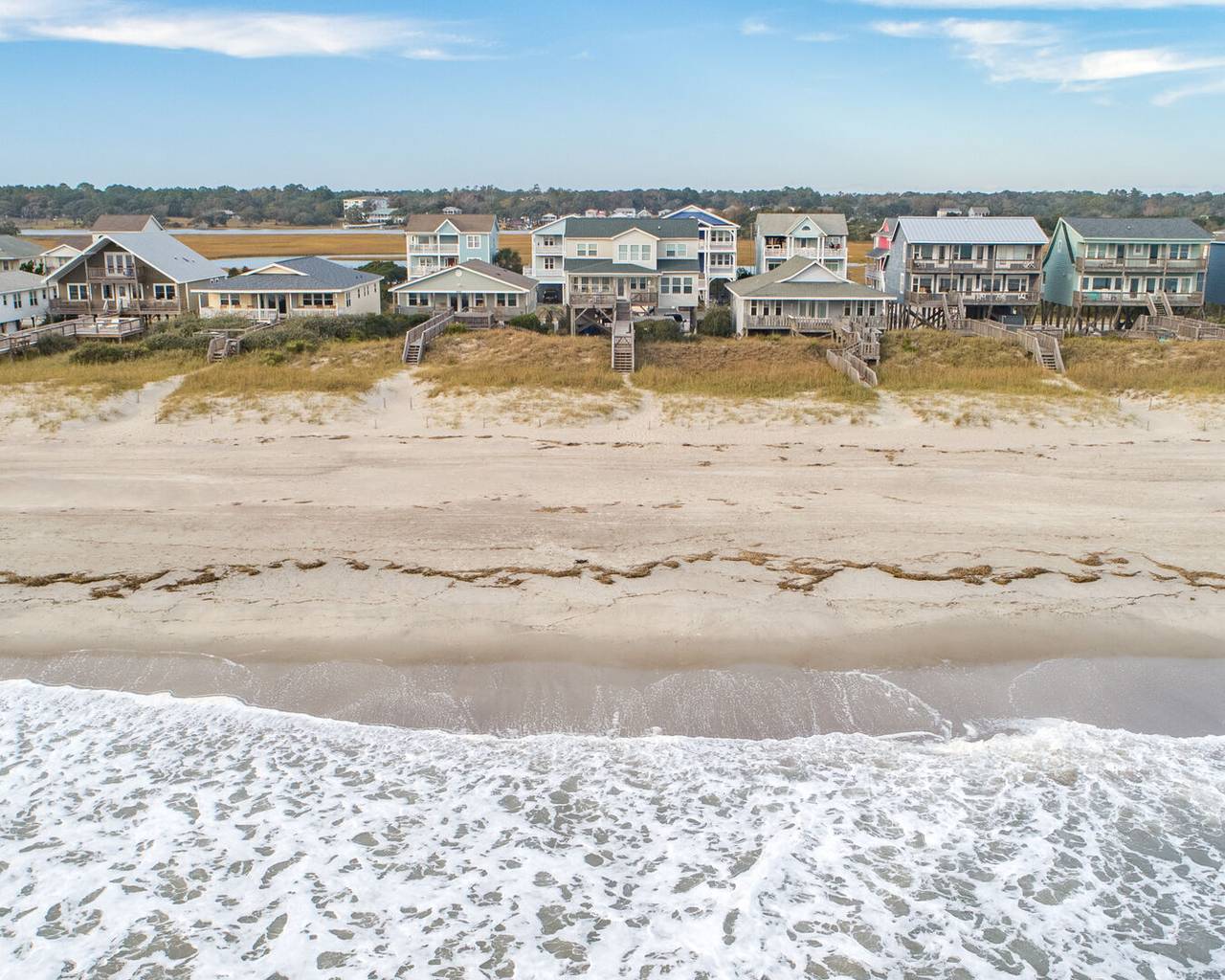 Your Holden Beach getaway begins when you land at Griffith's Quay! Relax on the covered oceanside porch or soak up some rays on the sundeck nestled in the dunes. This lovely oceanfront home (1K,4Q) has two living areas, a wet bar, an eat-in kitchen with a Keurig K-Duo, and slow cooker, a dining room, and four bedrooms. High chair and pack-n-play included with a child safety gate on the ocean side porch going to the boardwalk. Wireless high-speed internet access is provided. Outdoor amenities include a park-style charcoal grill and an enclosed outdoor shower.Â