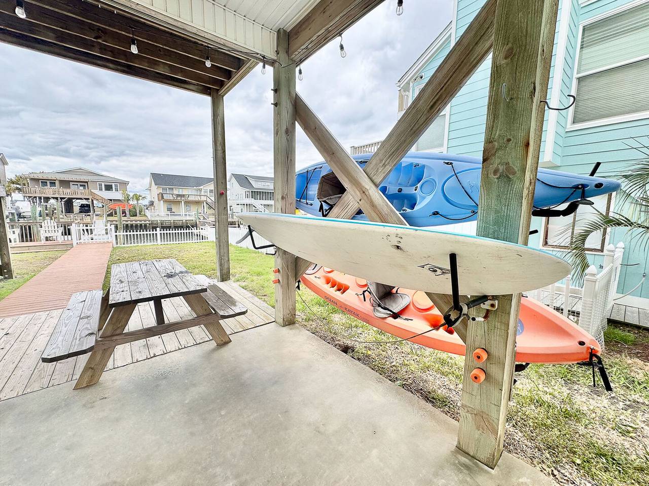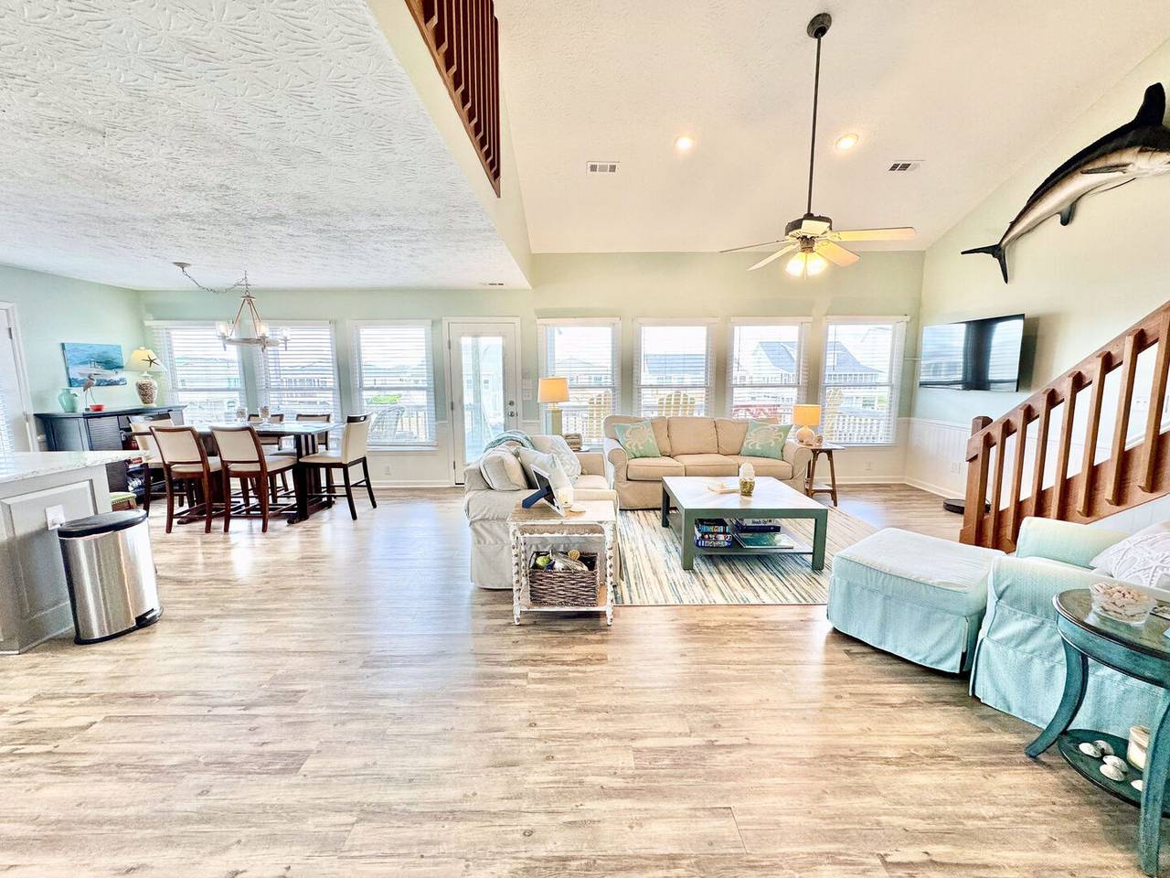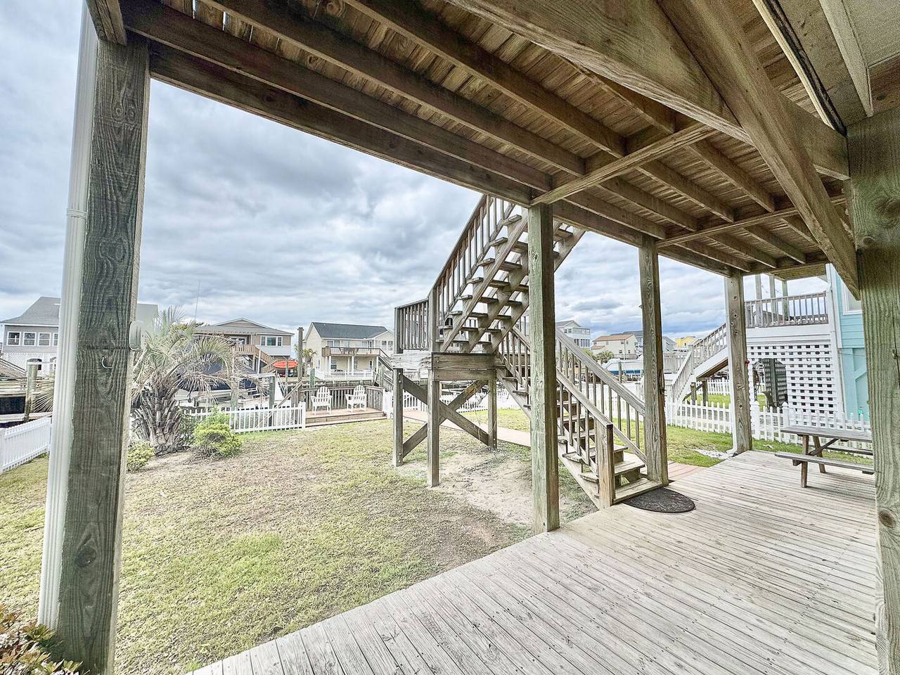 This pet-friendly home (2K, 1Q, 3T) has a great island location with a deep water canal and easy waterway access for all of your boating needs. Trex-style decking on the canal walkway and dock. You will have access to the floating dock (8.5ft by 16ft) to keep your boat for the duration of your rental. Please note that the boat and boat lift access is NOT included with the rental. The enclosed outside shower has hot and cold water. Rock your cares away on one of the covered porches or swing for hours in the hammock. The beach access is located directly across the street from the end of Charlotte Street.