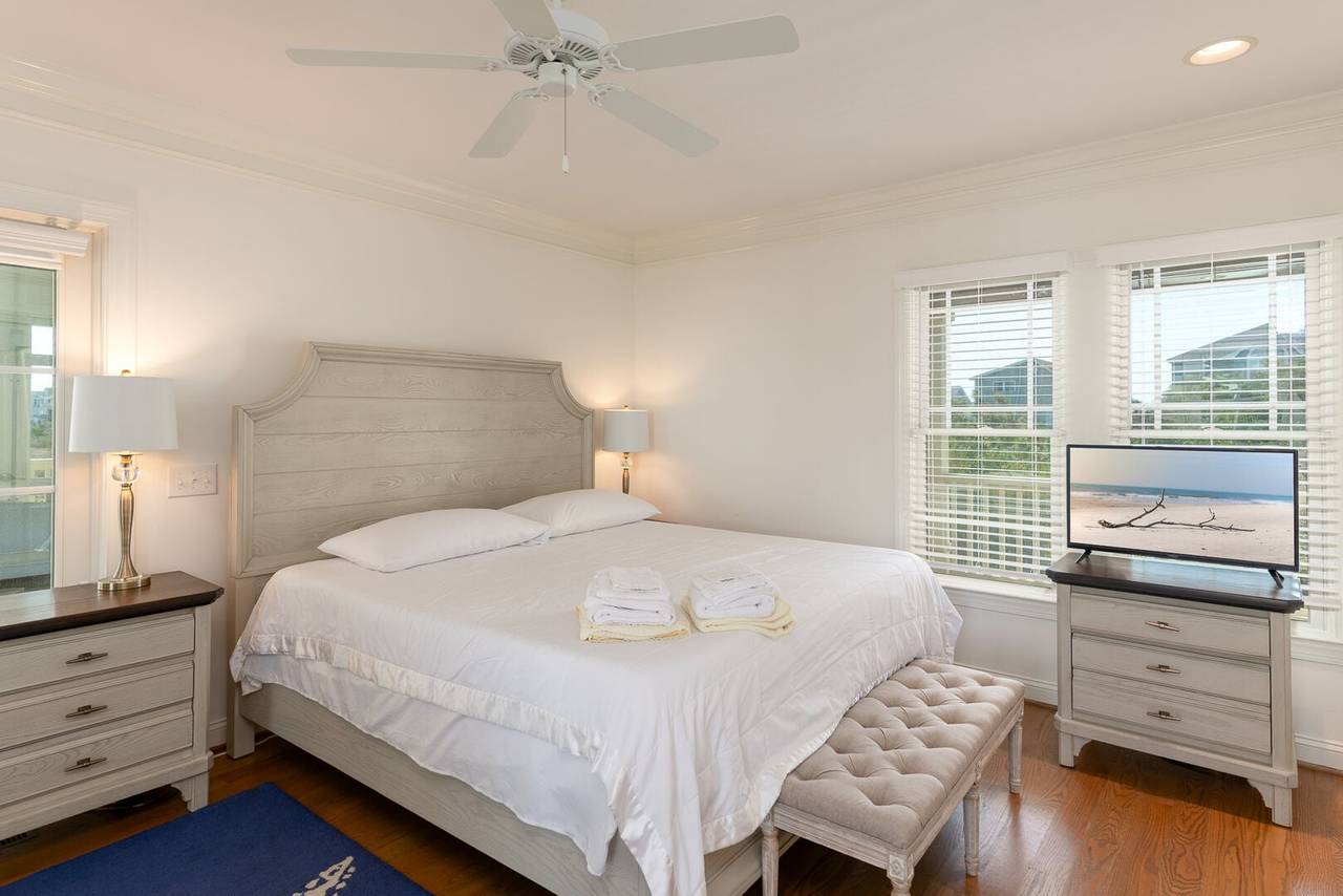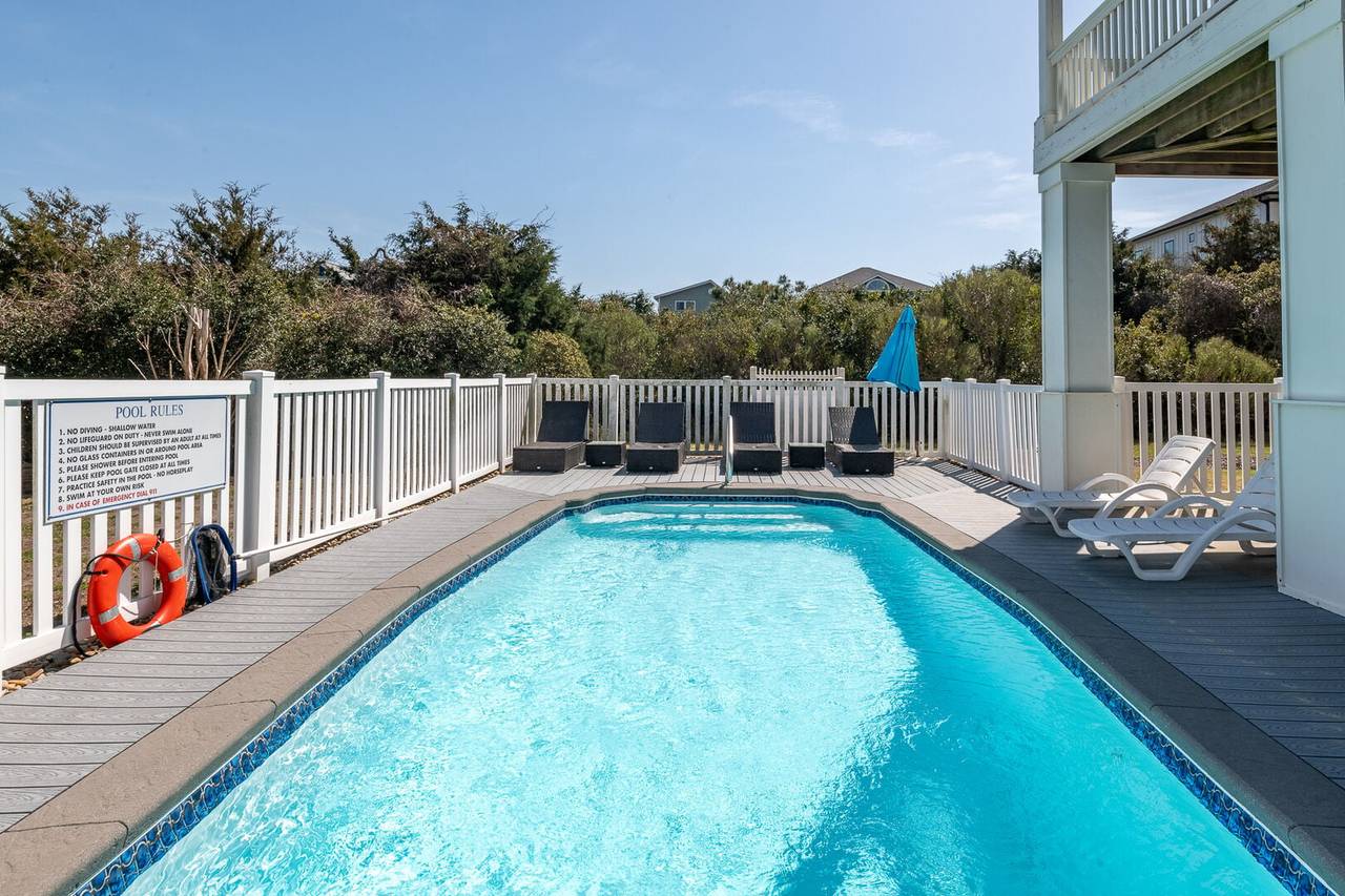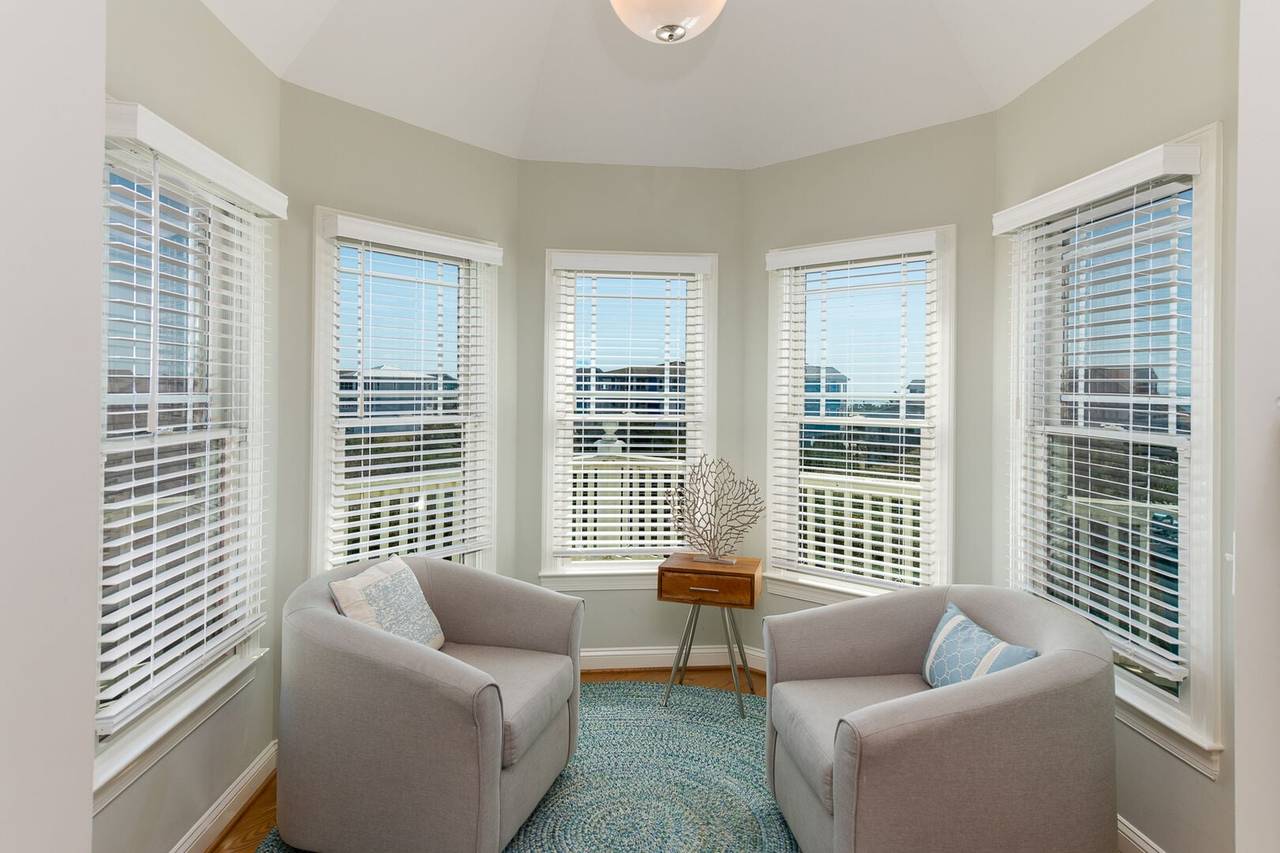 At the end of a great day at the beach or the pool, wind down in the enclosed private outdoor shower with hot and cold water or grill out on the propane grill (propane provided). Inside this beautifully appointed home, you will find 4 bedrooms, 3 full bathrooms, 2 half bathrooms, 2 living areas, and a small private sitting area/office space. The kitchen is expansive and fully stocked for all the chefs in your party. You can enjoy seating for 6 at the round breakfast nook table, seating for 5 at the kitchen bar, and a large formal dining room table that seats 10 comfortably.