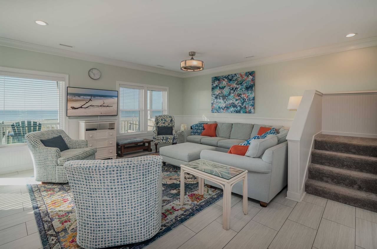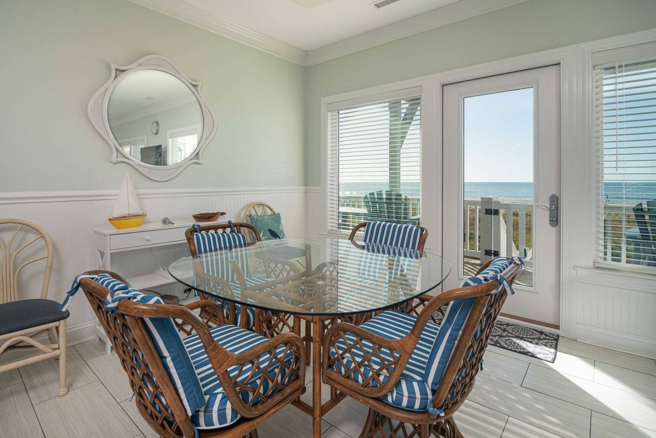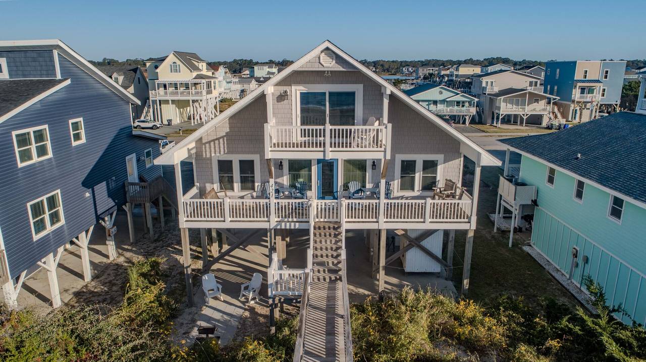 Make Holden The Tradition a tradition for your clan! This oceanfront home includes two covered porches and two private balconies that offer plenty of room to spread out. You will love the elevated porch chairs, porch swing, boardwalk to the beach, enclosed outdoor shower, and park-style charcoal grill ... and that's only the outside!
