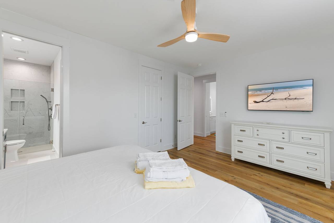 Brand New Construction on Holden Beach! Welcome to your dream beach getaway! This stunning, brand-new home on Holden Beach offers the perfect blend of luxury and comfort for your next vacation. With 5 spacious bedrooms, 6 bathrooms, a game room, a 3-floor elevator, and an inverted floor plan designed to maximize the breathtaking views, this property truly has it all. Each bedroom features a private bathroom for ultimate privacy and comes equipped with flatscreen TVs for your entertainment. The home is currently being furnished, so stay tuned for updated interior photos coming soon!