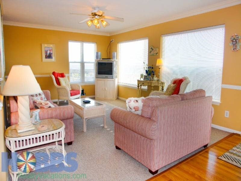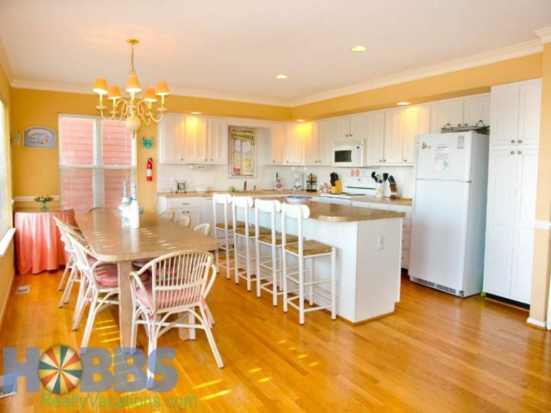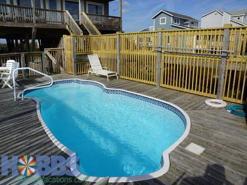 Book your dream vacation today in this inviting home with a private oceanside swimming pool (open from Easter - October), two covered ocean-facing porches with rockers, and a sundeck with benches. This Hobbs Smart Home (1K, 3Q, 1F, 1T Aerobed, 2QSS) has a comfortable living room, upstairs den, kitchen with counter seating, dining area, and five bedrooms. The kitchen includes a Crockpot, Keurig K-Duo, dishwasher, microwave, and more to make cooking your family's vacation meals a breeze.