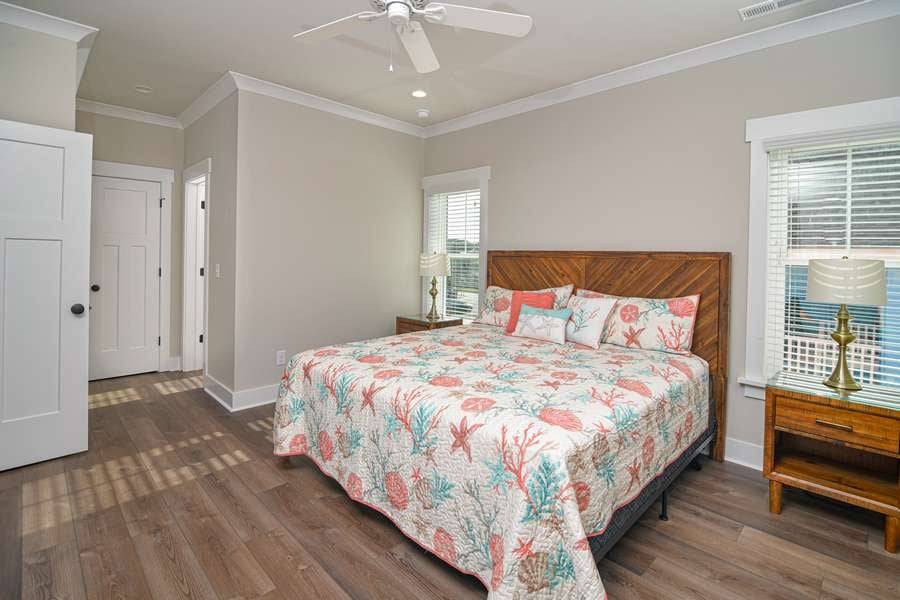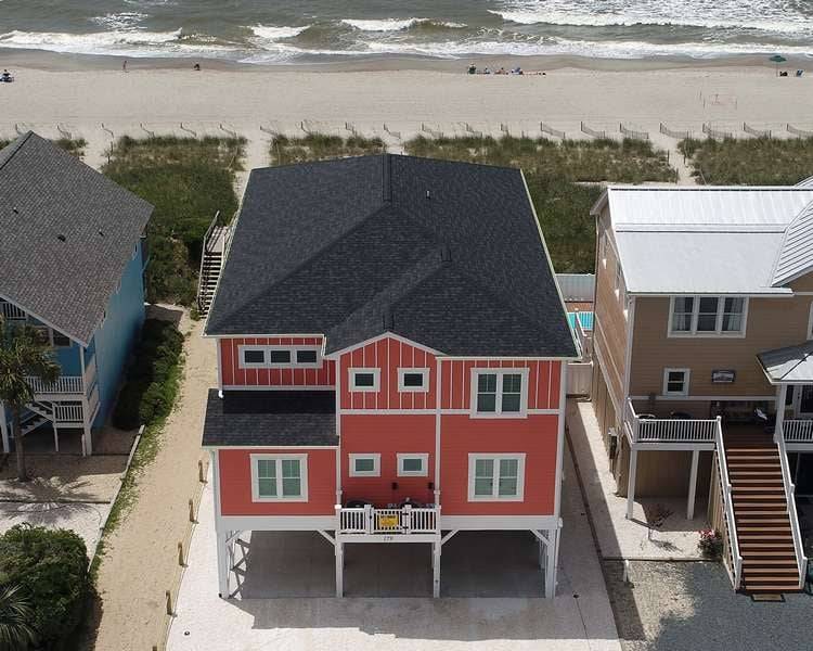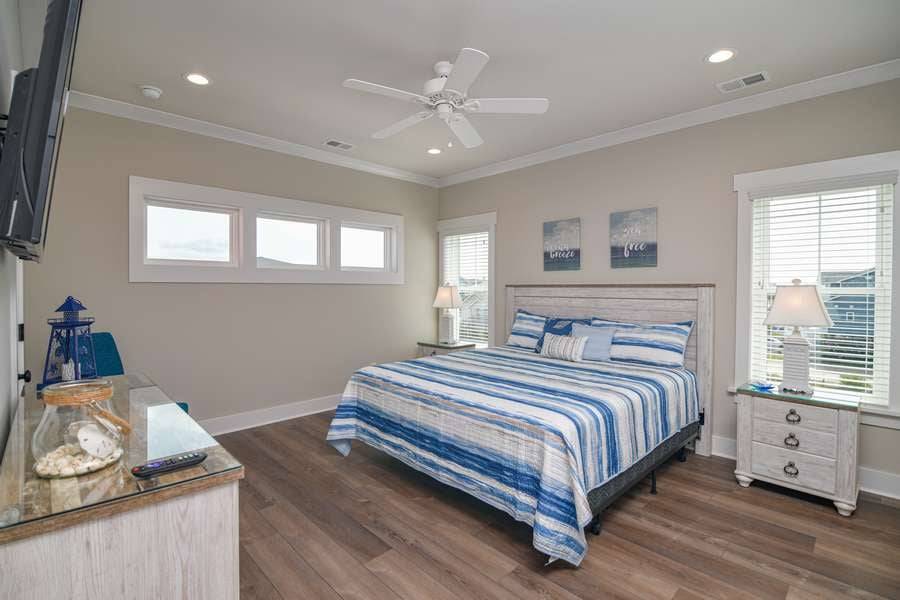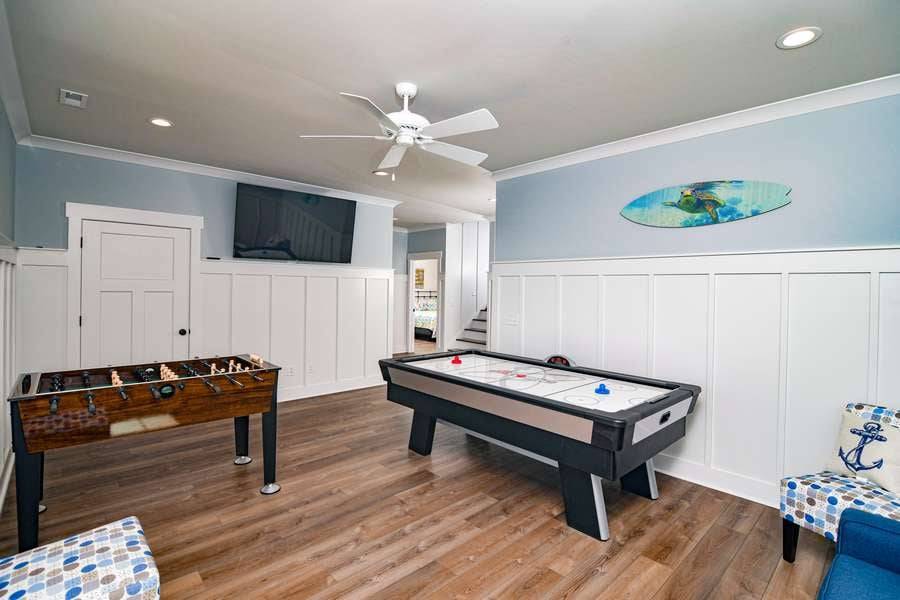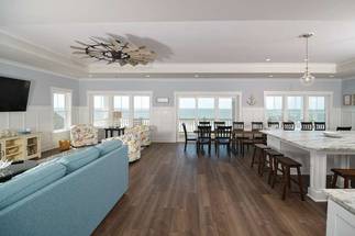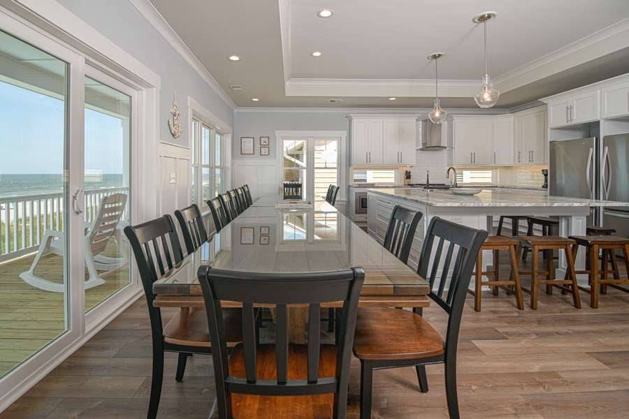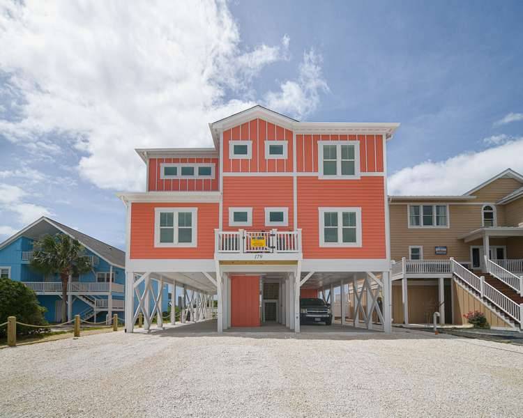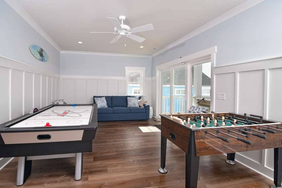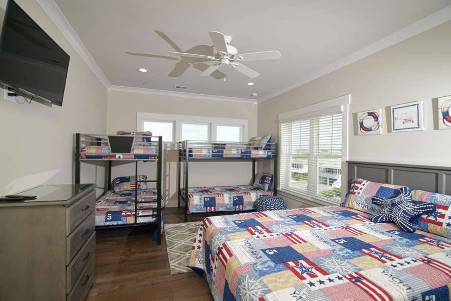 This home really does have it all: a game room complete with a Foosball table and air hockey, flat-screen TVs in every room, elevator, grill, enclosed outdoor shower, horseshoe pit, fully stocked kitchen with 2 refrigerators and chic coastal décor. Each floor has a family suite to allow parents (or grandparents) to share a room with younger children if needed. Handicap-friendly features include an elevator and wider doorways/roll-in shower in bedroom #7. There is also wireless high-speed internet and cable streaming through Focus Broadband's Merge service and Amazon Fire Sticks. Come and enjoy all that Holden Beach has to offer!