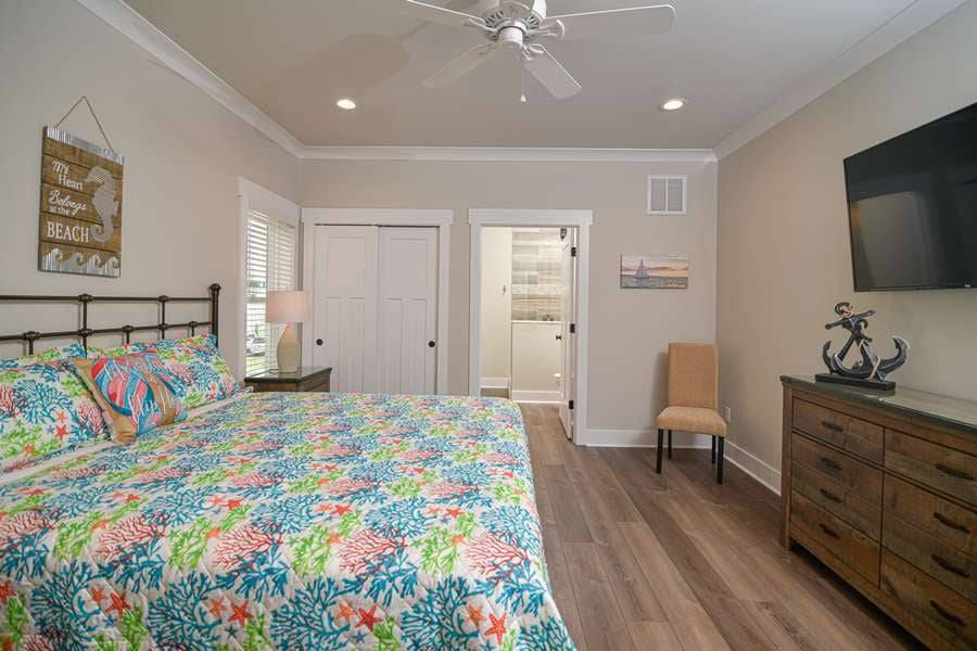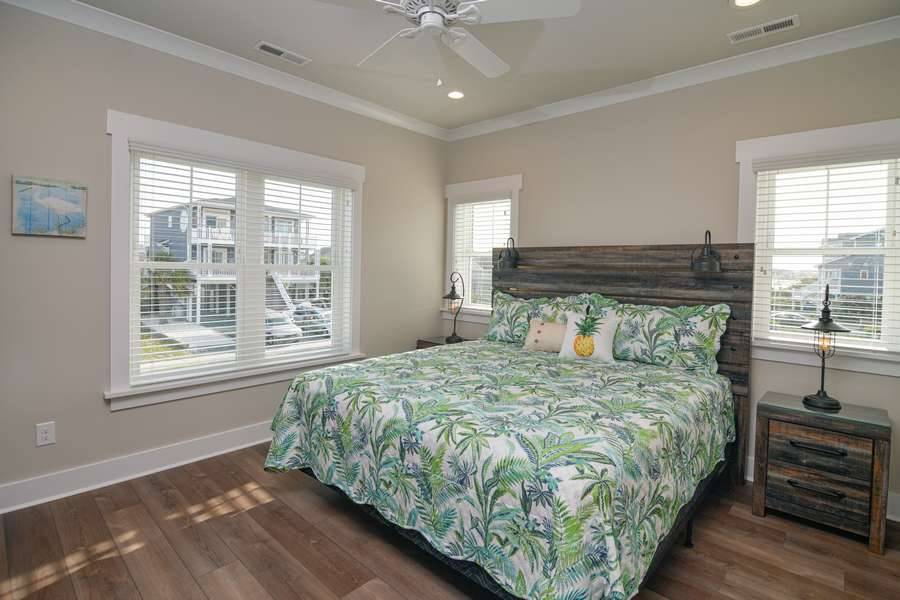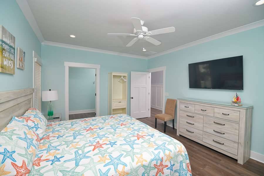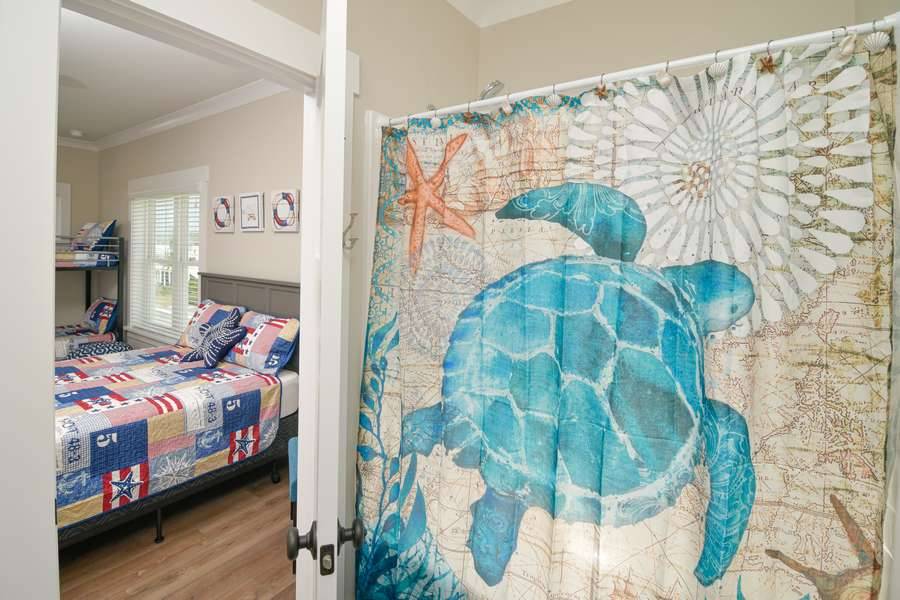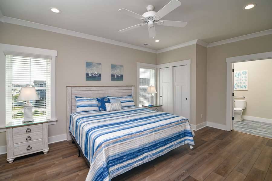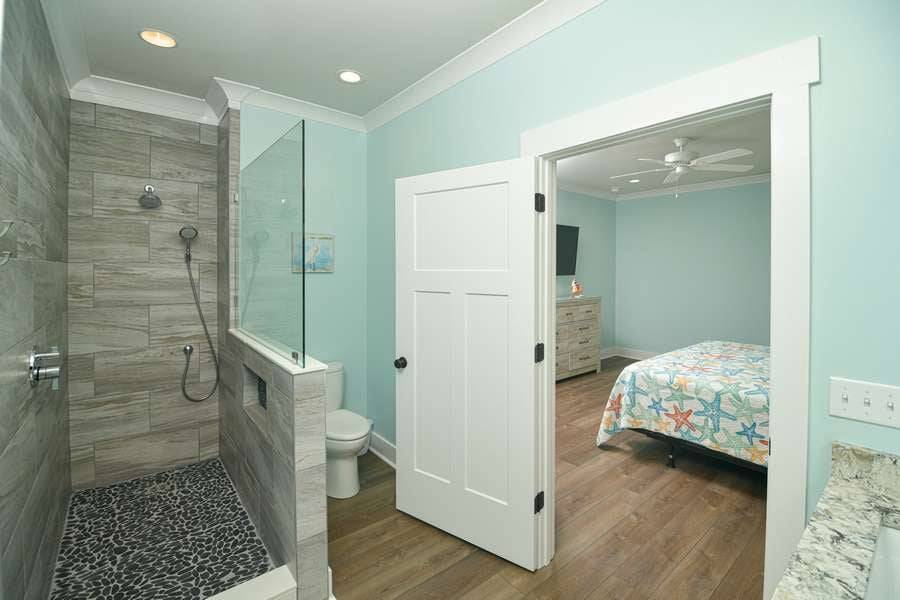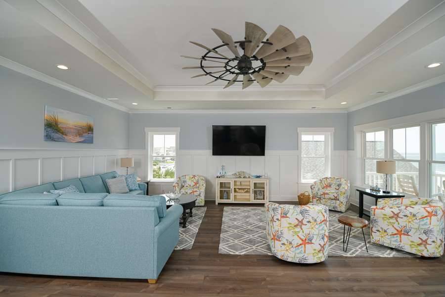 This home really does have it all: a game room complete with a Foosball table and air hockey, flat-screen TVs in every room, elevator, grill, enclosed outdoor shower, horseshoe pit, fully stocked kitchen with 2 refrigerators and chic coastal décor. Each floor has a family suite to allow parents (or grandparents) to share a room with younger children if needed. Handicap-friendly features include an elevator and wider doorways/roll-in shower in bedroom #7. There is also wireless high-speed internet and cable streaming through Focus Broadband's Merge service and Amazon Fire Sticks. Come and enjoy all that Holden Beach has to offer!