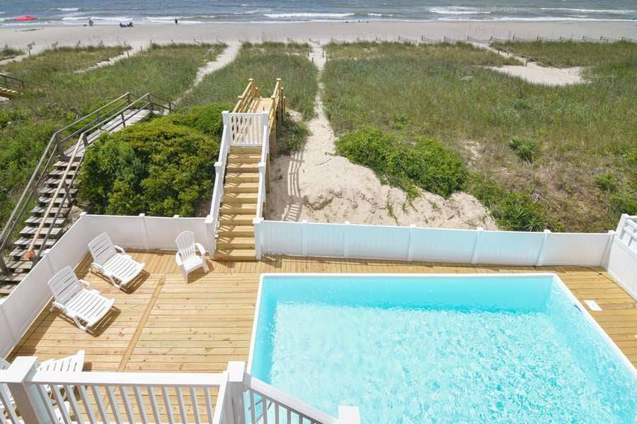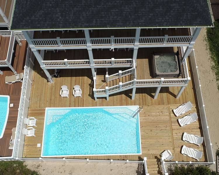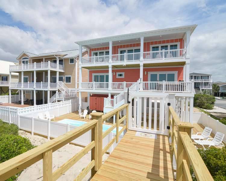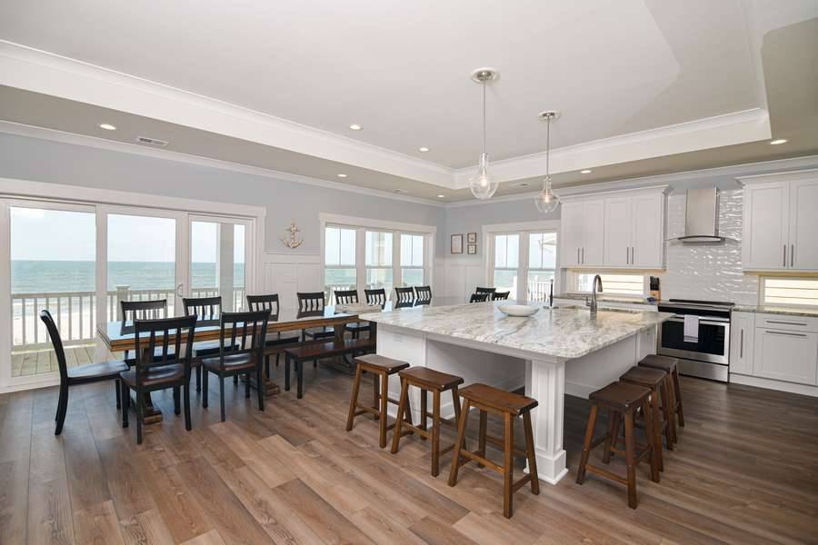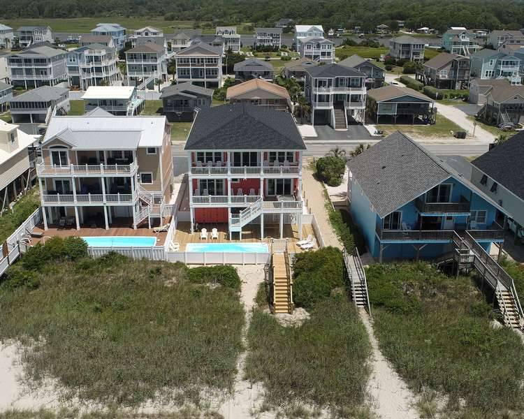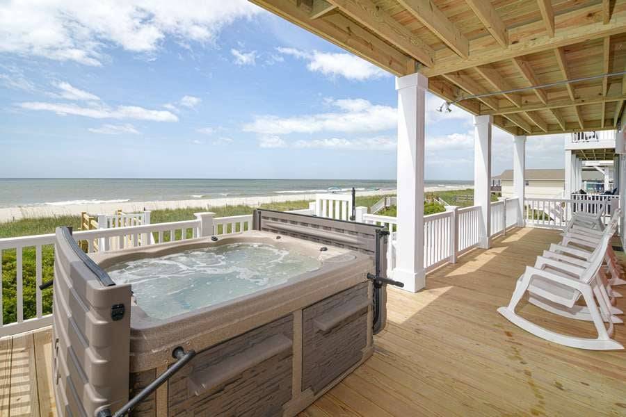 Spectacular, beautifully appointed, 8 bedrooms/8 full bathrooms - all with double vanities - oceanfront custom home (plus 2 half bathrooms) and all the amenities you could ask for! Enjoy the beautiful, uninterrupted ocean views from two levels of covered decks, relaxing in the deck-level hot tub with stunning ocean vistas and a private oceanfront pool. Only steps away from the sparkling Atlantic Ocean!
