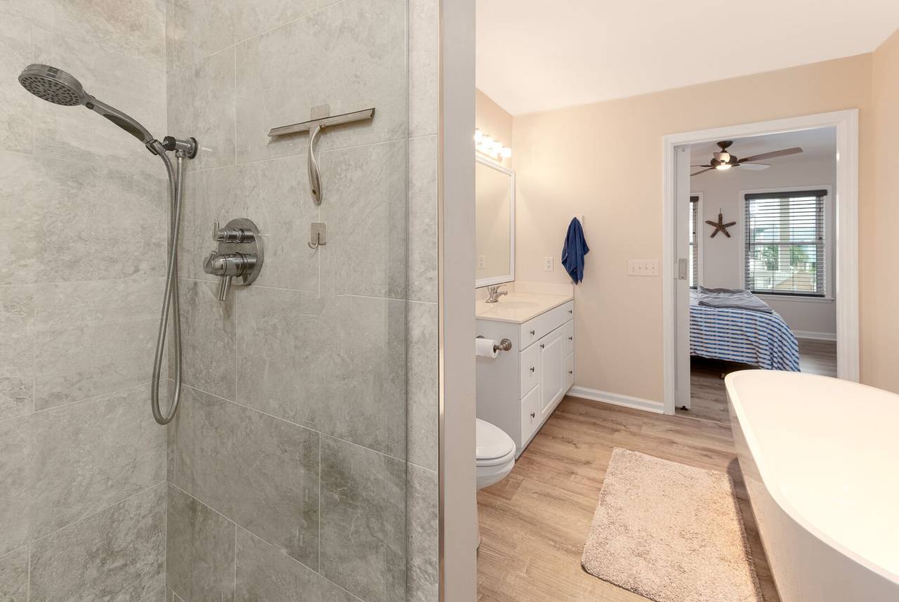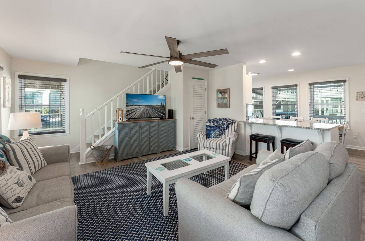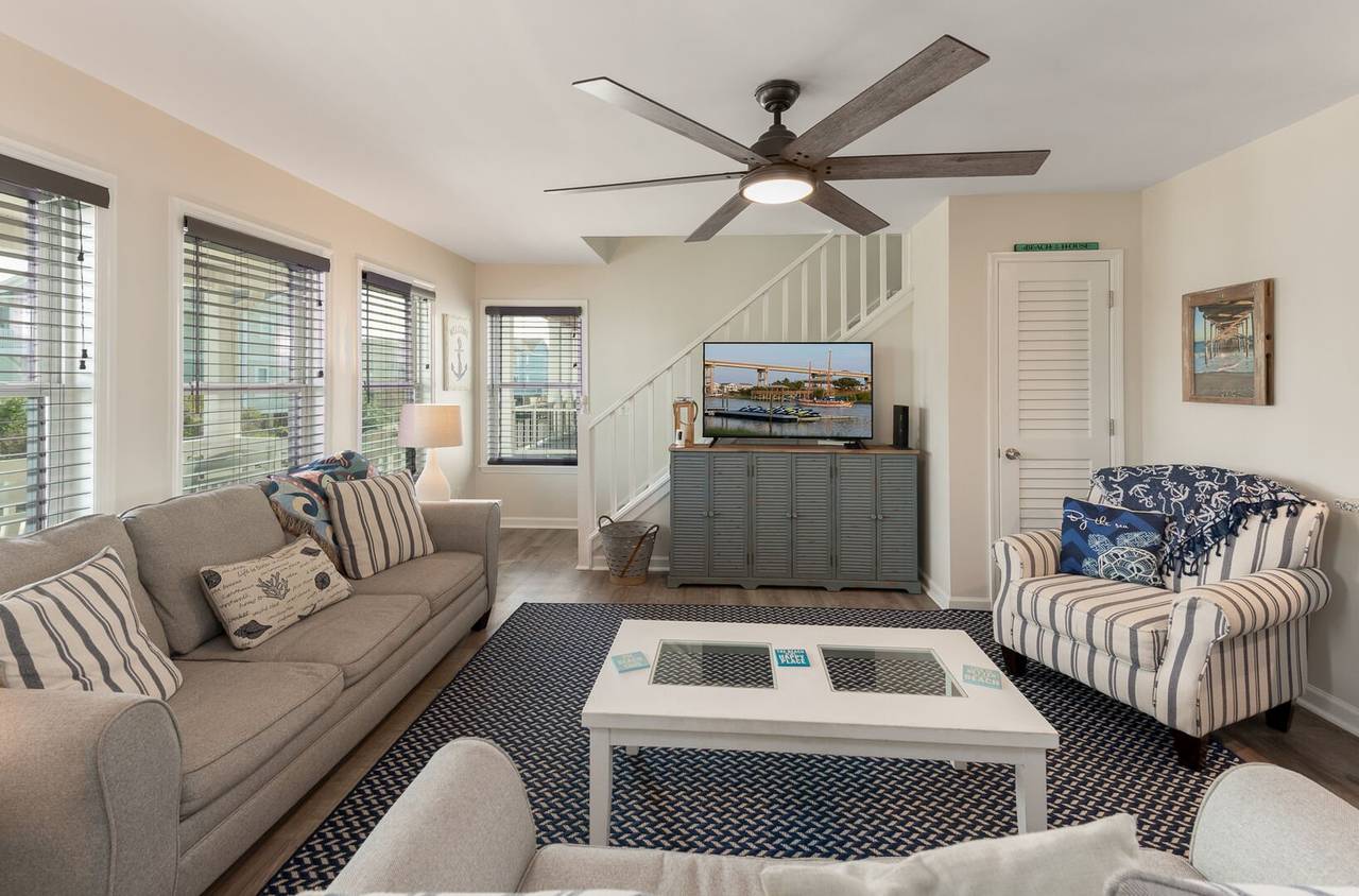 There is seating for 8 at the large dining table and 2 at the bar. This home is located in the lovely Marsh Walk Community, which means you have access to the private day dock on the Intracoastal Waterway and full use of the private beach access just at the end of the street, less than 75 yards away!
