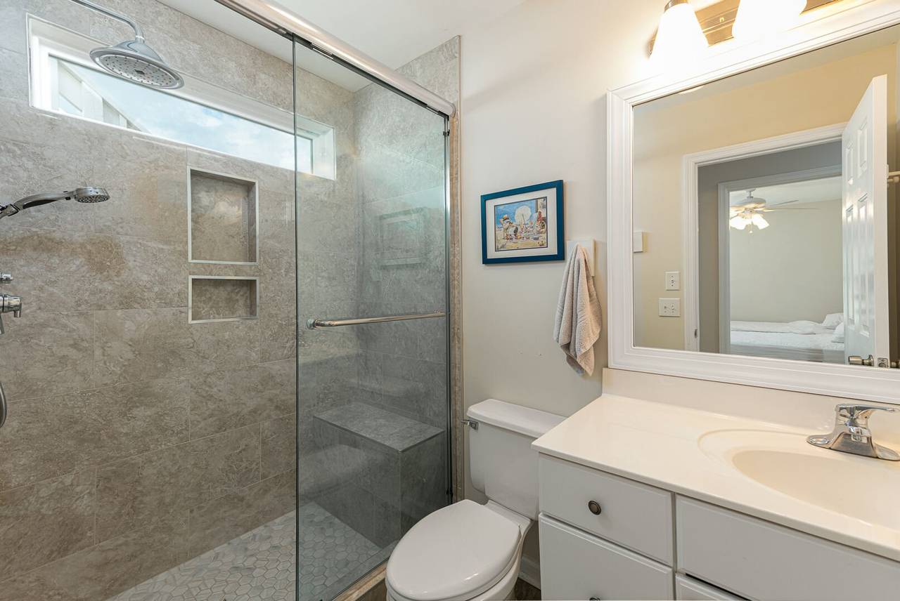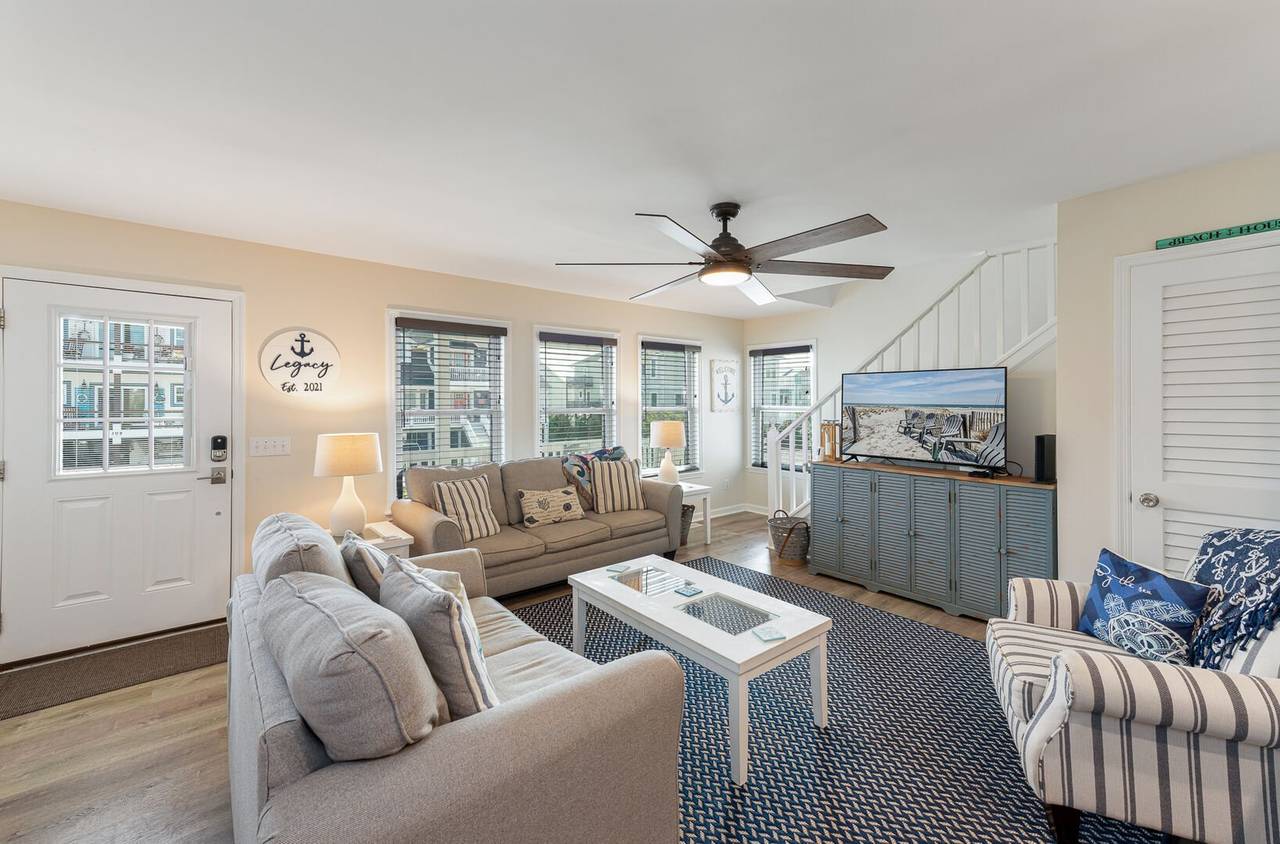 Outside, you will also find a spacious fenced-in backyard that is perfect for entertaining, an enclosed outdoor shower with hot and cold water, and a gas grill for the grill master in your party. Outdoor living at this home is really spectacular, with 2 al fresco dining opportunities amidst that fresh ocean air. Inside, each bedroom has its own TV and private access to exterior decks. Downstairs, you will find a great open floor plan, including an updated living room, kitchen, and dining area.