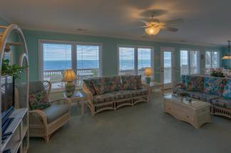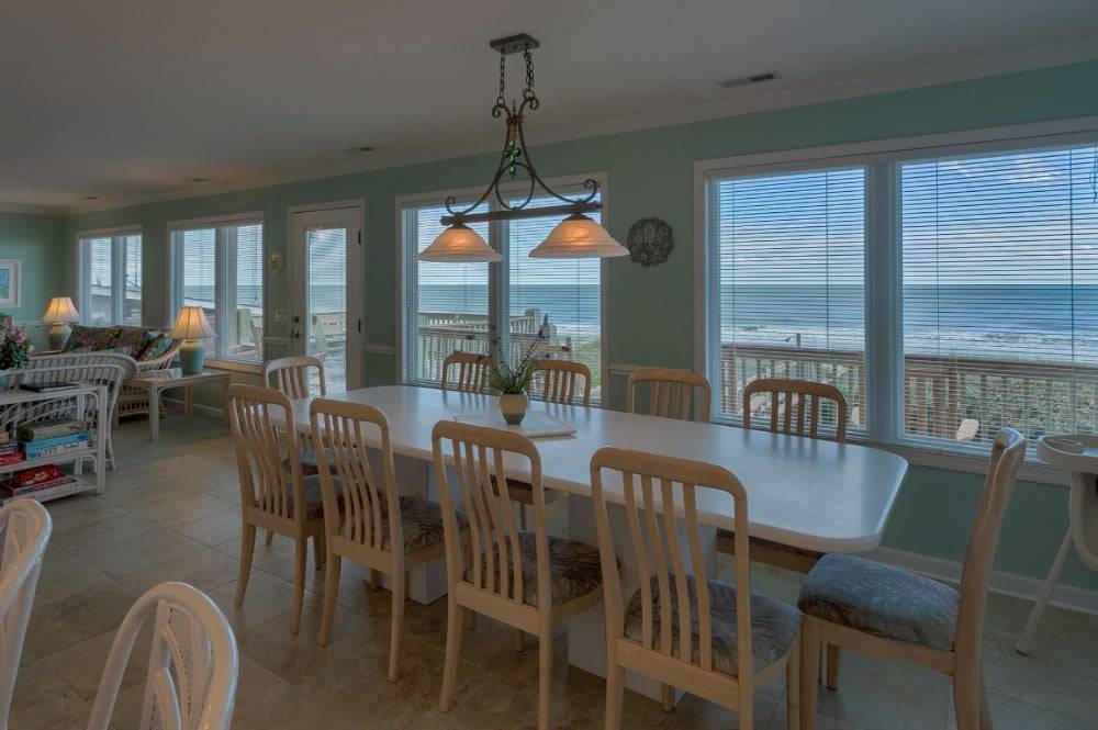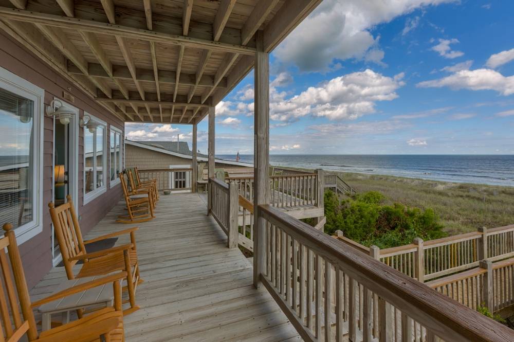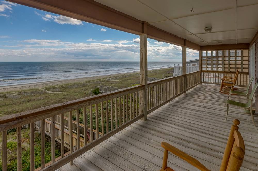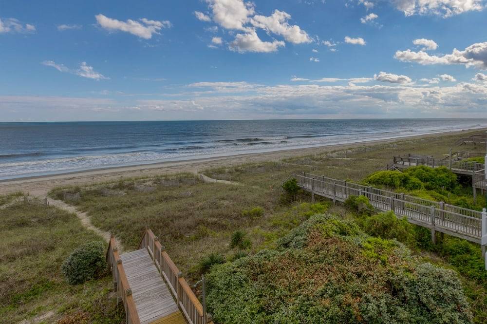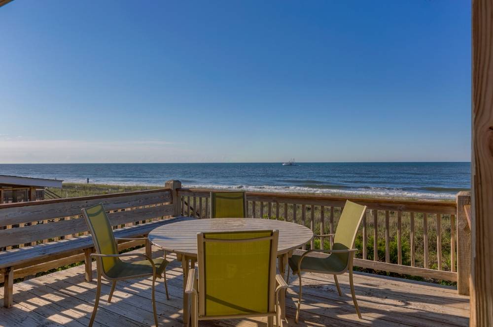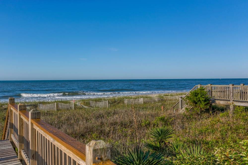 Plan now for a magical vacation! As beautiful and tranquil as the Lothlorien of literature, this oceanfront home provides wonderful ocean and marsh views from the covered porches and sundeck. A private boardwalk takes you across the dunes to the broad expanse of the sun-drenched beach! This Hobbs Smart Home (2K, 2Q, 1DB w/TB) has a bright open floor plan with two separate living areas, a dining area, spacious bedrooms, and a kitchen with an eat-in bar, two refrigerators, a Keurig, and a large crockpot.Â