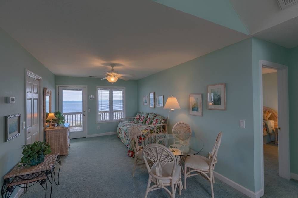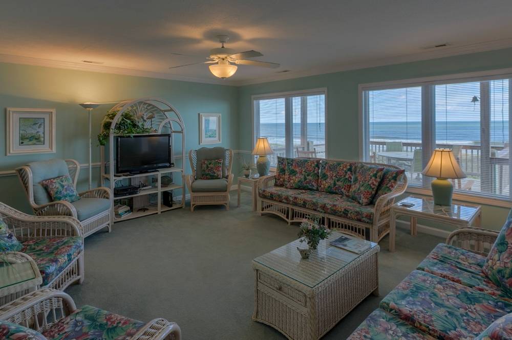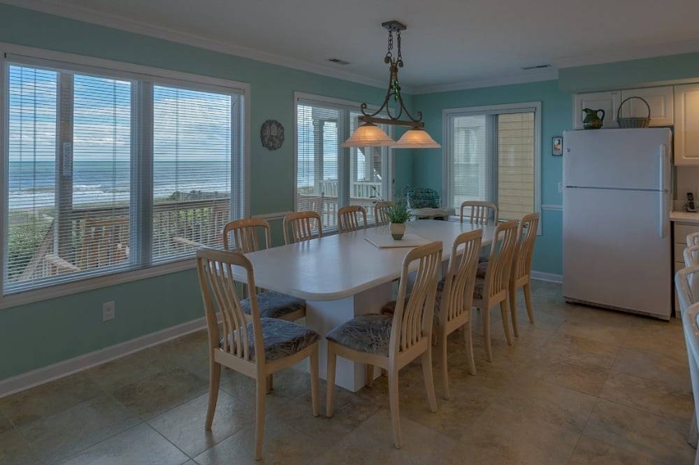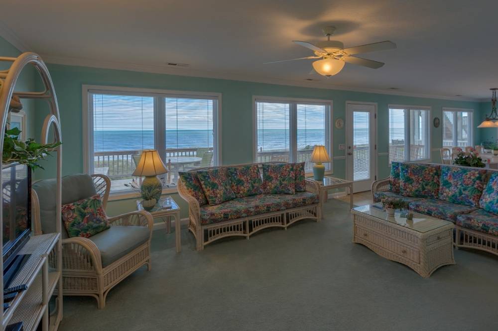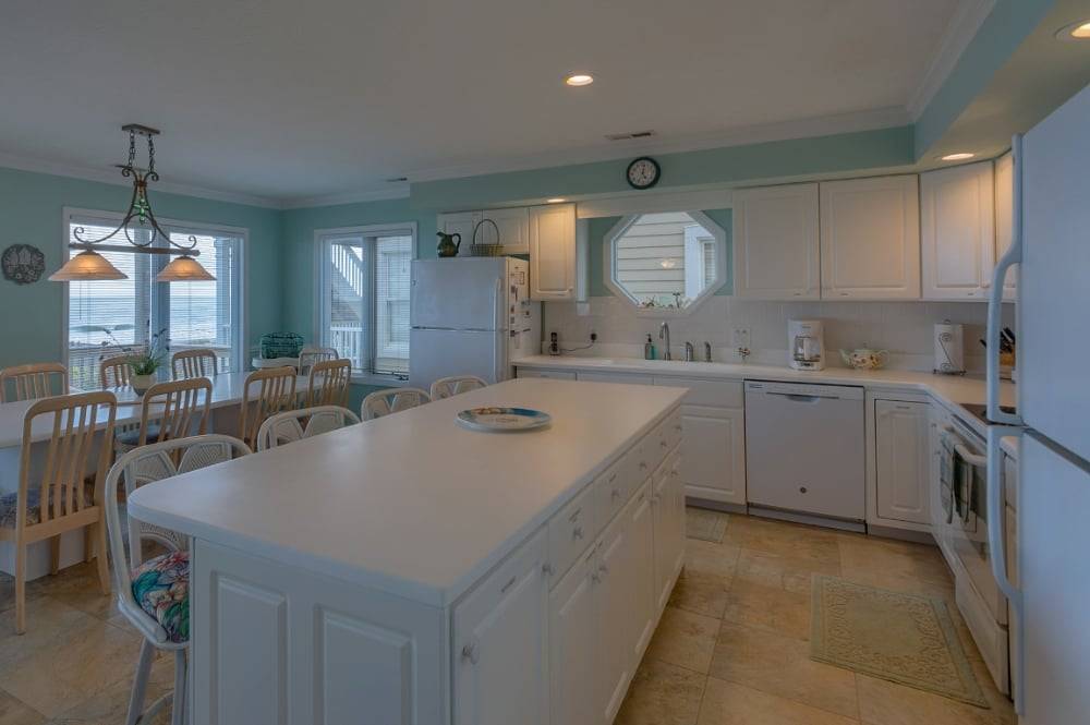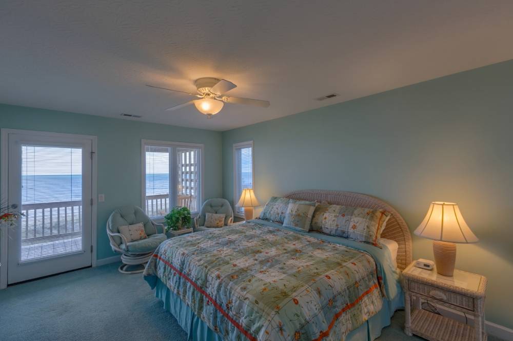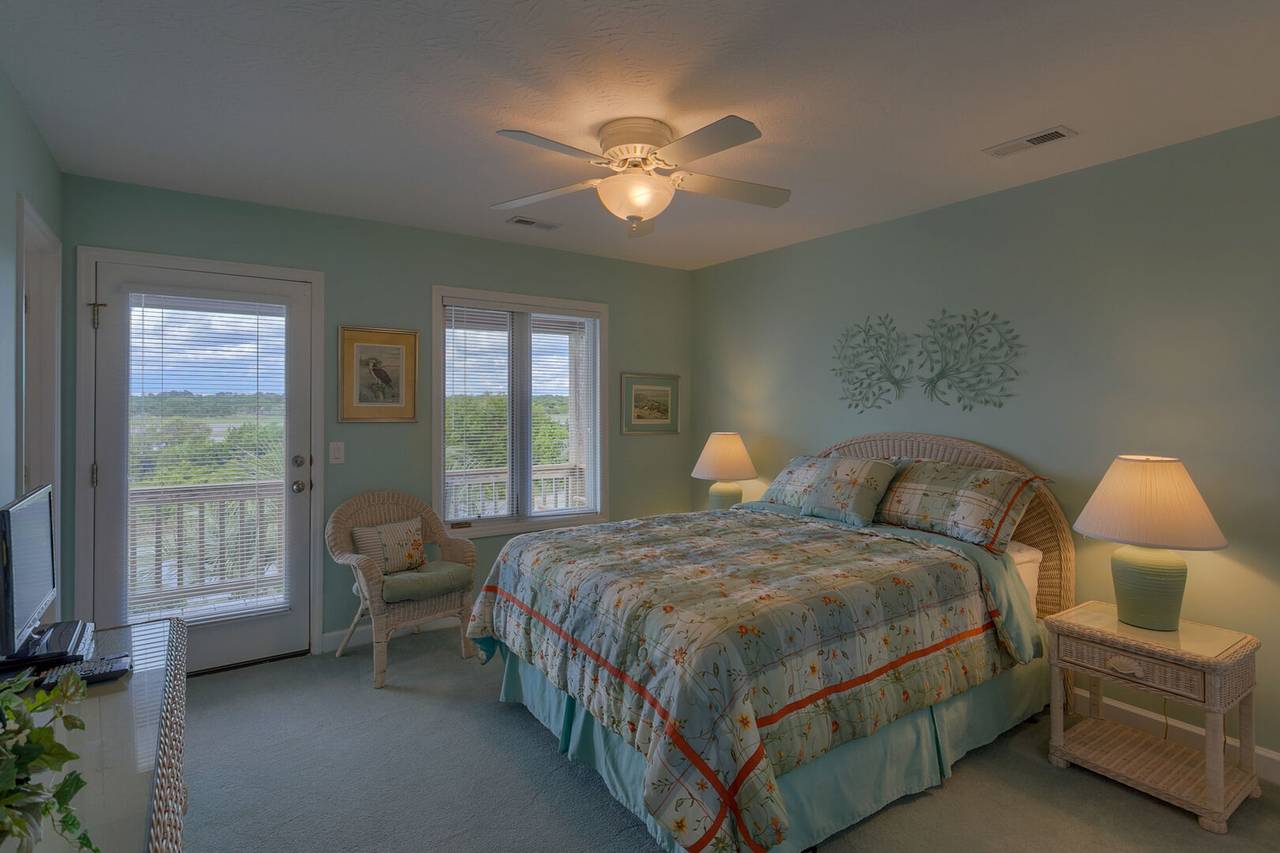 Plan now for a magical vacation! As beautiful and tranquil as the Lothlorien of literature, this oceanfront home provides wonderful ocean and marsh views from the covered porches and sundeck. A private boardwalk takes you across the dunes to the broad expanse of the sun-drenched beach! This Hobbs Smart Home (2K, 2Q, 1DB w/TB) has a bright open floor plan with two separate living areas, a dining area, spacious bedrooms, and a kitchen with an eat-in bar, two refrigerators, a Keurig, and a large crockpot.Â