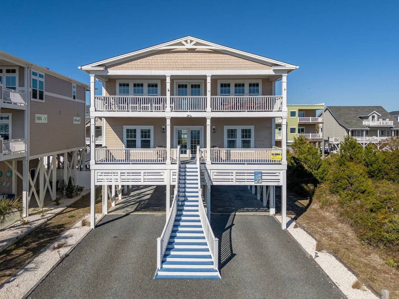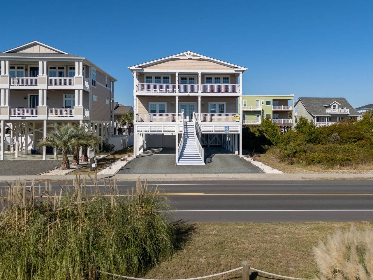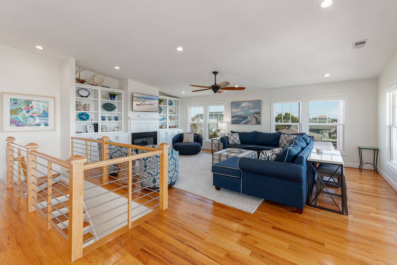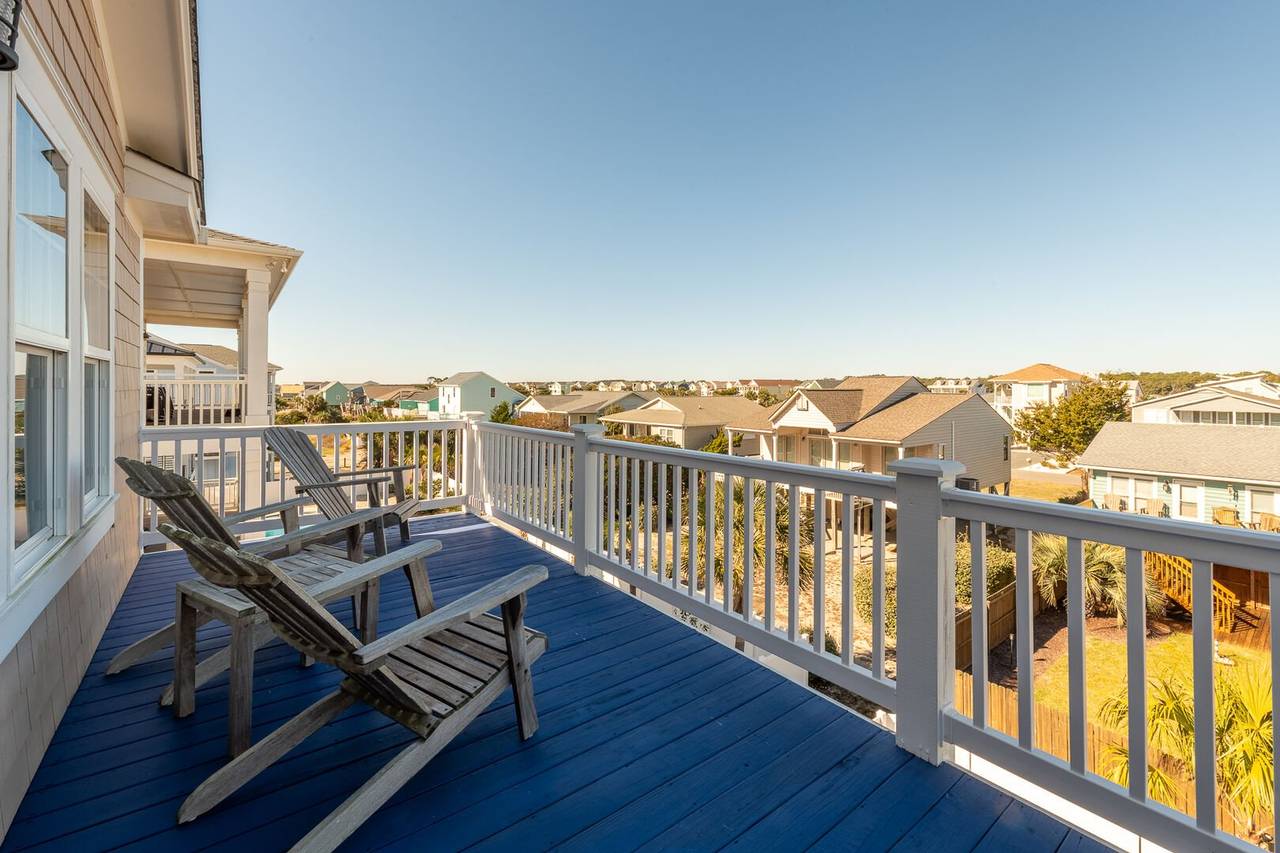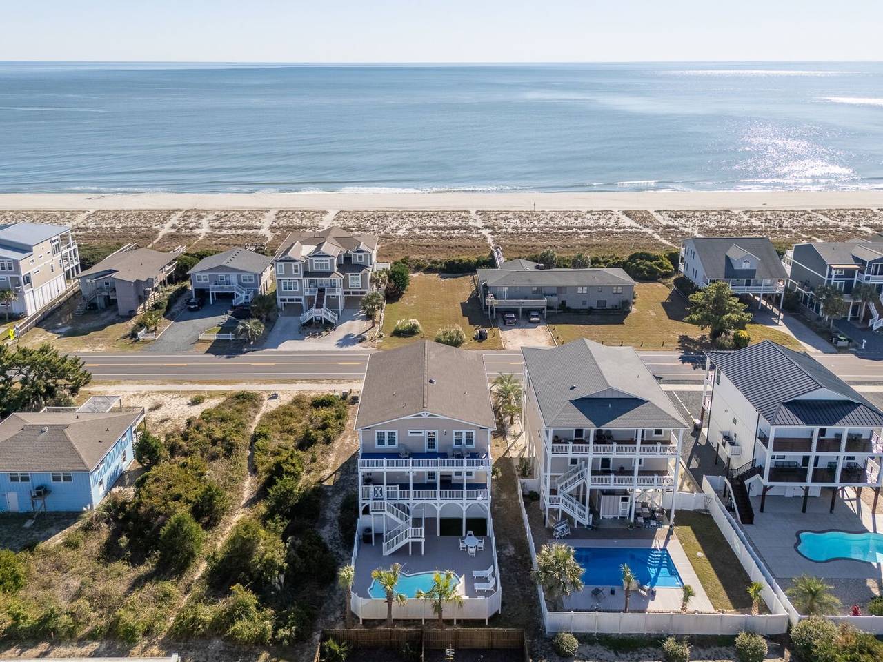 Are you looking for a perfect getaway to enjoy the sun, sand, and sea? Look no further than this stunning 2nd row beach home with expansive ocean views! You do not want to miss this immaculate coastal retreat with all the bells and whistles! This home features an inverted floor plan with 5 bedrooms, 5 bathrooms, and breathtaking ocean views from the Great Room and spacious front decks. Elevated finishing throughout with nicely appointed furniture, hardwood floors and granite countertops. The upper level has a fully equipped kitchen with a gas 5 burner cooktop, a spacious island and a 42” stainless steel refrigerator. There is plenty of seating in the Dining Room for your whole party to dine together or dine al fresco at the teak table on the covered front porch! The spacious living room is perfect for relaxing with a movie or your favorite show on the smart flat-screen TV. In the rear of the house, you will find two bedrooms with private bathrooms, smart TVs, and walk-in closets. There is also an uncovered deck overlooking the pool and perfect for viewing the sunset or stargazing!