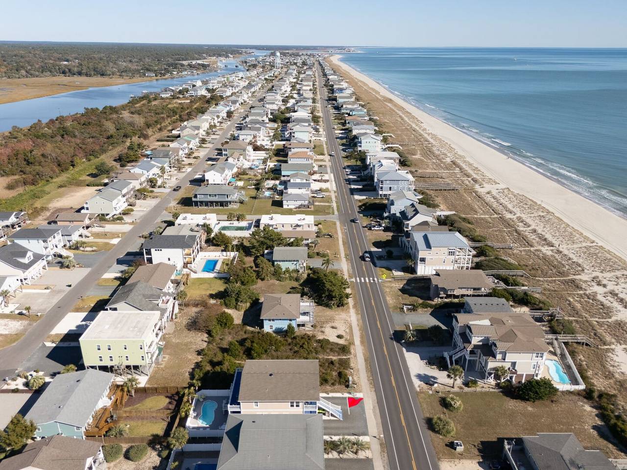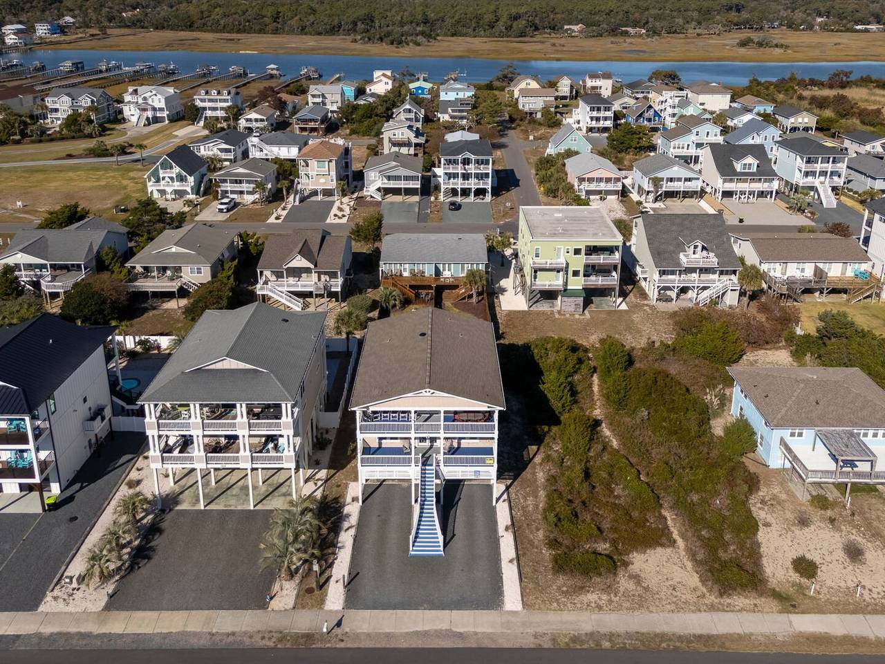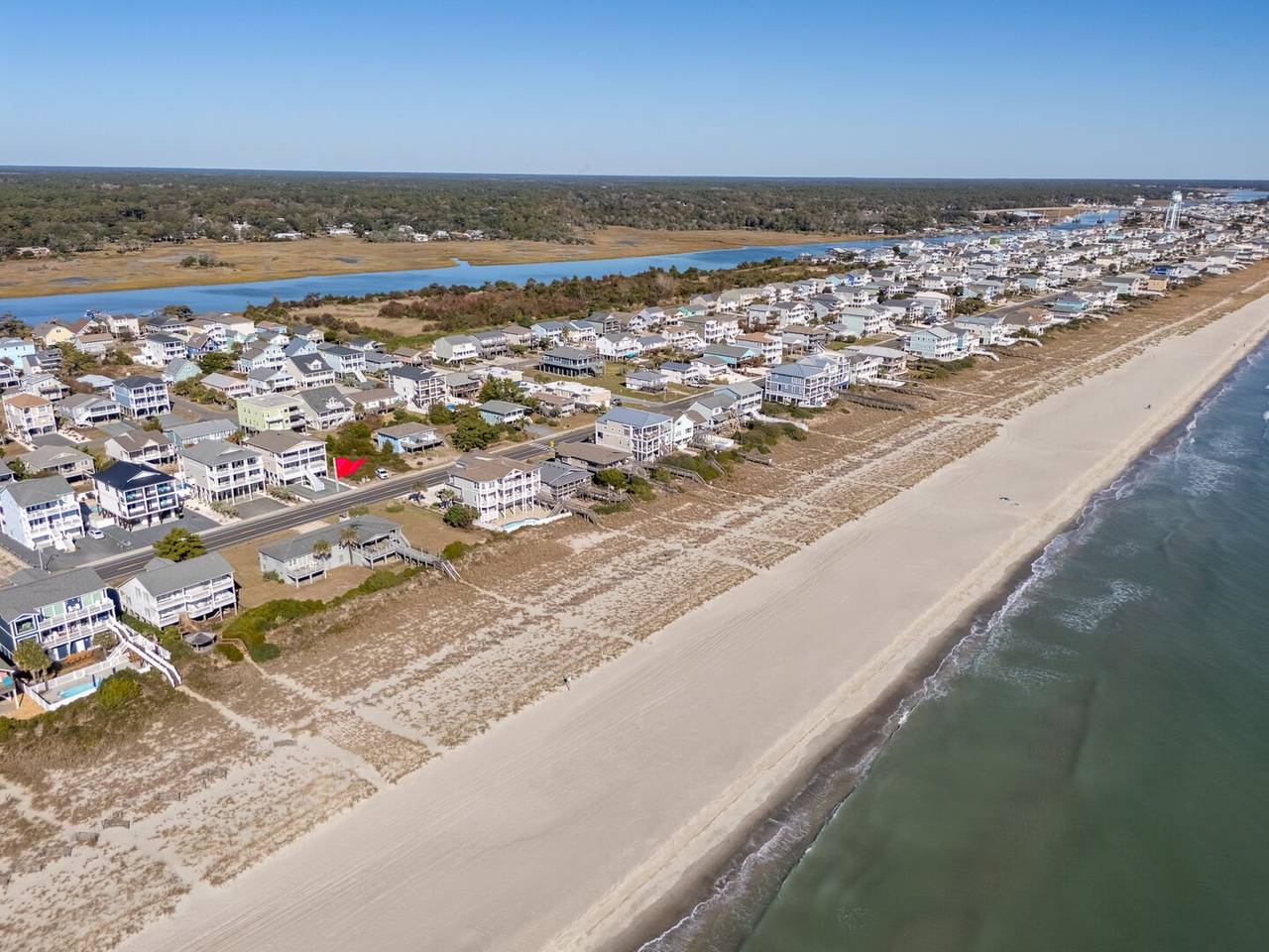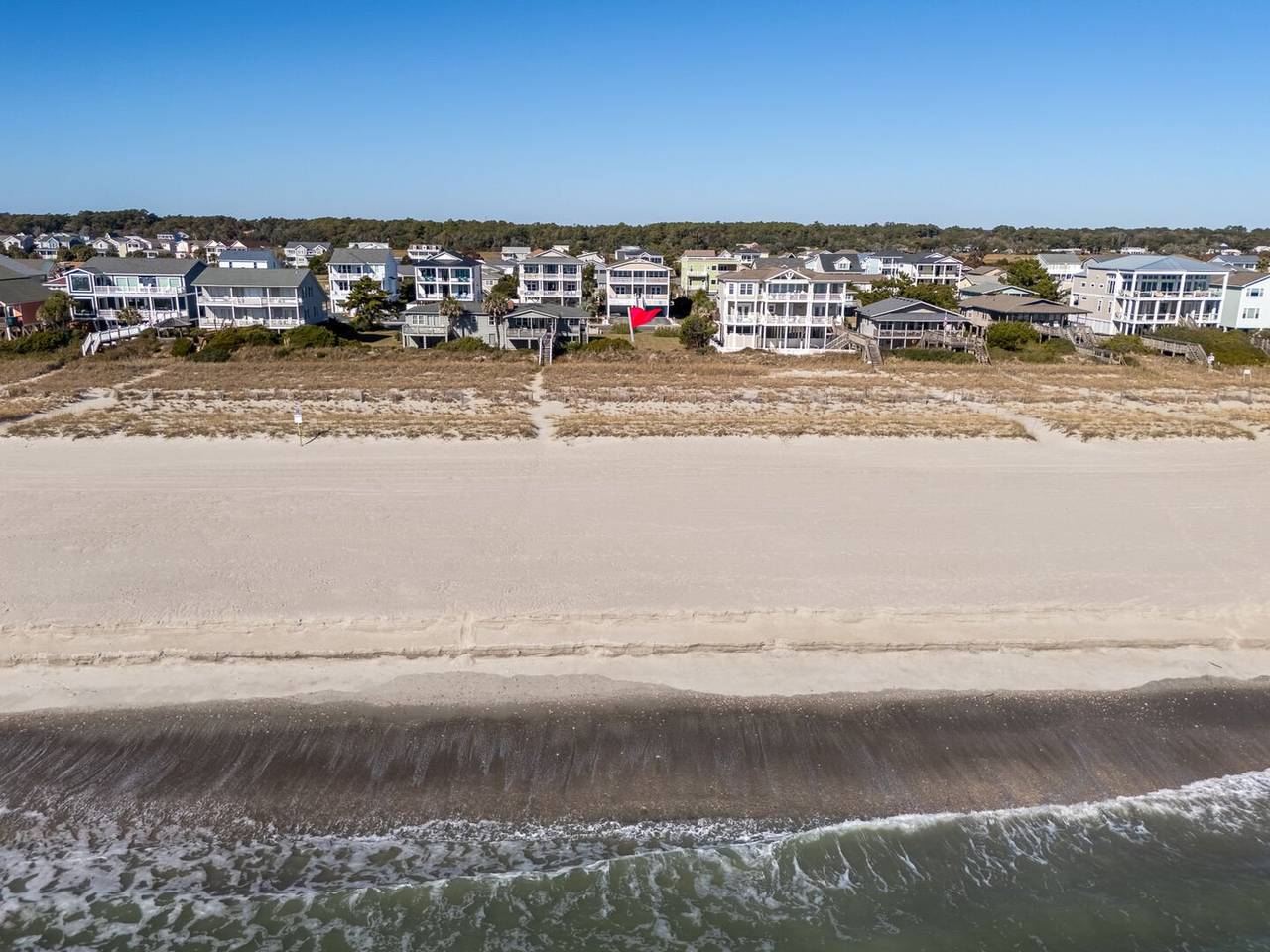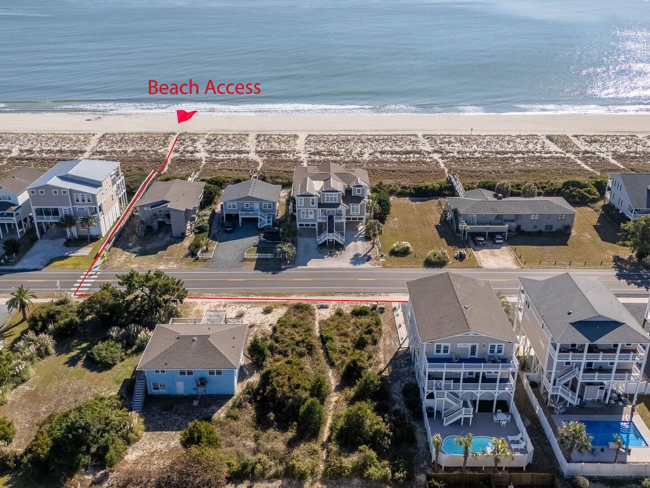 Are you looking for a perfect getaway to enjoy the sun, sand, and sea? Look no further than this stunning 2nd row beach home with expansive ocean views! You do not want to miss this immaculate coastal retreat with all the bells and whistles! This home features an inverted floor plan with 5 bedrooms, 5 bathrooms, and breathtaking ocean views from the Great Room and spacious front decks. Elevated finishing throughout with nicely appointed furniture, hardwood floors and granite countertops. The upper level has a fully equipped kitchen with a gas 5 burner cooktop, a spacious island and a 42” stainless steel refrigerator. There is plenty of seating in the Dining Room for your whole party to dine together or dine al fresco at the teak table on the covered front porch! The spacious living room is perfect for relaxing with a movie or your favorite show on the smart flat-screen TV. In the rear of the house, you will find two bedrooms with private bathrooms, smart TVs, and walk-in closets. There is also an uncovered deck overlooking the pool and perfect for viewing the sunset or stargazing!