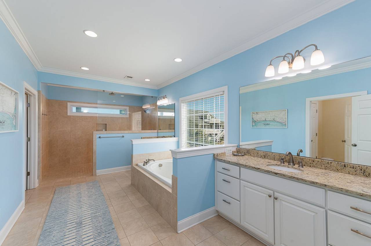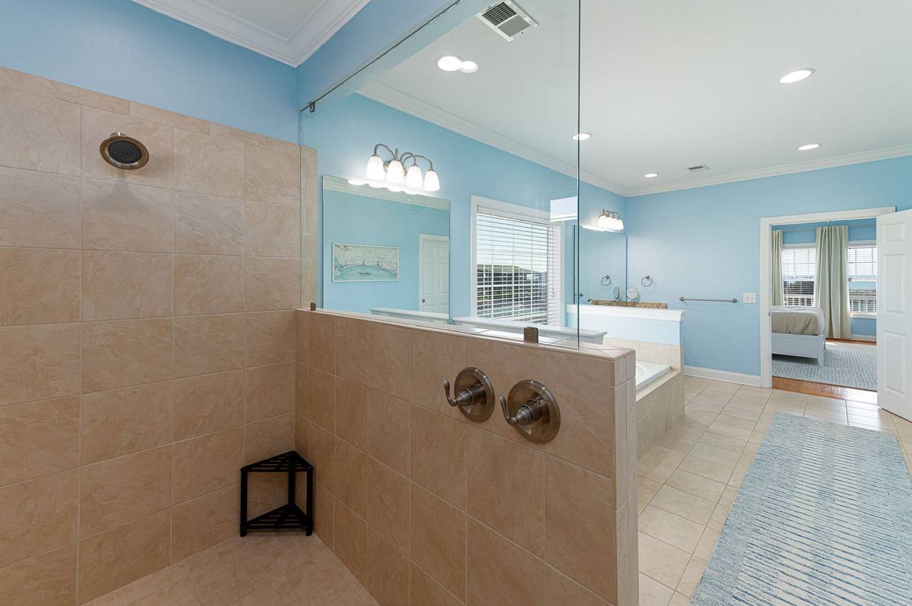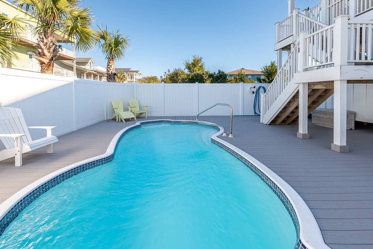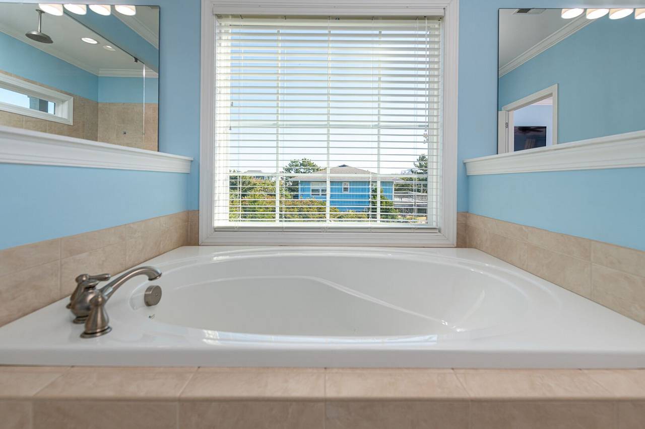 You will feel pampered in the lower-level master suite which has a king-size bed, TV, a walk-in closet, and a private bathroom with two vanities, a soaking tub, and an oversized walk-in shower with dual shower heads. On this level, there are two more spacious bedrooms both with private bathrooms and smart TVs. In the backyard, you will find a brand-new pool deck and a 6-foot privacy fence which were installed in 2023. You can relax on the lounge chairs, swim in the pool, or grill your favorite meals on the propane grill. The backyard also has an enclosed outdoor shower which makes cleaning off after a day at the beach a breeze. This pool may be heated from September - May for an additional $500 fee per week. Please note that under optimal conditions, the pool can be heated 10 degrees above the outside temperature/maximum of 87°F. Please call our office for more details as for optimal use, this service should be scheduled in advance.