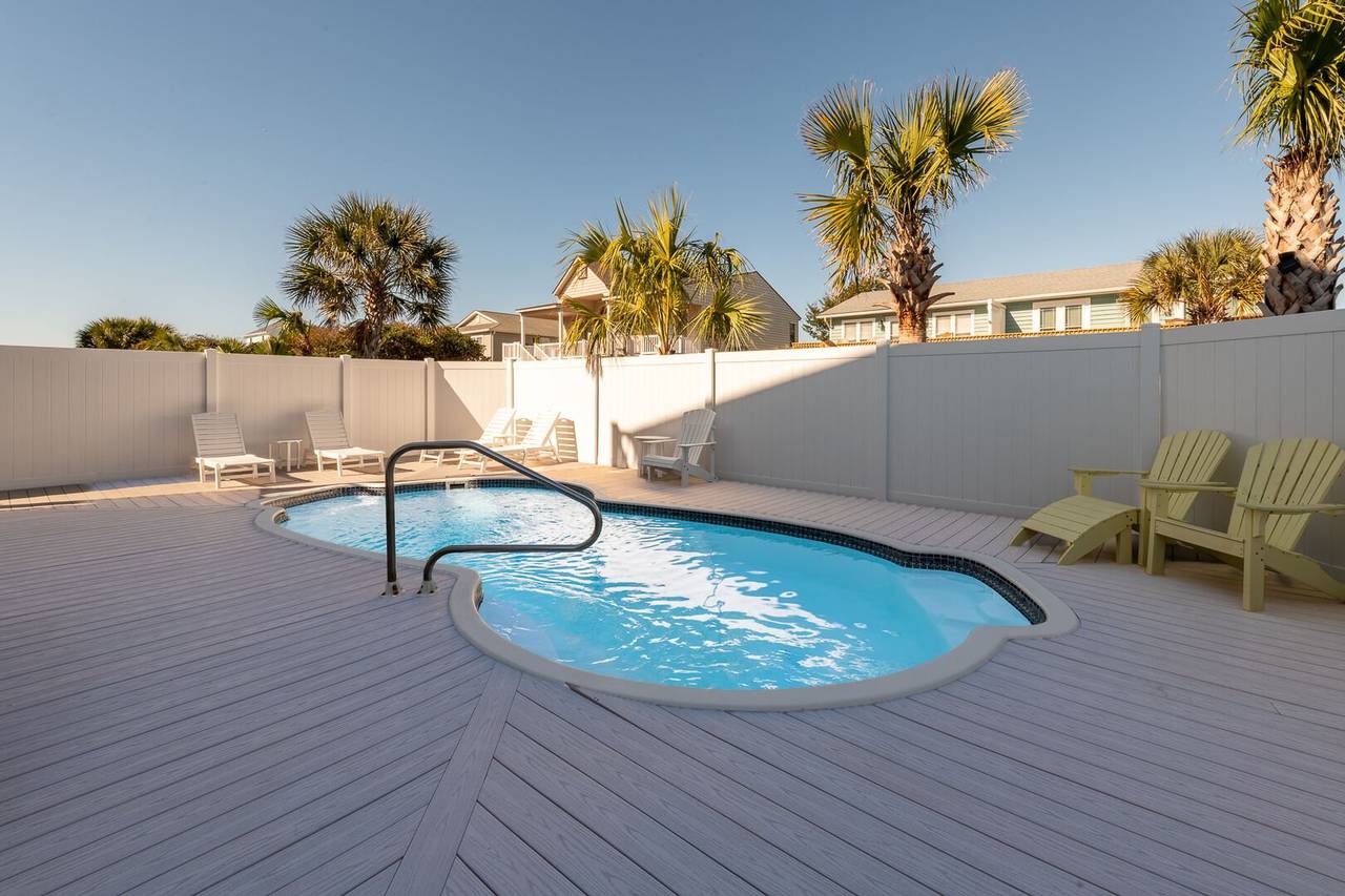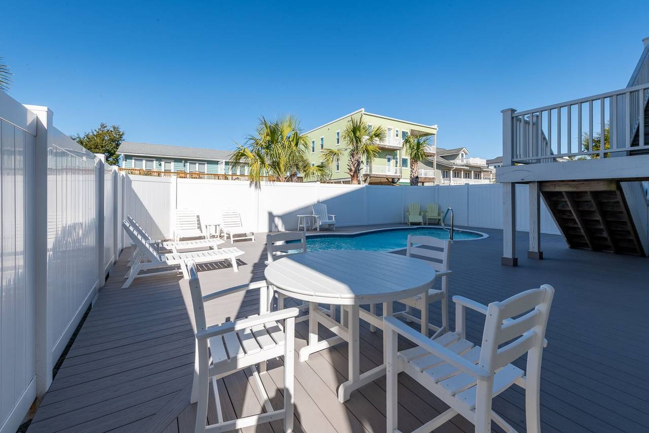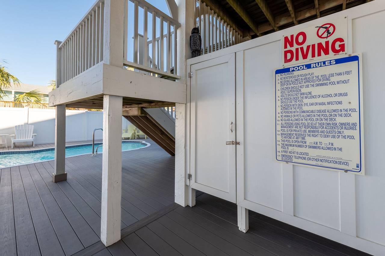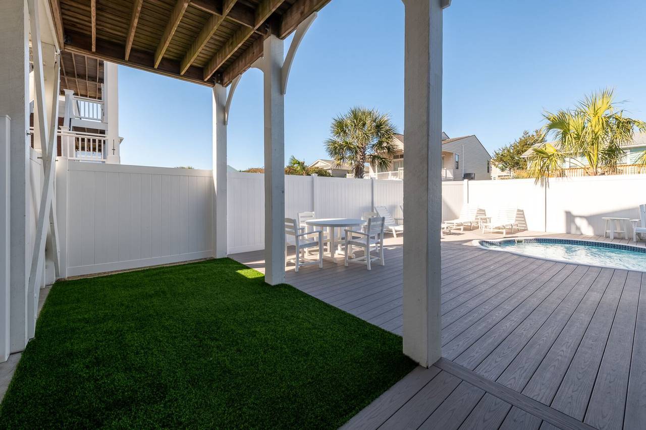 You will feel pampered in the lower-level master suite which has a king-size bed, TV, a walk-in closet, and a private bathroom with two vanities, a soaking tub, and an oversized walk-in shower with dual shower heads. On this level, there are two more spacious bedrooms both with private bathrooms and smart TVs. In the backyard, you will find a brand-new pool deck and a 6-foot privacy fence which were installed in 2023. You can relax on the lounge chairs, swim in the pool, or grill your favorite meals on the propane grill. The backyard also has an enclosed outdoor shower which makes cleaning off after a day at the beach a breeze. This pool may be heated from September - May for an additional $500 fee per week. Please note that under optimal conditions, the pool can be heated 10 degrees above the outside temperature/maximum of 87°F. Please call our office for more details as for optimal use, this service should be scheduled in advance.