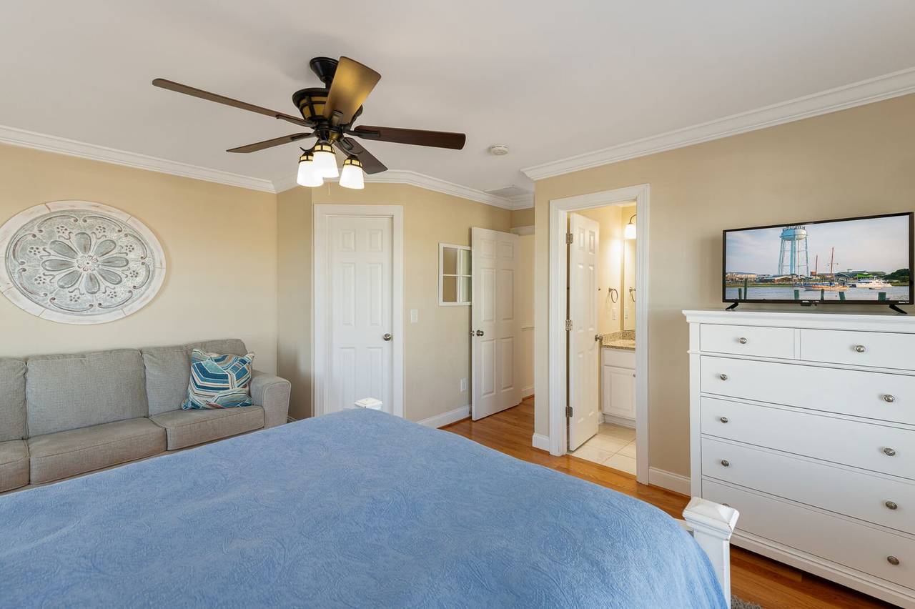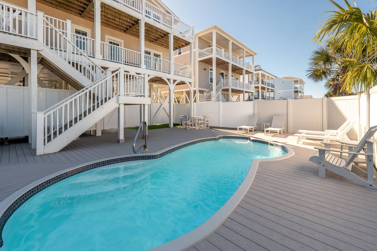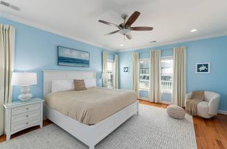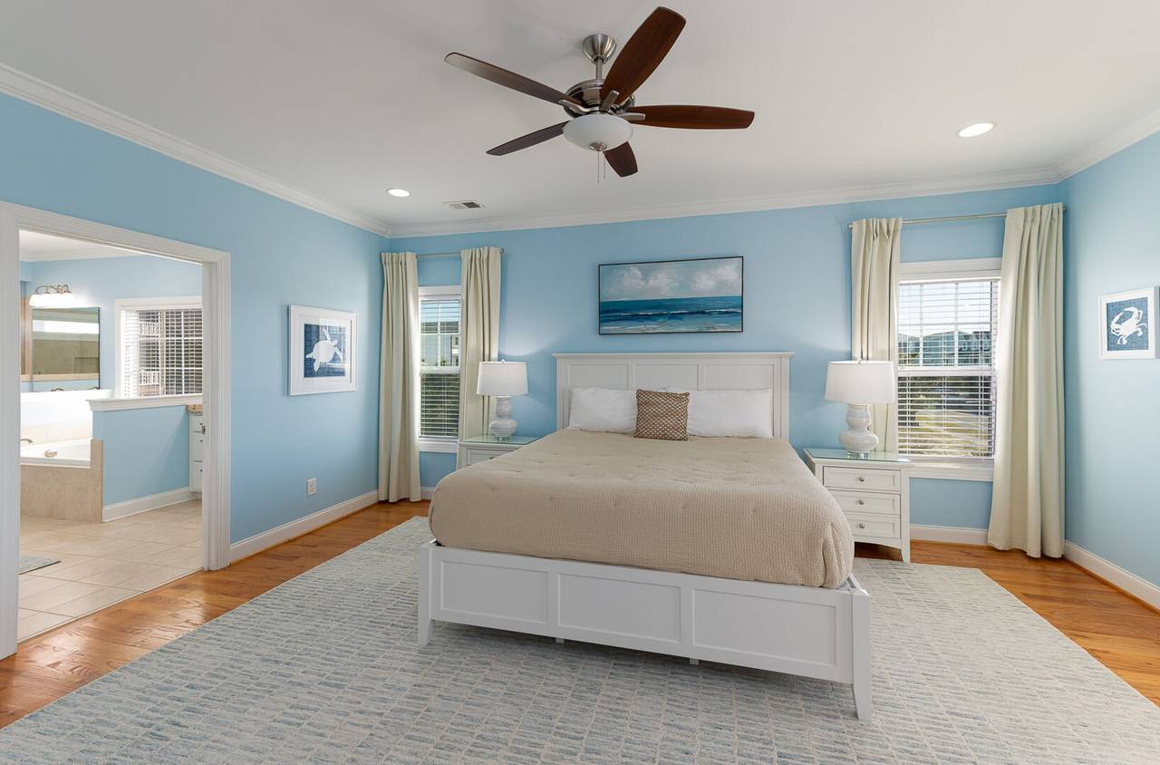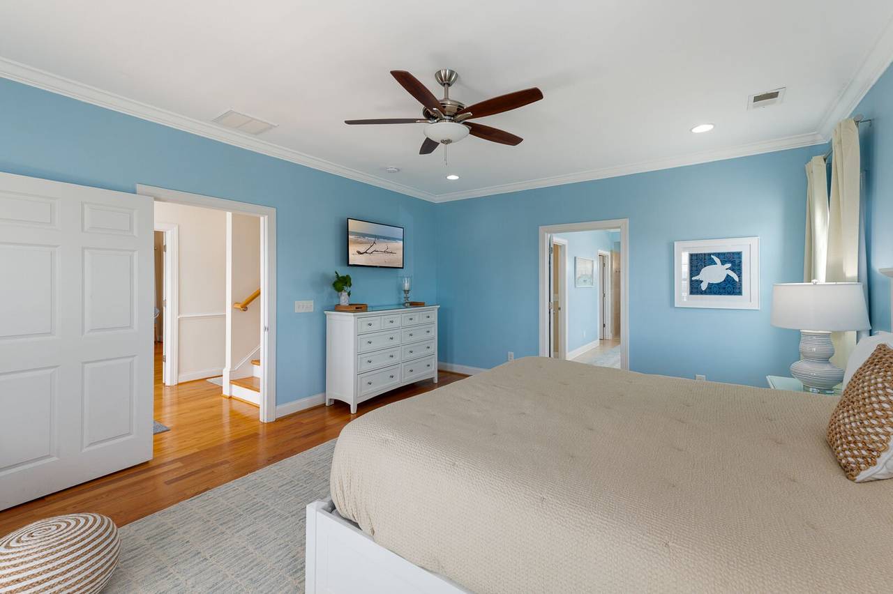 You will feel pampered in the lower-level master suite which has a king-size bed, TV, a walk-in closet, and a private bathroom with two vanities, a soaking tub, and an oversized walk-in shower with dual shower heads. On this level, there are two more spacious bedrooms both with private bathrooms and smart TVs. In the backyard, you will find a brand-new pool deck and a 6-foot privacy fence which were installed in 2023. You can relax on the lounge chairs, swim in the pool, or grill your favorite meals on the propane grill. The backyard also has an enclosed outdoor shower which makes cleaning off after a day at the beach a breeze. This pool may be heated from September - May for an additional $500 fee per week. Please note that under optimal conditions, the pool can be heated 10 degrees above the outside temperature/maximum of 87°F. Please call our office for more details as for optimal use, this service should be scheduled in advance.