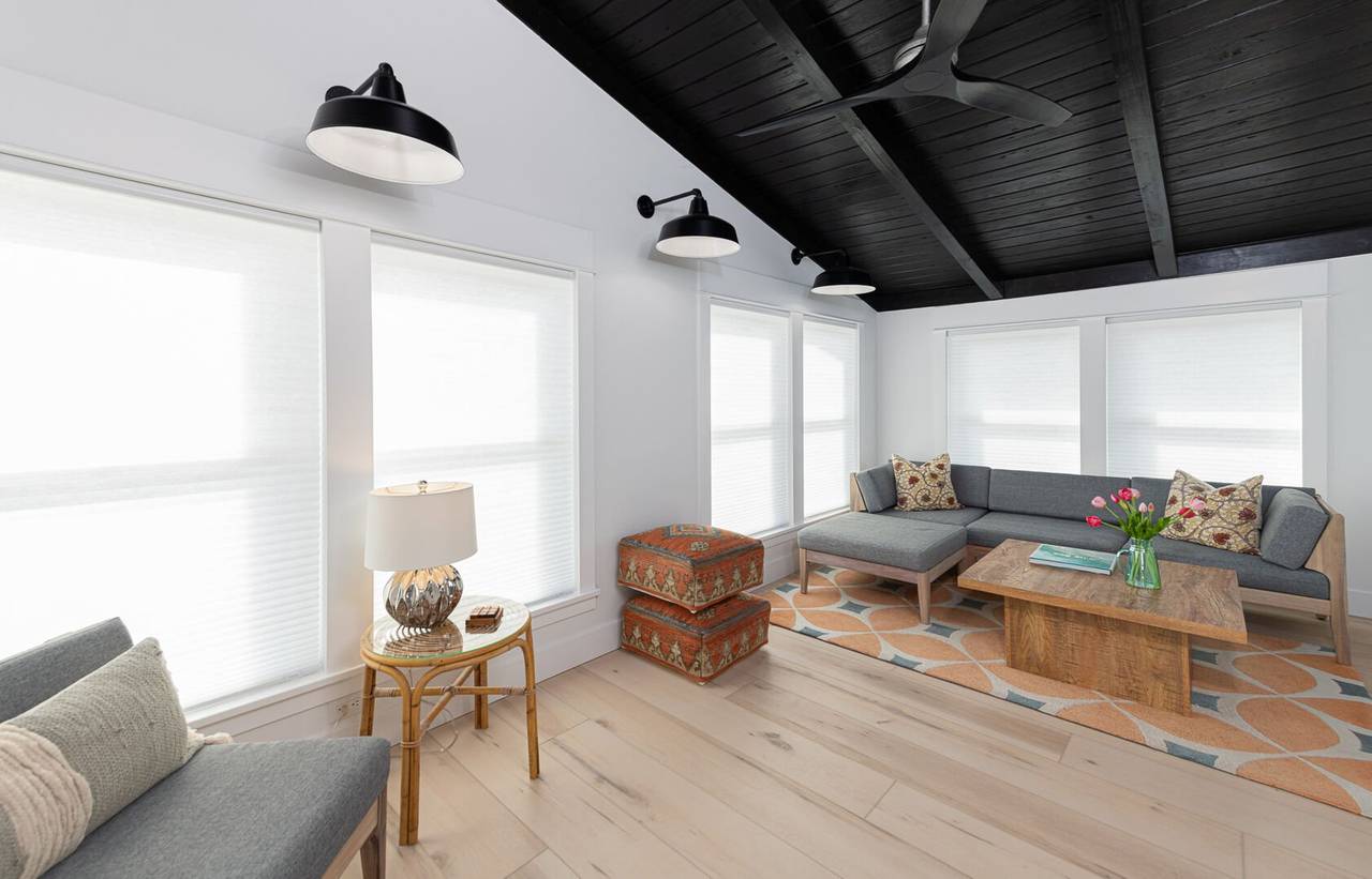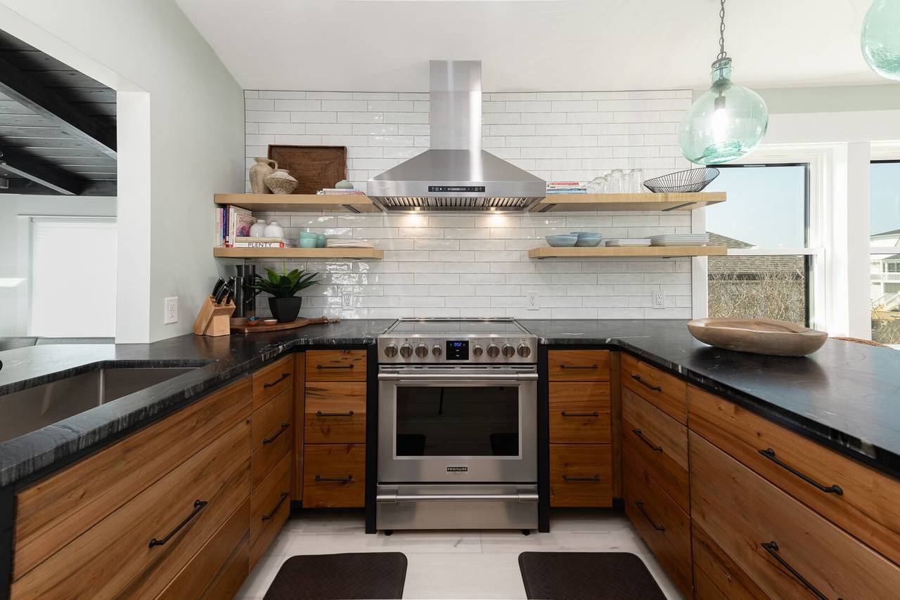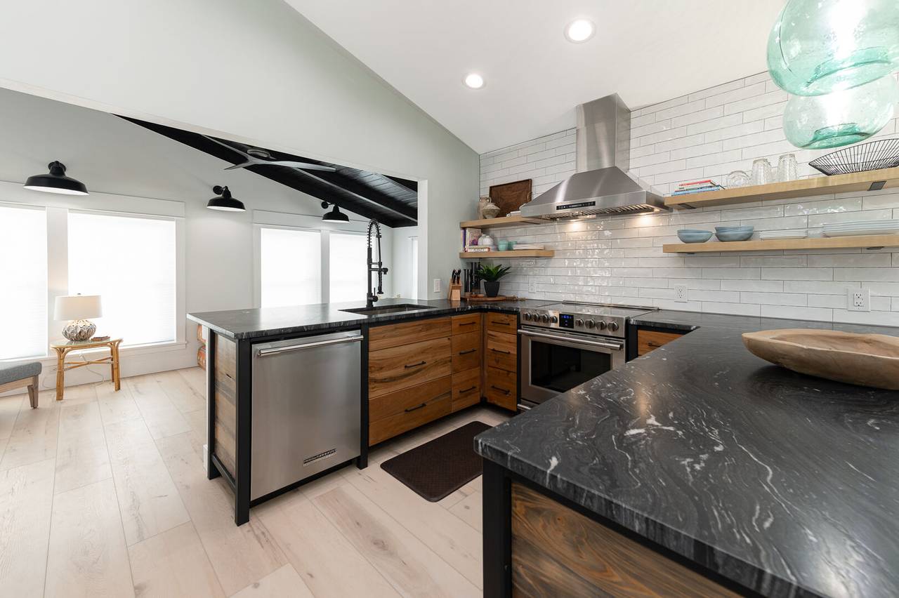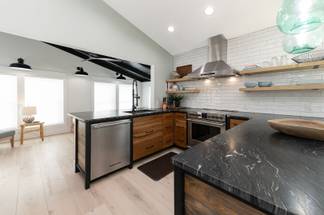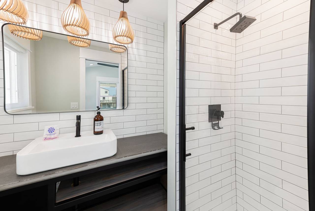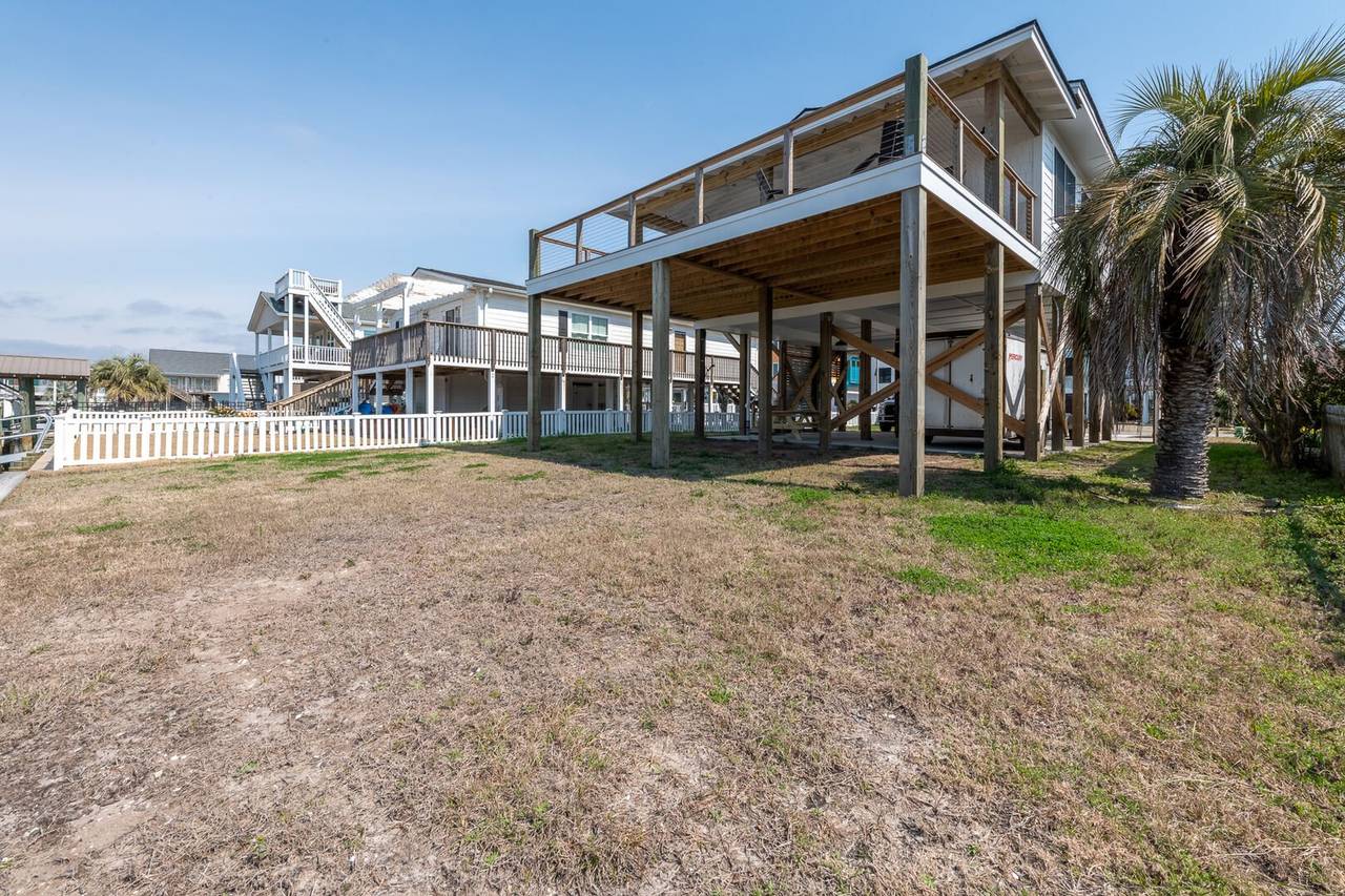 The first bedroom offers two twin beds and a private bathroom with a tiled shower, while the second bedroom boasts a cozy queen bed and its own en-suite bathroom. The spacious living room, with its large TV and cozy sectional sofa, is perfect for winding down, while the sunroom offers an extra seating area to enjoy the natural light that pours in through the windows. The kitchen is a dream for any home chef with sleek new appliances, an electric range, and seating for five at the two kitchen islands. The home also features a stacked washer and dryer for your convenience. Step outside to the large back deck, which overlooks the canal, perfect for relaxing or entertaining. The front deck is covered, offering a shaded spot to enjoy the island neighborhood views. With its updated decor, coastal modern finishes, and close public beach access, this vacation home is the perfect choice for your next Holden Beach getaway.