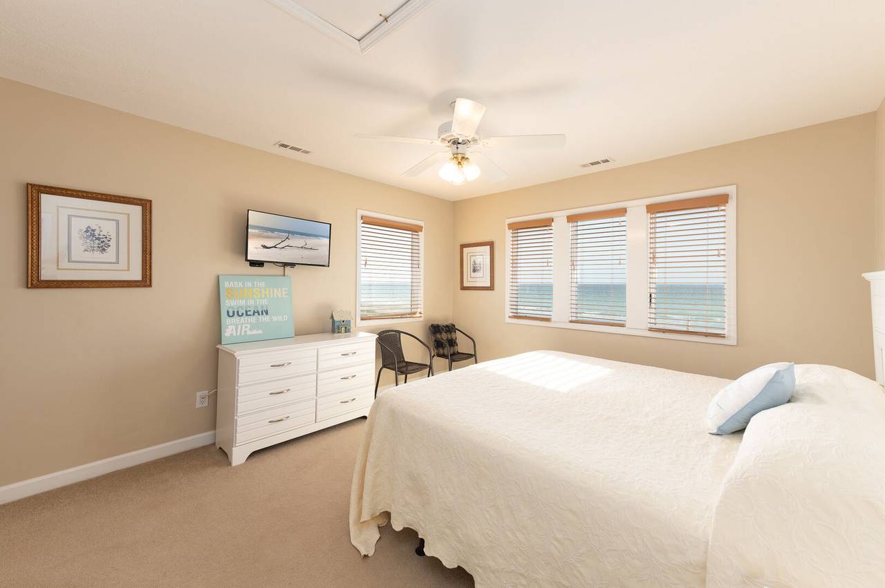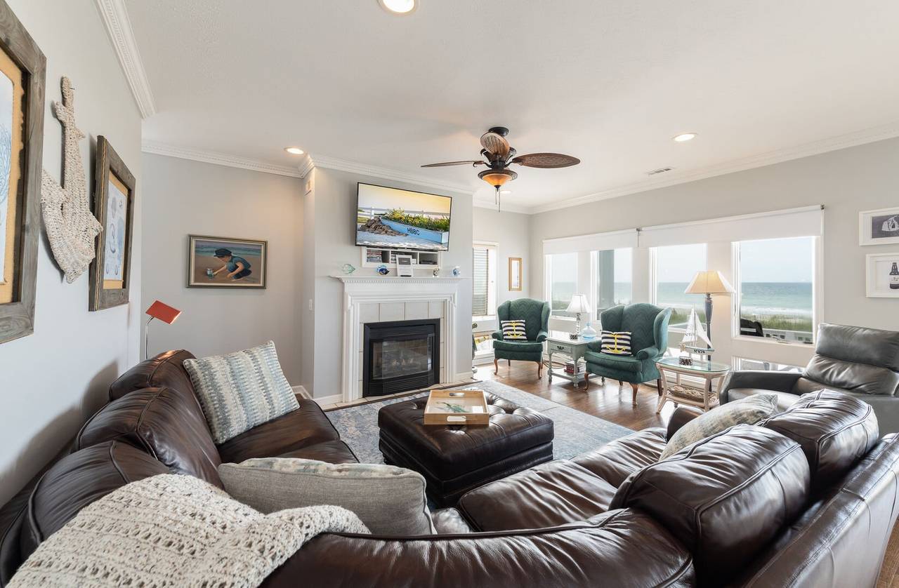 Amazing ocean and strand views await you in this gorgeous oceanfront paradise, located on the best part of the island. This Hobbs Smart Home (1K, 3Q, 3T, 1BB) has it all; two living rooms for plenty of space, the main living room has a 55" TV, a dining area that seats eight, a large kitchen with bar seating, spacious oceanfront deck with two levels for shade and sun, and a street-side private pool (open from Easter - October). You are just steps away from the white sand beach, ocean, or pool to relax and play! Note: The fireplace shown in the photos is not operable.
