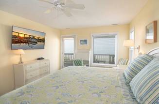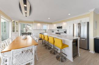 This beautifully furnished oceanfront home (3Q, 2K, 2T) has two oceanside-covered porches with rocking chairs and two sundecks, one attached to the first level porch and one tucked away in the dunes off the boardwalk. The kitchen was recently remodeled to include new cabinets, quartz countertops, and LVP wood flooring on the 1st floor!