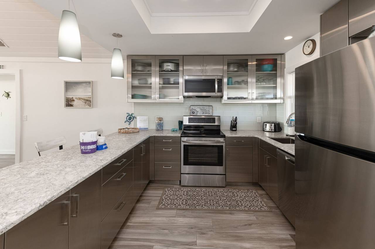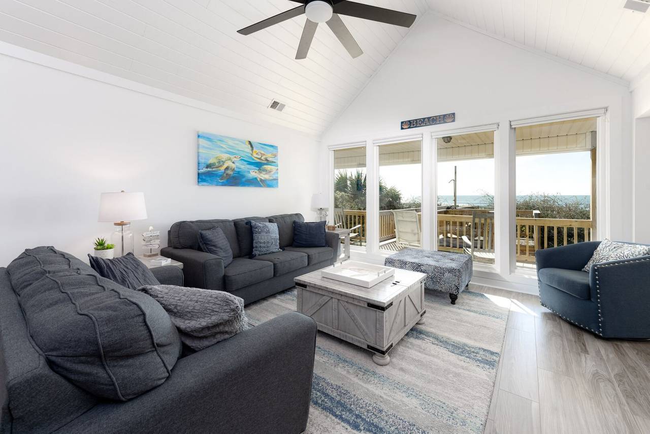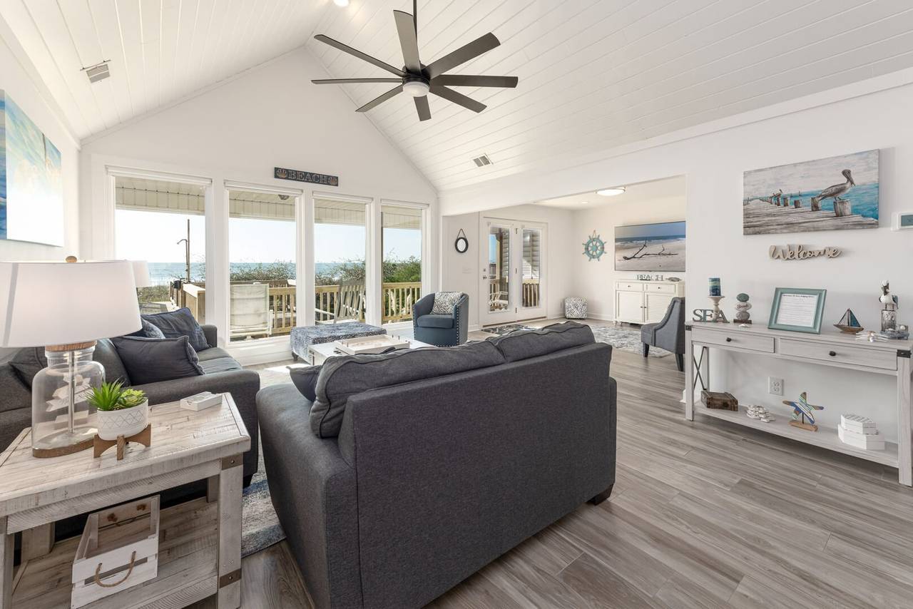 This oceanfront coastal retreat is the perfect spot for your next island vacation! The interior of the home lends a modern touch to a classic beach cottage. Inside, you will be greeted by lots of natural light, vaulted ceilings, updated furniture, and a large common area. Stainless steel cabinetry, upgraded appliances, and tile flooring are just some of the interior touches. Outside, there is a private hot tub, the decking has been recently replaced, and there is a ramp from the ground level to the oceanfront deck.