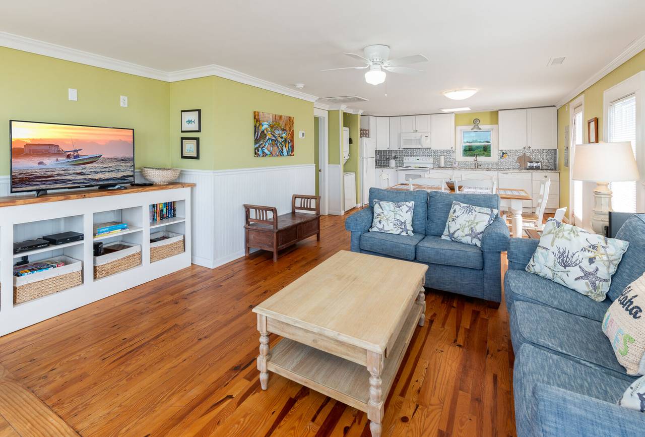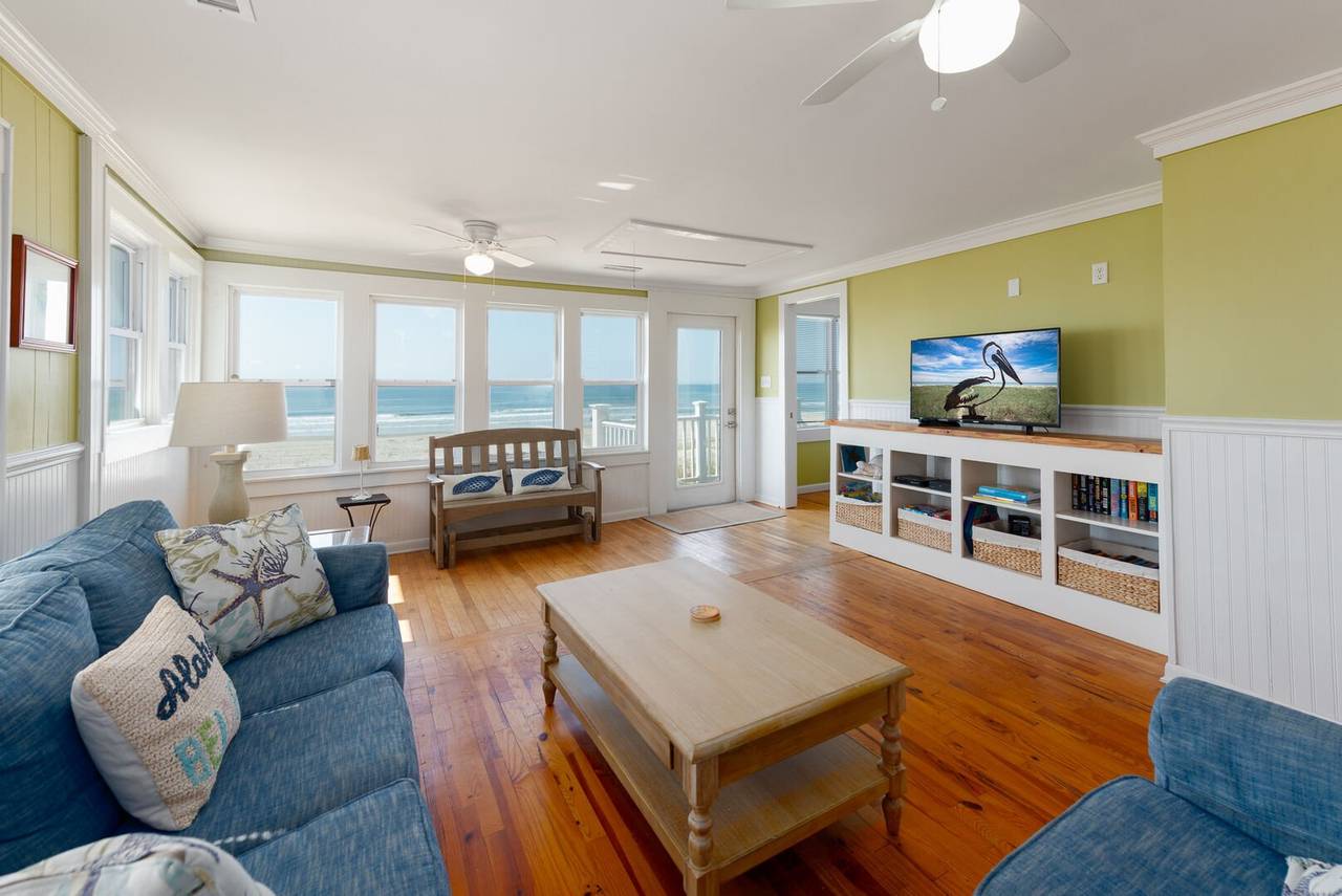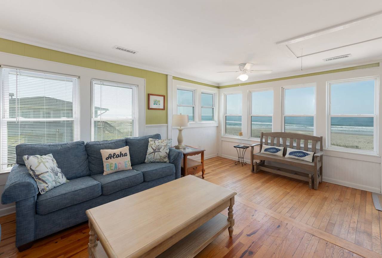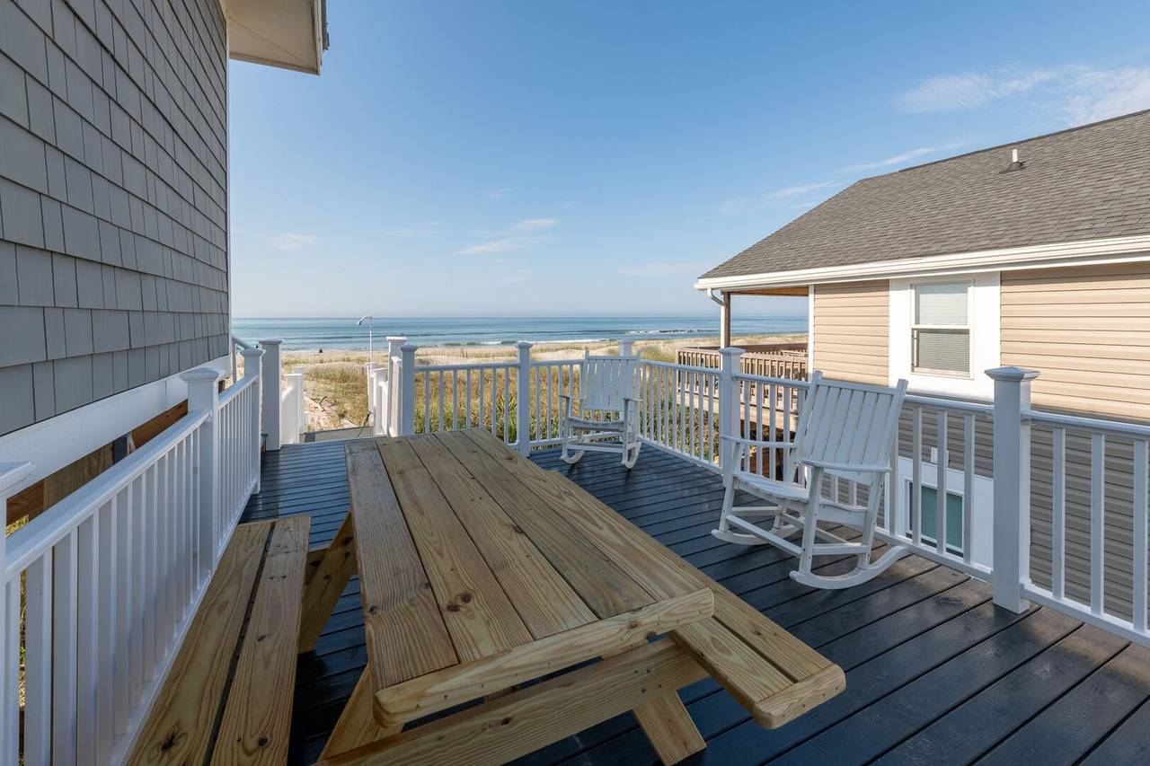 This charming original beachfront cottage with its outstanding ocean view sparkles and shines with fresh paint, refinished hardwoods and comfortable furnishings. Enjoy the sea breeze from the large deck while watching dolphins play in the surf. This inviting property welcomes you to dive in and enjoy the southern hospitality of Holden Beach while creating memories to last a lifetime.Â