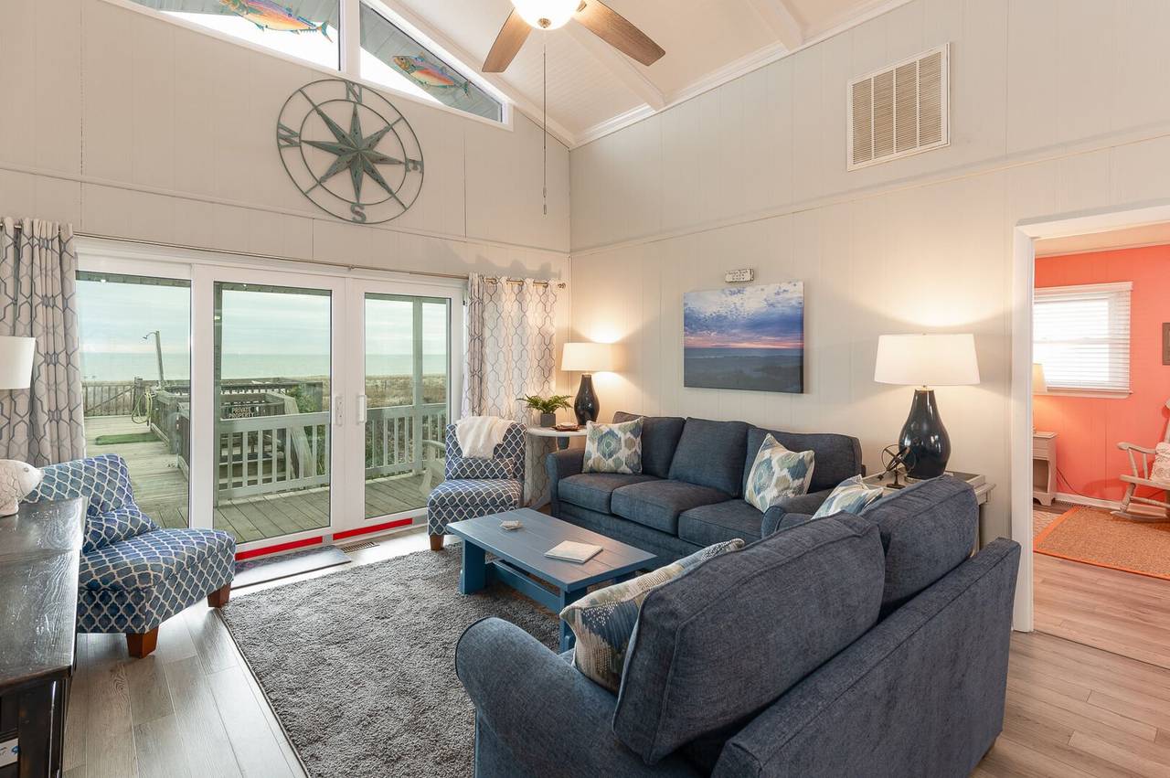 The cottage will accommodate 11 guests (2K,1Q, 2F, 1T). Enjoy an outdoor game of cornhole or enjoy al fresco dining at the picnic table for al fresco dining. Recent updates included a street-side pool (open from Easter - October), 3rd full bath, porch, pool and living room furniture, a remodeled kitchen with granite countertops, backsplash, stainless steel appliances, new floors throughout the house, as well as interior paint, new ceilings & lighting. Also, the laundry room has been moved upstairs, and large sliding glass doors were added leading to the beachside deck to improve your ocean view. Enjoy the large dining table and chairs, energy-efficient windows, and blinds throughout, and relax in the lounge chairs in the pool area!