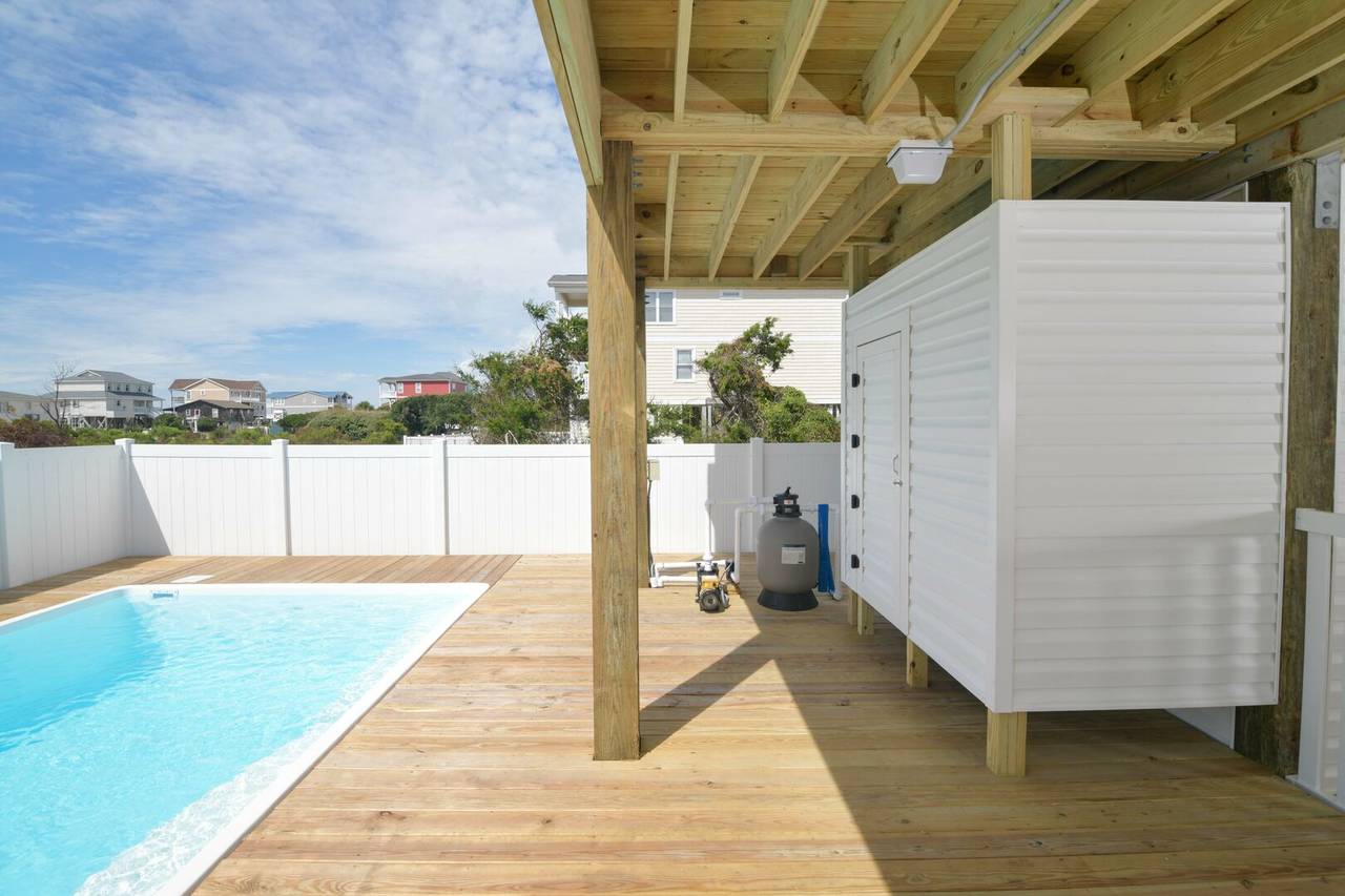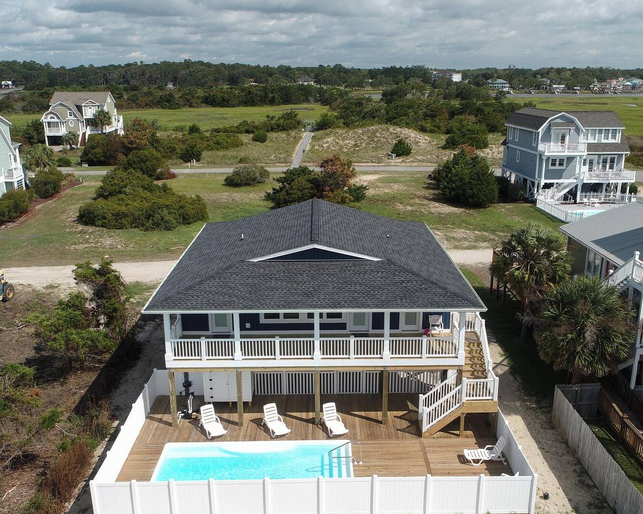 Cool off in the private pool or relax in the sunshine on the deck. Located on the third row, this gem allows you to access the beach with a short walk to the nearby public access near 1017 OBW, not part of the Point West Community beach access. To access the beach strand please turn right on Coquina Drive to go East out of the driveway. This will lead you to the white fence on your right. This indicates a footpath that will take you to Ocean Blvd. Take a left onto Ocean Blvd and travel East towards 1017 OBW on the sidewalk. The video on this listing will guide you as well. Come and enjoy all that Holden Beach has to offer!