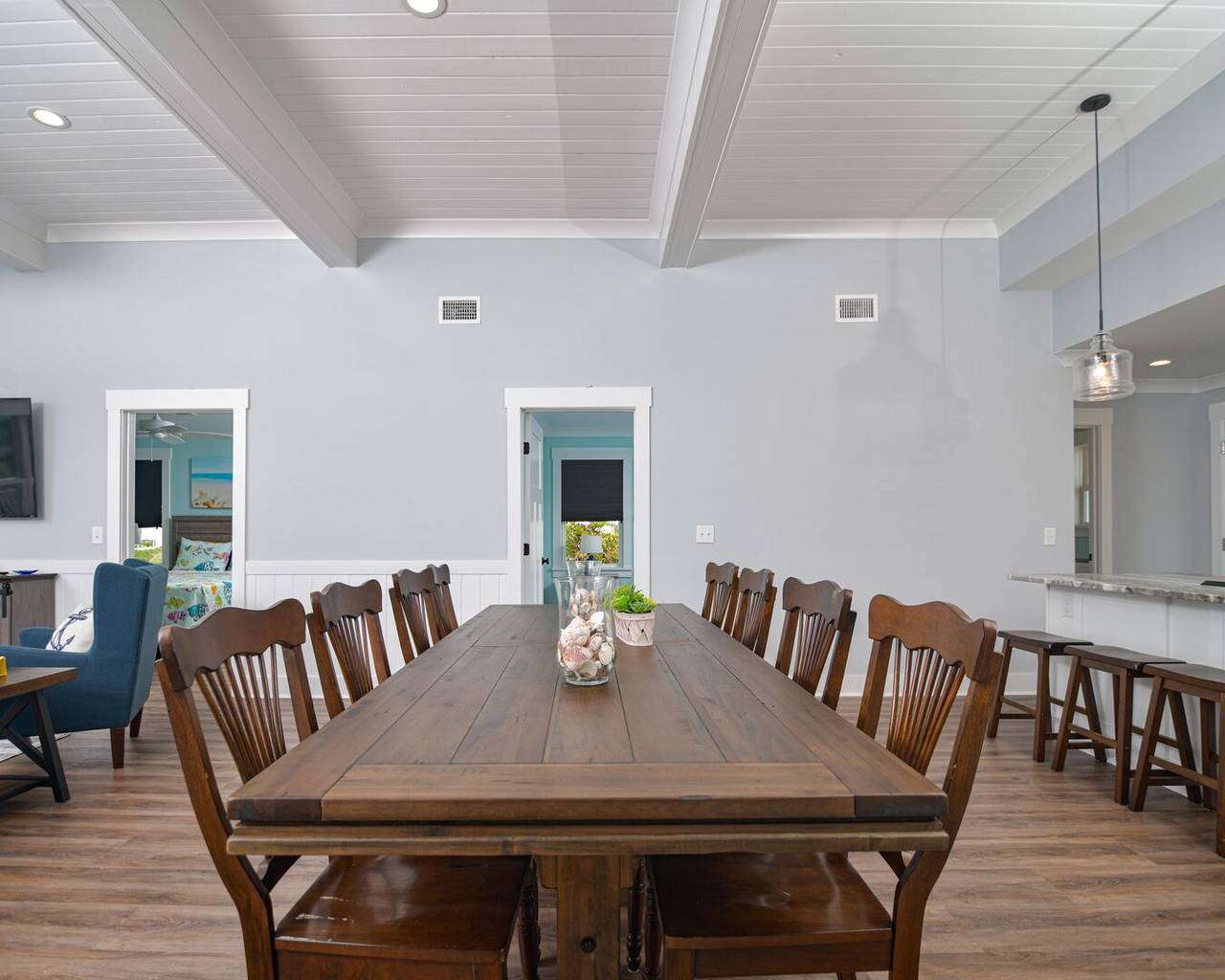 Too good to be "reel"! This spacious 4 bedroom/4 bathroom coastal dream features a beautiful open-concept interior, with vaulted ceilings and ship-lap accents. Wireless high-speed internet and cable streaming through ATMC's Merge service and Amazon Fire sticks.