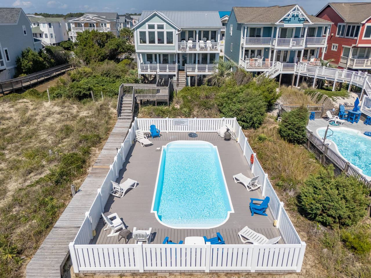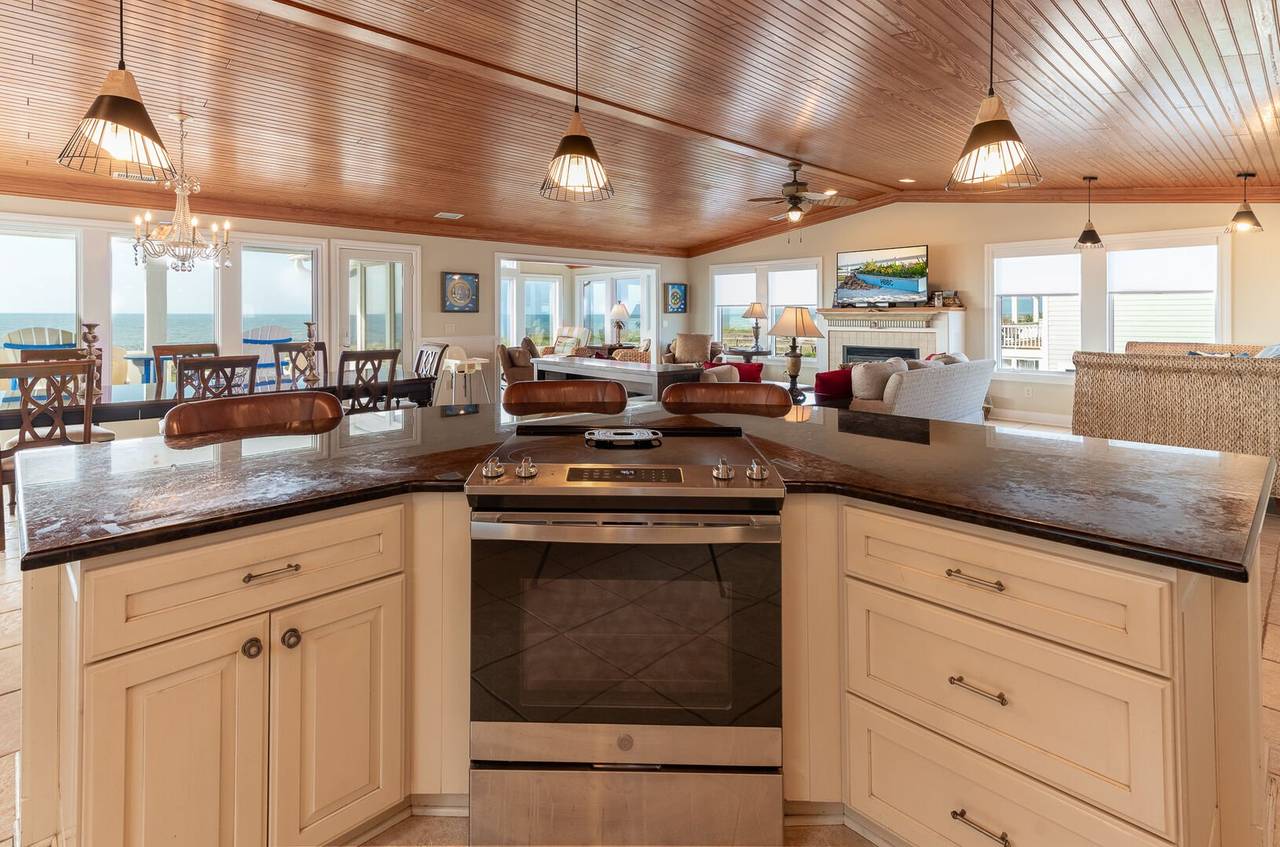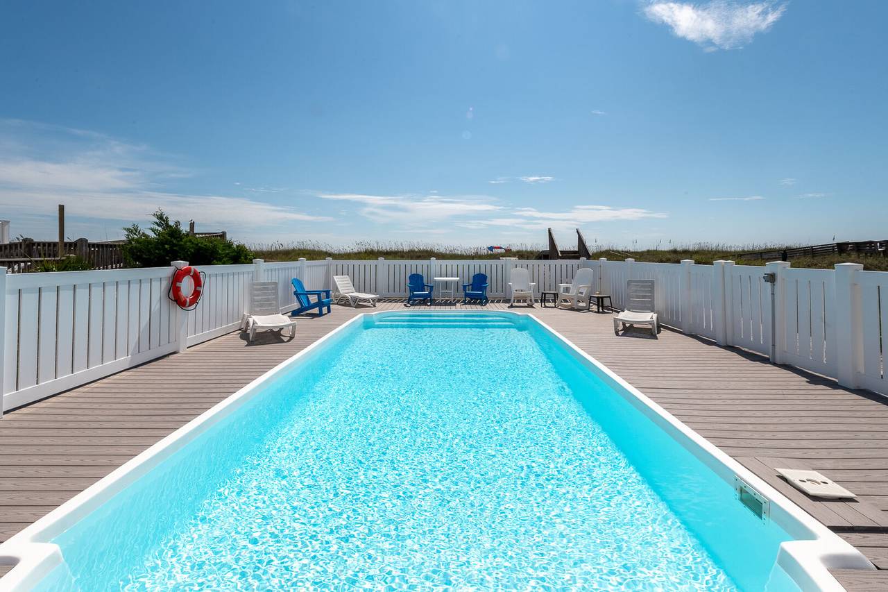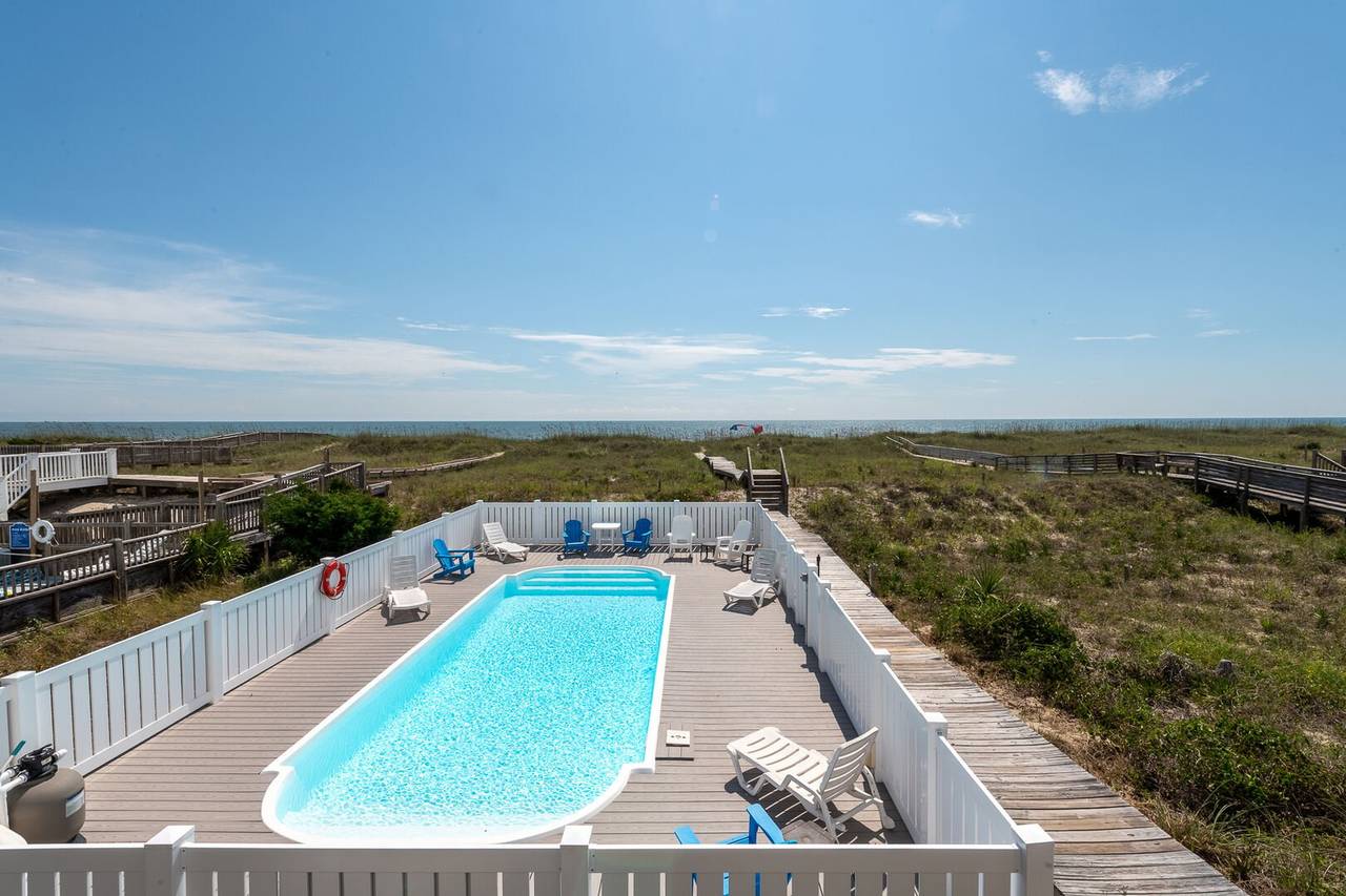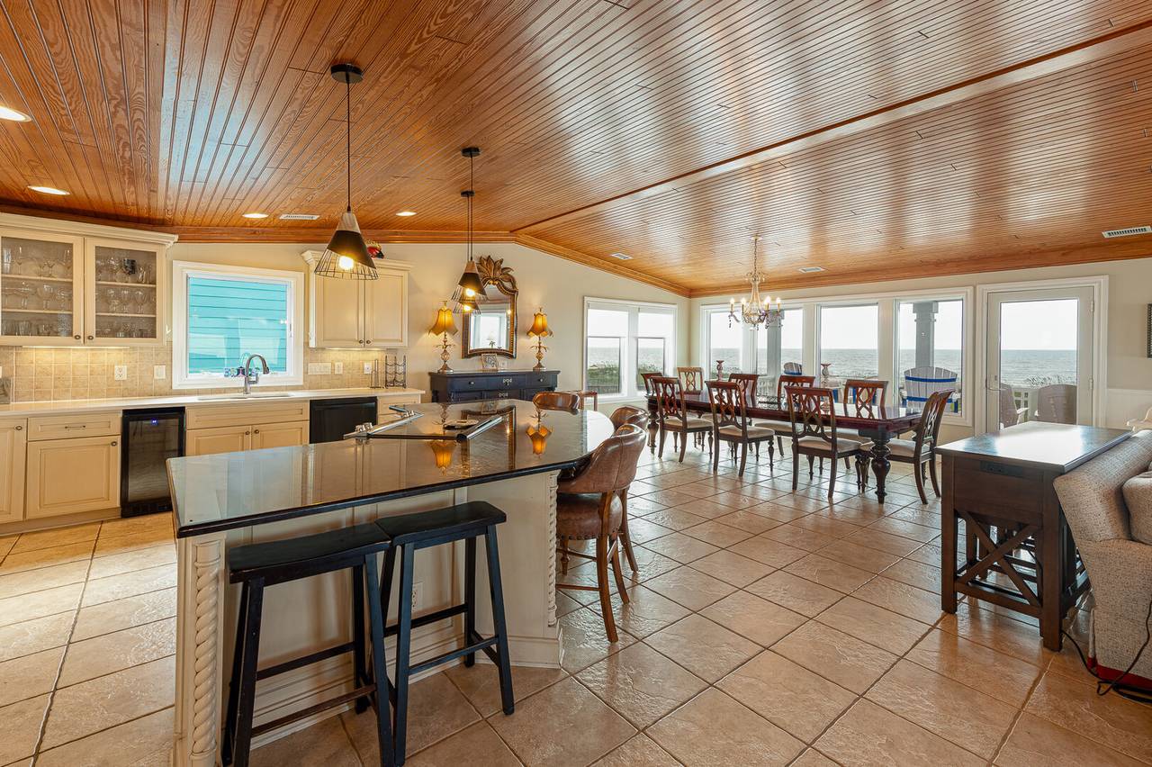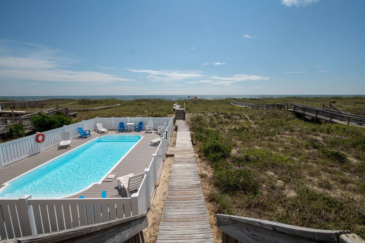 This 6-bedroom (3K,3Q), 6-bath oceanfront home boasts an inverted floor plan with fabulous views of the Atlantic Ocean. Come ready to relax in the private oceanside swimming pool (open from Easter - October) and year-round hot tub. Additional amenities include wireless high-speed internet, flat-screen TVs in all of the bedrooms (including a 39" LED in the primary and a 50" LED in the family area), and a convenient three-floor elevator. The chef in your family will appreciate the nicely appointed kitchen with a wine cooler and an outside gas grill. A baby gate and an IKEA high chair are available for the kiddos. No roll-away beds are allowed in this home.