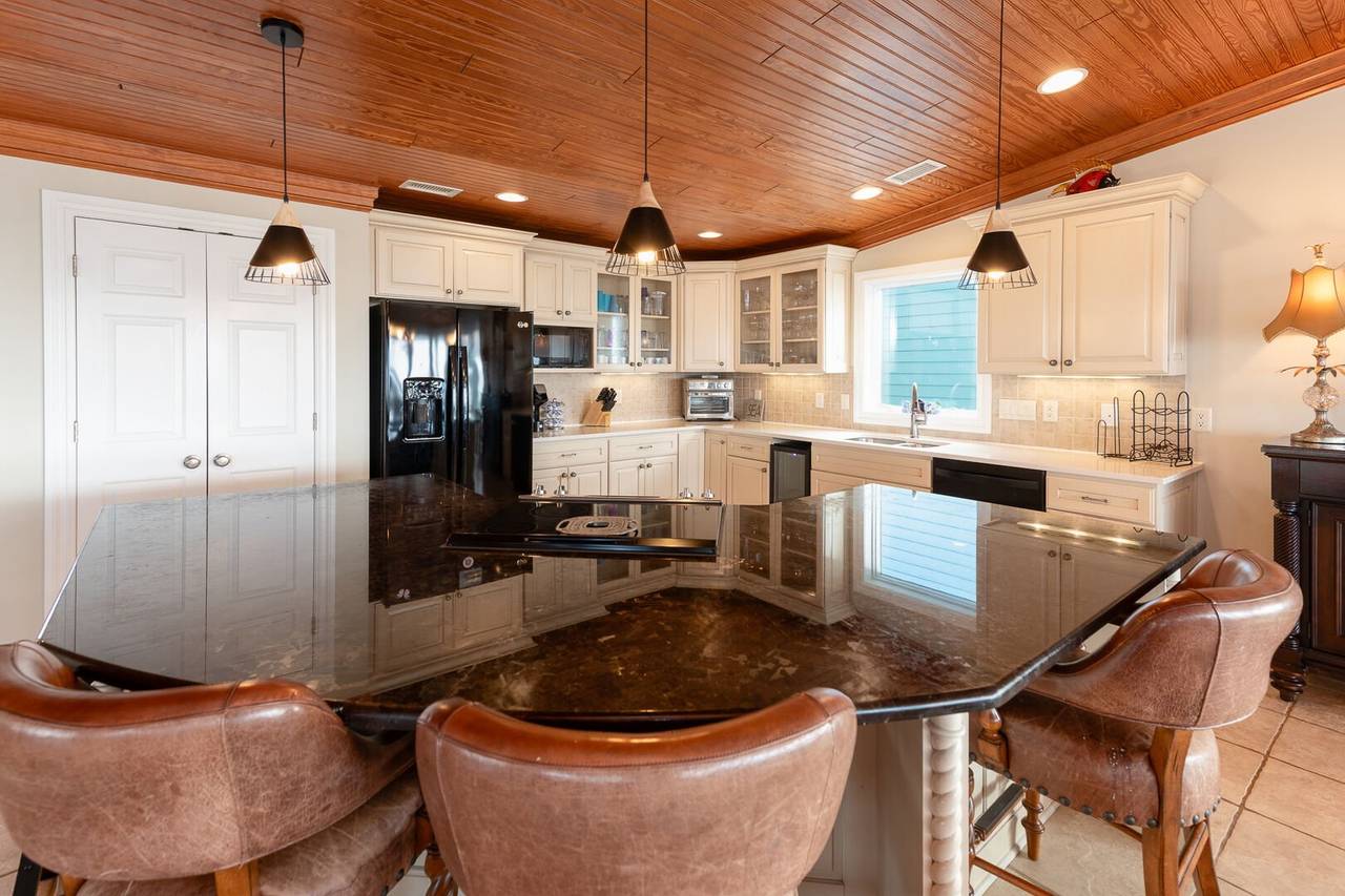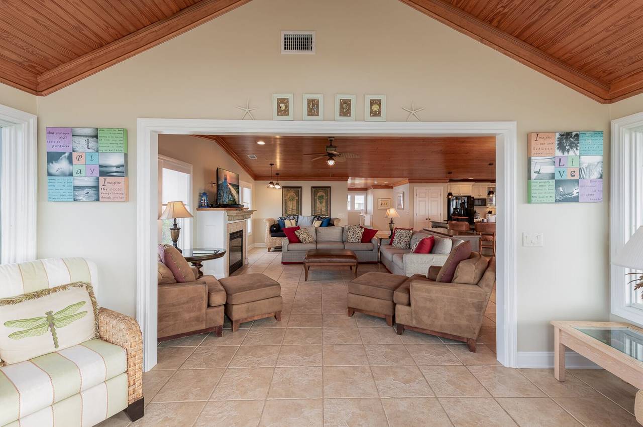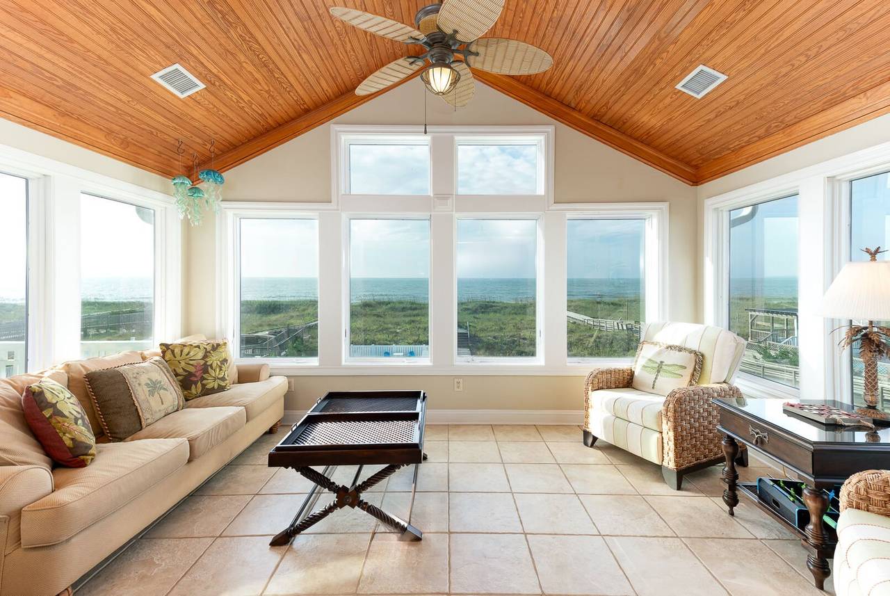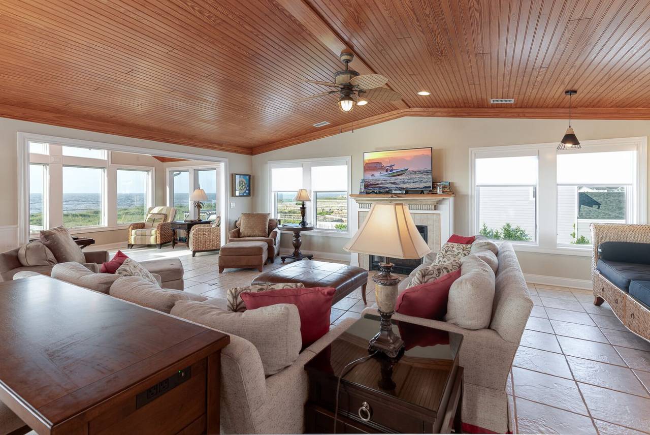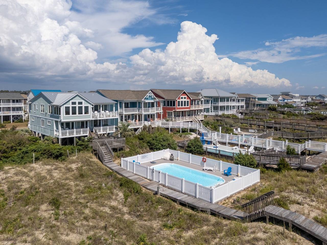 This 6-bedroom (3K,3Q), 6-bath oceanfront home boasts an inverted floor plan with fabulous views of the Atlantic Ocean. Come ready to relax in the private oceanside swimming pool (open from Easter - October) and year-round hot tub. Additional amenities include wireless high-speed internet, flat-screen TVs in all of the bedrooms (including a 39" LED in the primary and a 50" LED in the family area), and a convenient three-floor elevator. The chef in your family will appreciate the nicely appointed kitchen with a wine cooler and an outside gas grill. A baby gate and an IKEA high chair are available for the kiddos. No roll-away beds are allowed in this home.