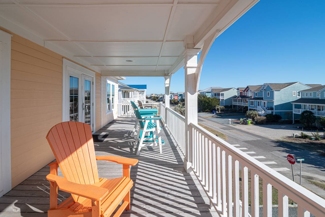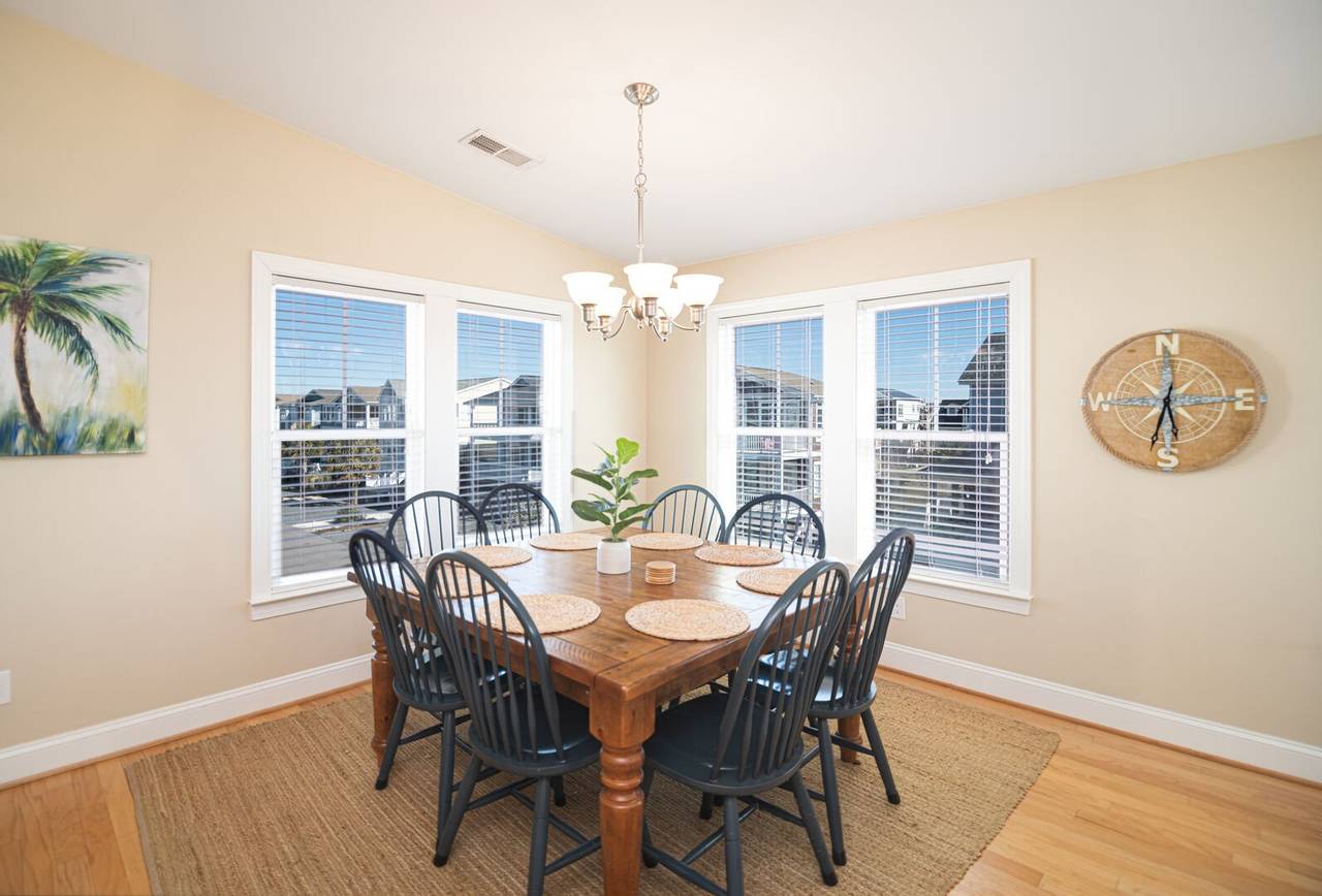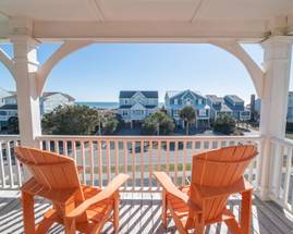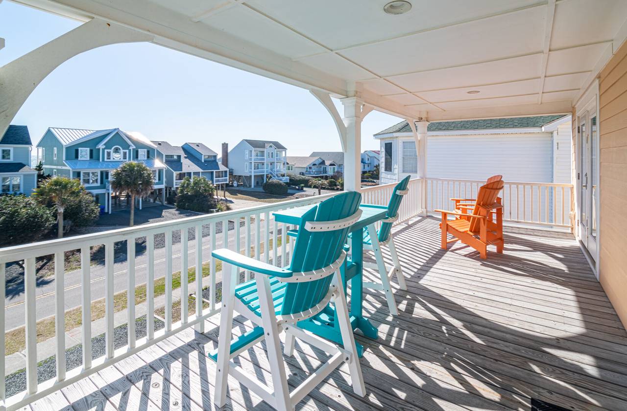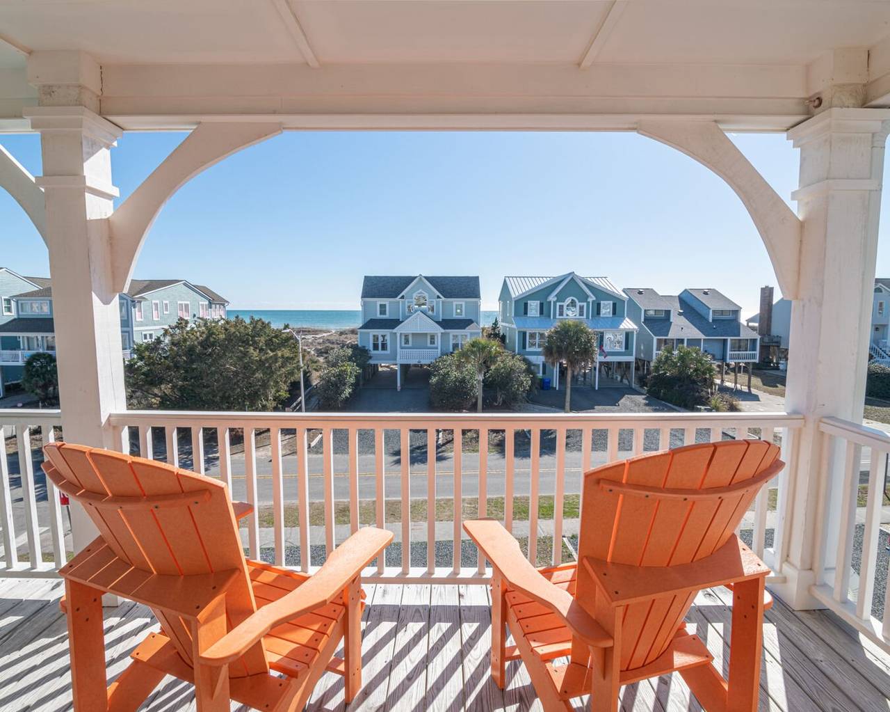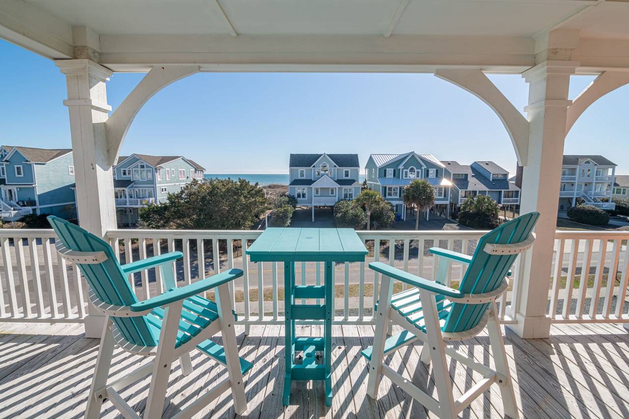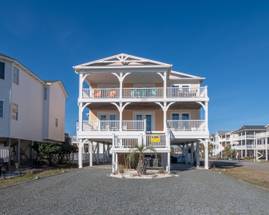Upstairs, the views of the ocean and the beach strand will blow you away from the double porches! The open floor plan with the living room, kitchen, and dining area allows you to be together while also spreading out to enjoy the island life. There is dining for 8 at the large kitchen table and then three more seats at the bar. The kitchen is updated with gourmet equipment and stainless steel appliances, and fully stocked with everything you need to prepare delicious meals. The second primary bedroom is also upstairs with ocean views, private deck access, and double vanity sinks. Grab your coffee and watch the waves, or a cocktail and take in the sunset from the upstairs deck. This is sure to be your new favorite spot on Holden Beach! There is a half bathroom off the living room for convenience. All beach equipment available for your enjoyment- Two bikes, beach chairs, a wagon, boogie boards, corn hole, pool rafts, and a pool volleyball net. Occupancy is limited to 10.