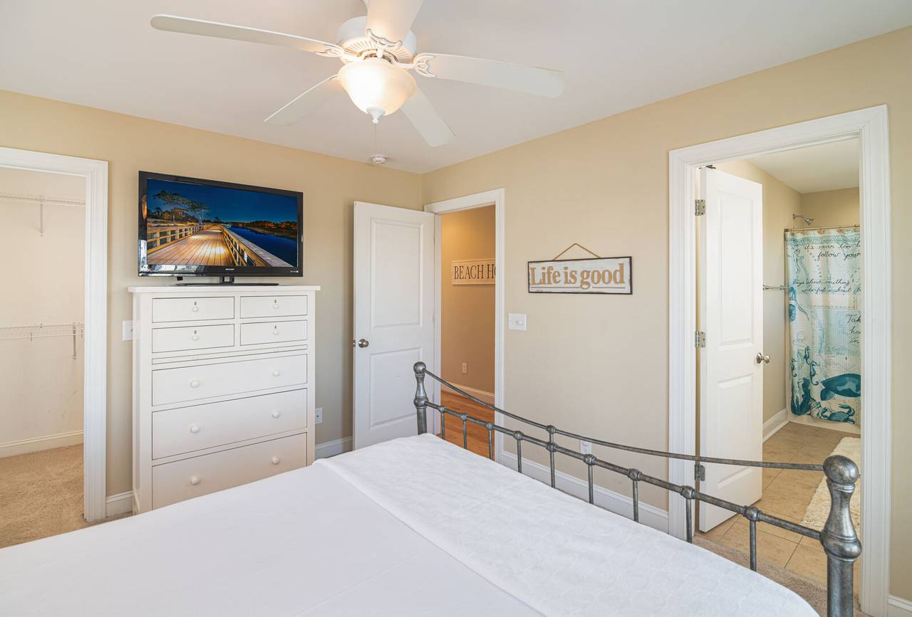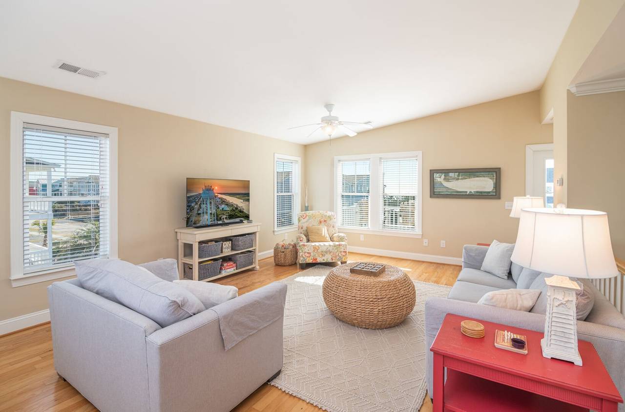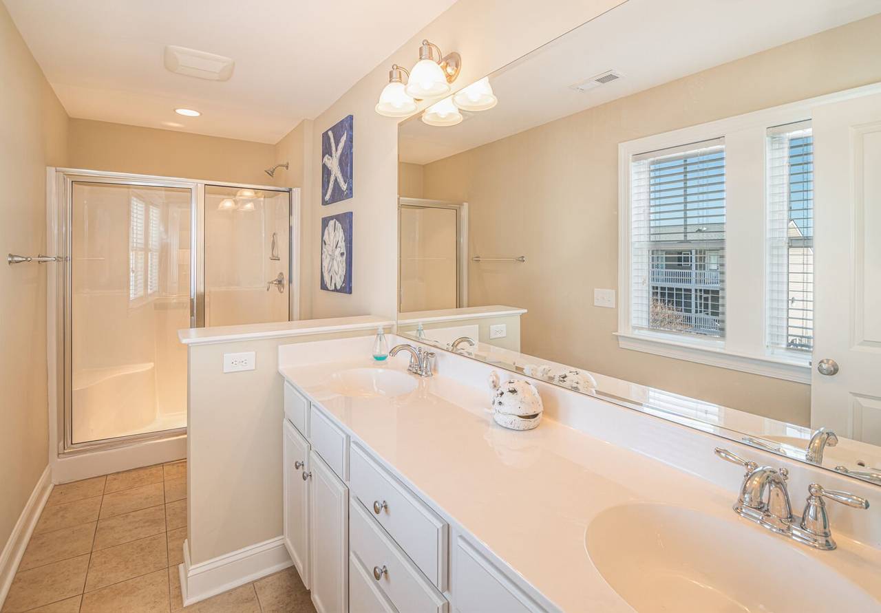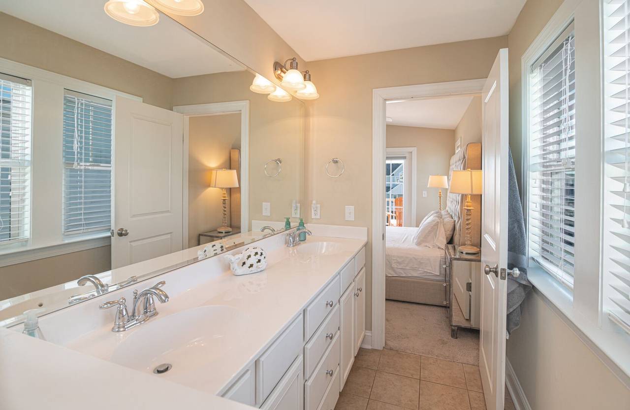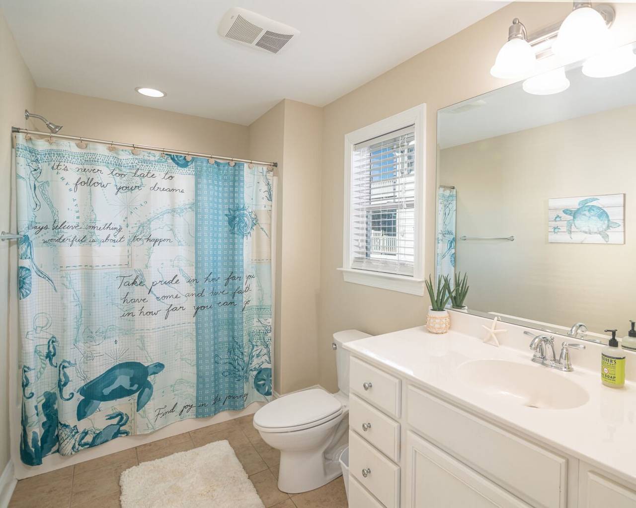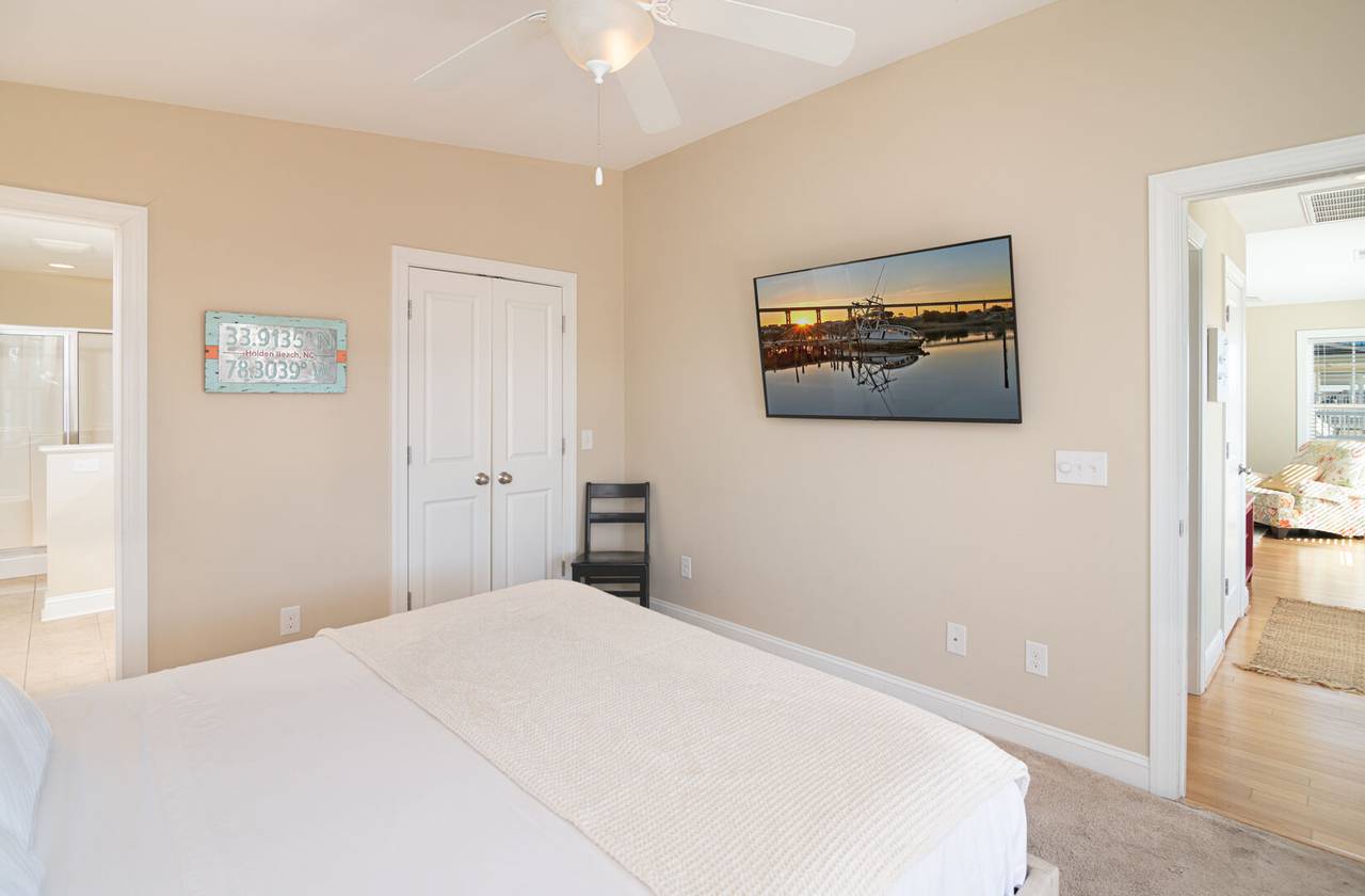 Upstairs, the views of the ocean and the beach strand will blow you away from the double porches! The open floor plan with the living room, kitchen, and dining area allows you to be together while also spreading out to enjoy the island life. There is dining for 8 at the large kitchen table and then three more seats at the bar. The kitchen is updated with gourmet equipment and stainless steel appliances, and fully stocked with everything you need to prepare delicious meals. The second primary bedroom is also upstairs with ocean views, private deck access, and double vanity sinks. Grab your coffee and watch the waves, or a cocktail and take in the sunset from the upstairs deck. This is sure to be your new favorite spot on Holden Beach! There is a half bathroom off the living room for convenience. All beach equipment available for your enjoyment- Two bikes, beach chairs, a wagon, boogie boards, corn hole, pool rafts, and a pool volleyball net. Occupancy is limited to 10.