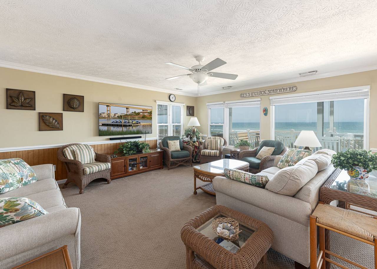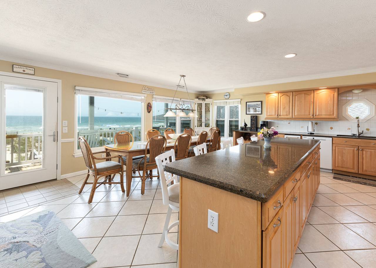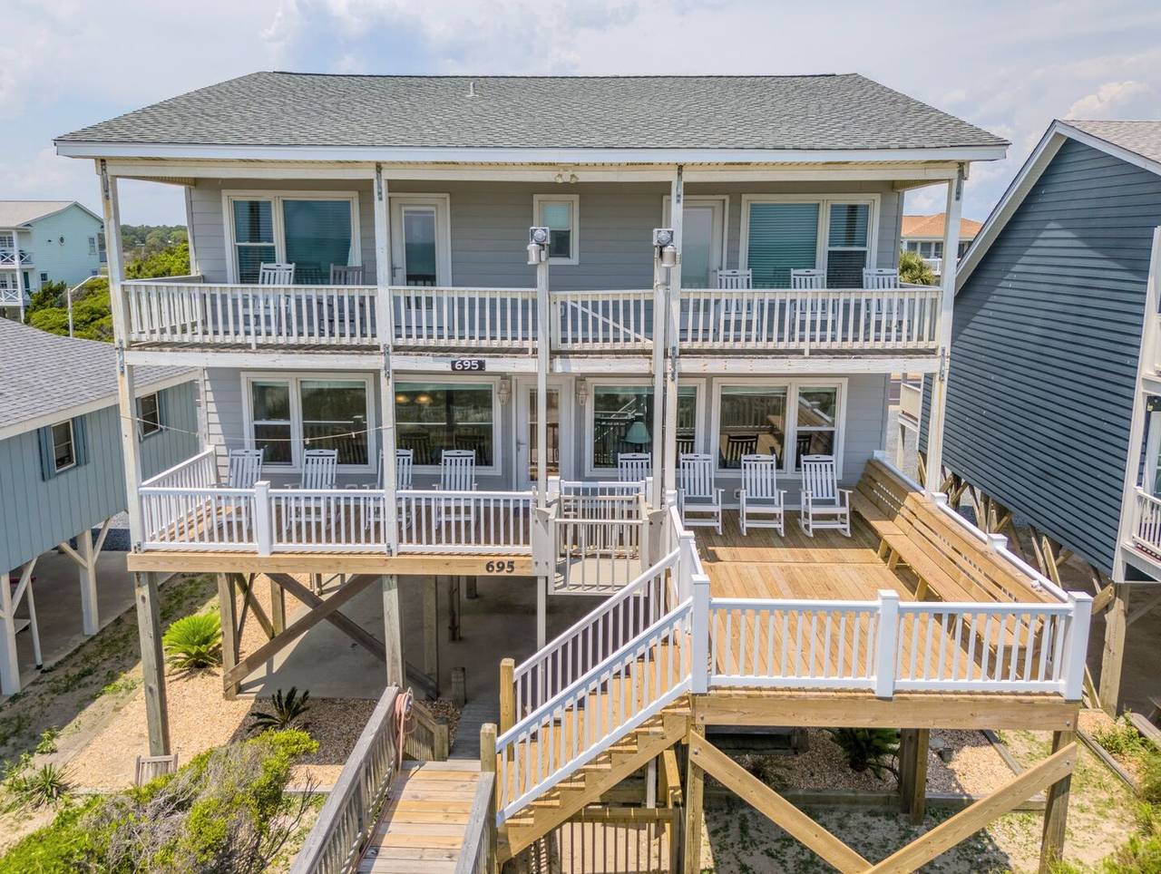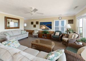 The best of vacations is waiting for you in this gracious oceanfront home (2K, 3Q, 2T). Enjoy three covered porches and an ocean sun deck. This Hobbs Smart Home is a beautifully decorated, open floor plan with all standard amenities and many extras including a wet bar, freestanding icemaker, and flat-screen TVs.