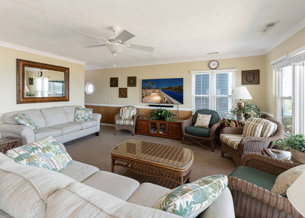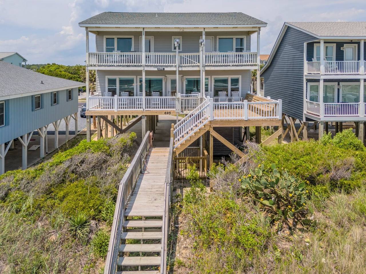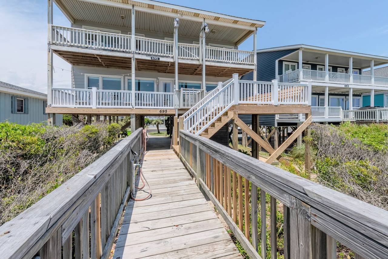 The best of vacations is waiting for you in this gracious oceanfront home (2K, 3Q, 2T). Enjoy three covered porches and an ocean sun deck. This Hobbs Smart Home is a beautifully decorated, open floor plan with all standard amenities and many extras including a wet bar, freestanding icemaker, and flat-screen TVs.