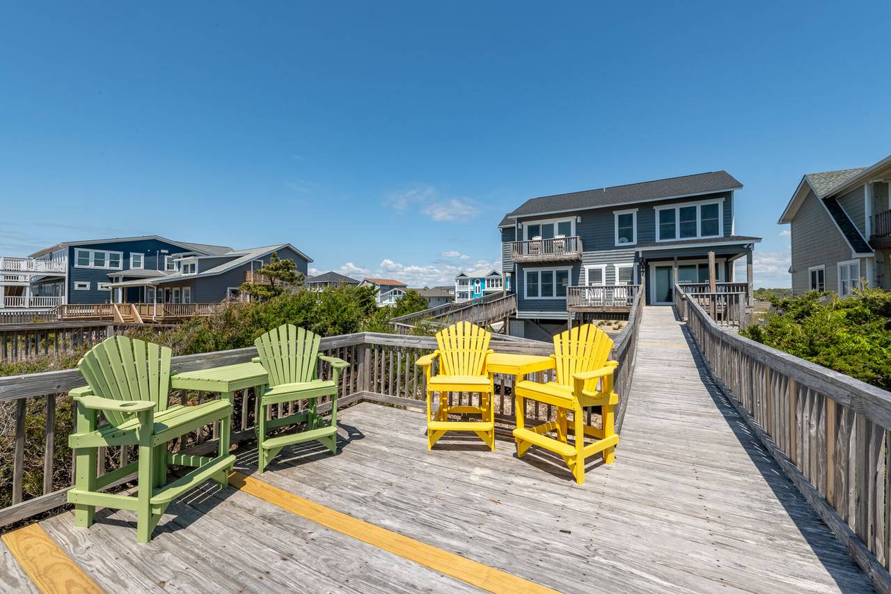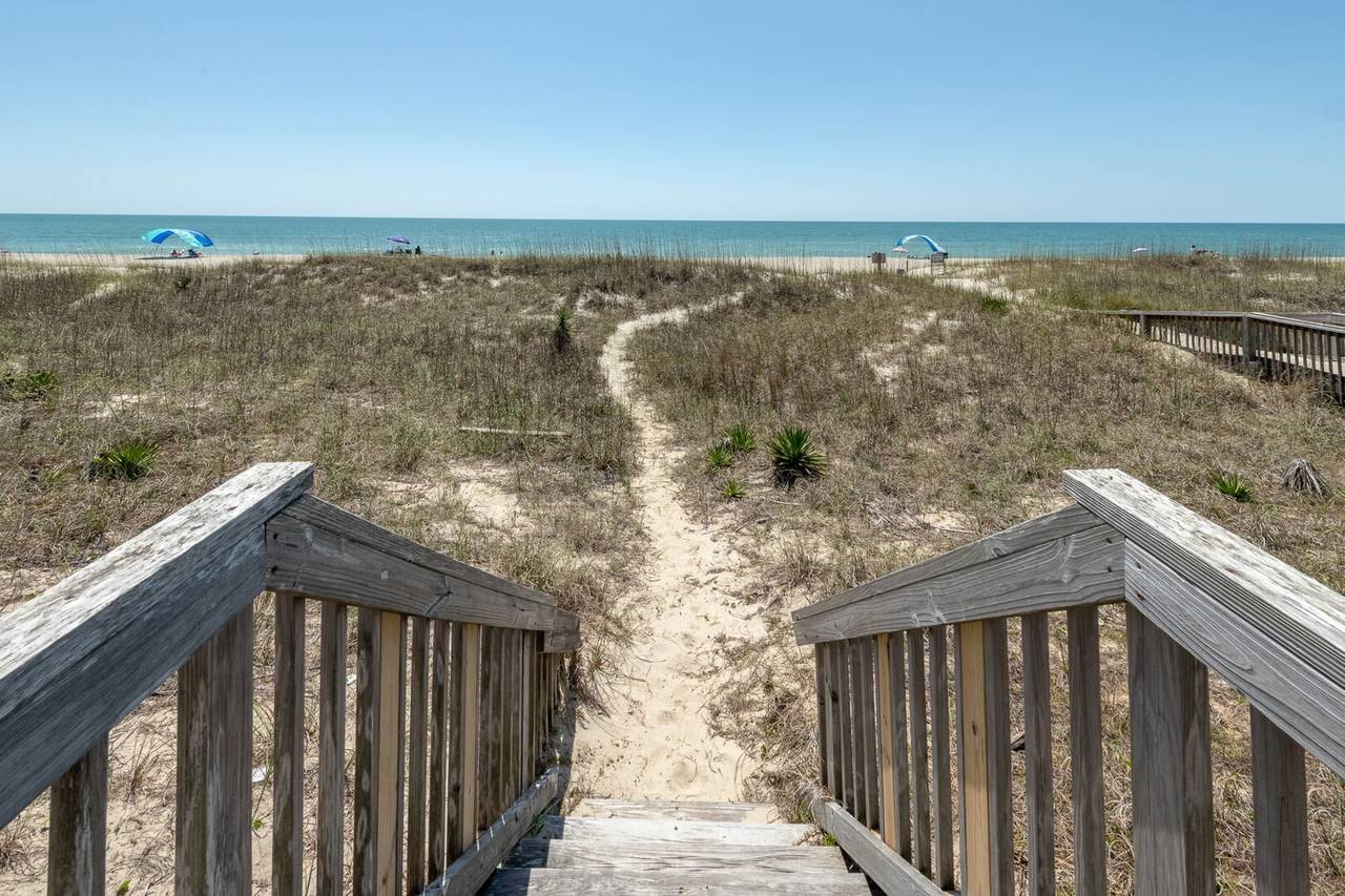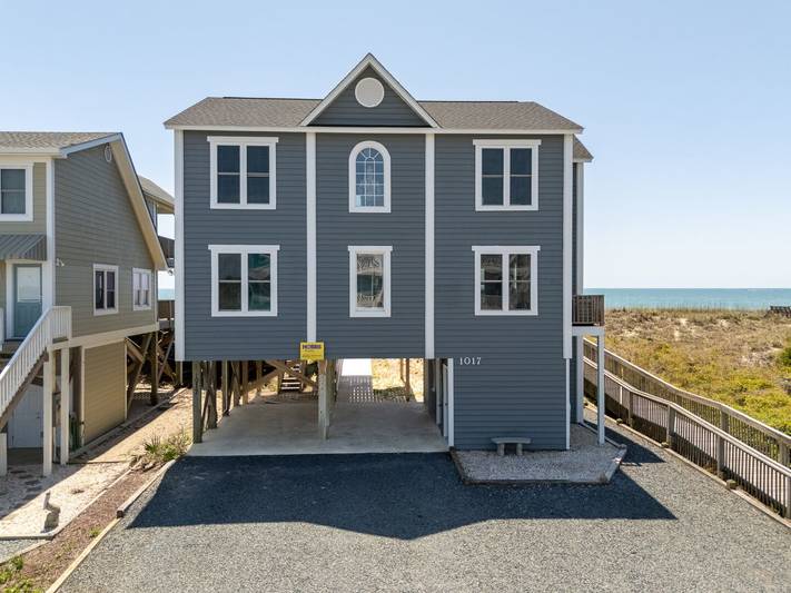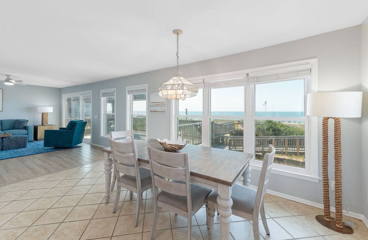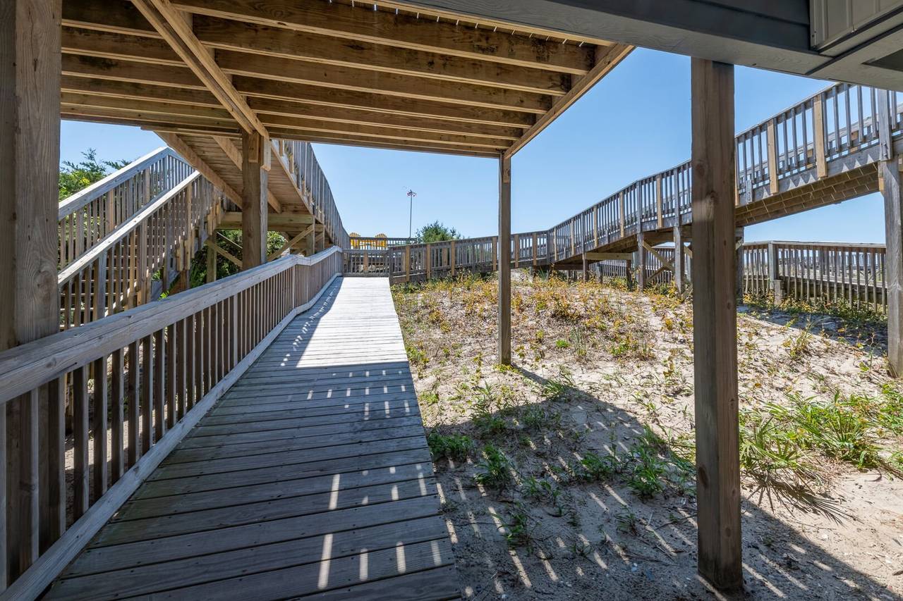 New to the Hobbs Realty rental program for 2025, this stunning oceanfront property is sure to make your beach vacation unforgettable. With 4 spacious bedrooms, 3 full bathrooms, and two levels of beautifully appointed living space, this home offers the perfect blend of comfort and coastal charm. Step outside to breathtaking views of the natural dunes and the endless Atlantic Ocean. Enjoy the best of both worlds with expansive covered and uncovered decks, offering the perfect spot for sunbathing or relaxing in the shade. Feel the refreshing ocean breeze as you listen to the soothing sounds of waves crashing, steps away from your private beach access. For added convenience, there’s a ramp from the ground level to the first floor, making access to the first living level a breeze.