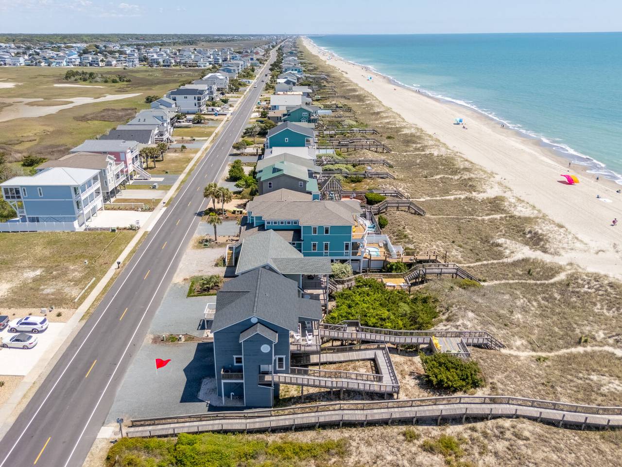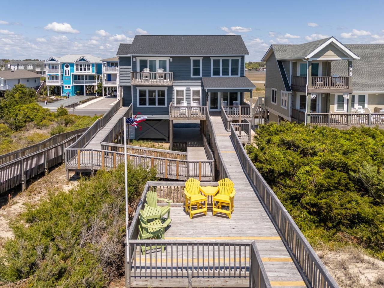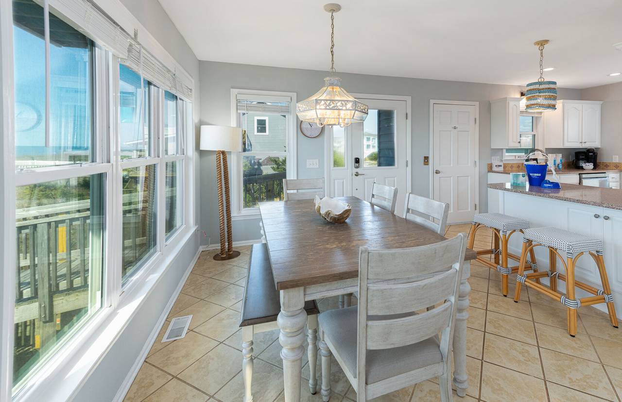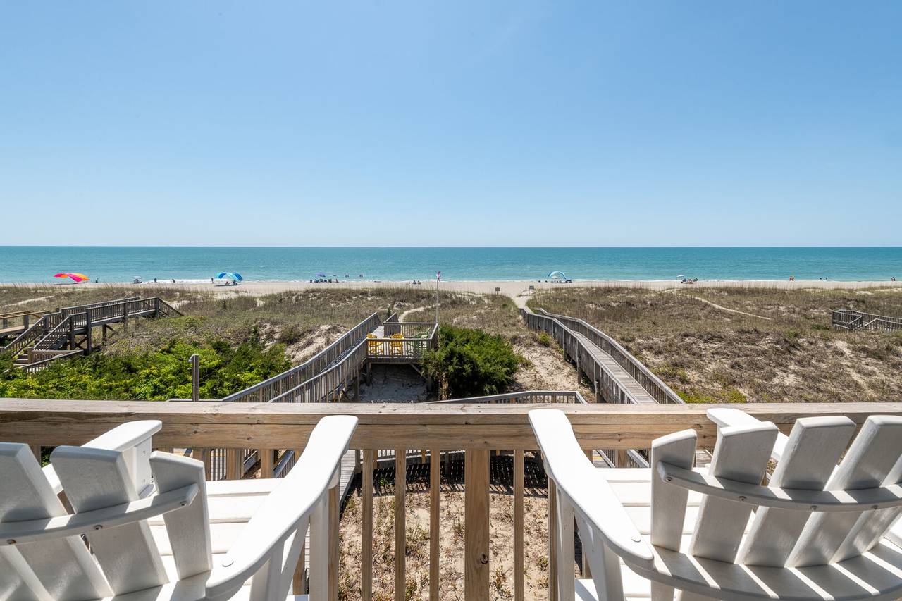 New to the Hobbs Realty rental program for 2025, this stunning oceanfront property is sure to make your beach vacation unforgettable. With 4 spacious bedrooms, 3 full bathrooms, and two levels of beautifully appointed living space, this home offers the perfect blend of comfort and coastal charm. Step outside to breathtaking views of the natural dunes and the endless Atlantic Ocean. Enjoy the best of both worlds with expansive covered and uncovered decks, offering the perfect spot for sunbathing or relaxing in the shade. Feel the refreshing ocean breeze as you listen to the soothing sounds of waves crashing, steps away from your private beach access. For added convenience, there’s a ramp from the ground level to the first floor, making access to the first living level a breeze.