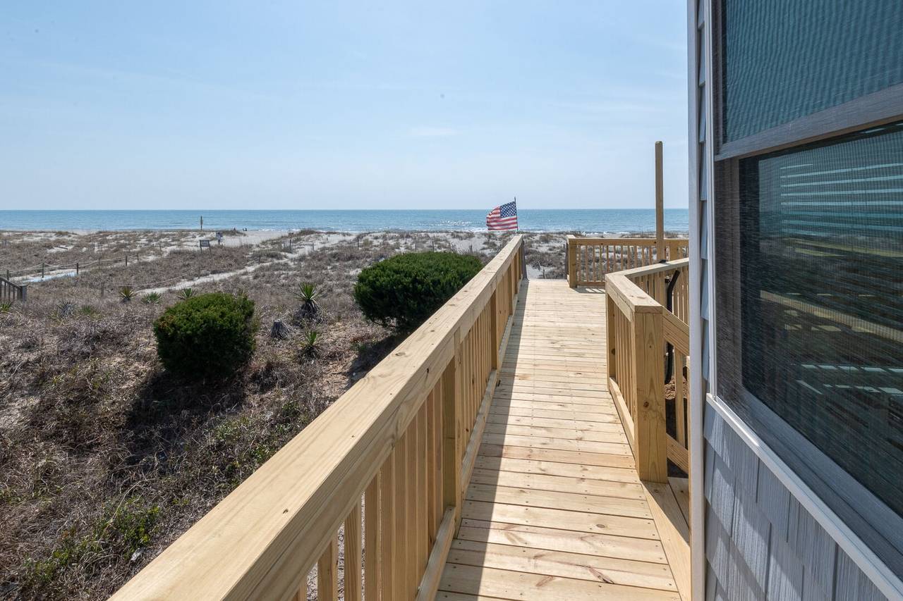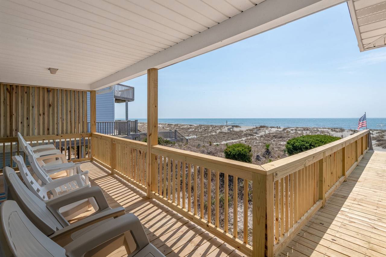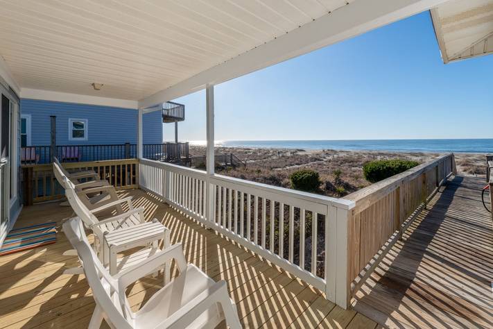 Sweet Tea By the Sea is an oceanfront 4-bedroom (2K, 1Q, 1F) beach home with spectacular ocean views. Catch your rays on the deck atop the dunes. Relax and rock on the covered oceanside porch. Enjoy the fully enclosed sunroom with a workstation to check emails and sip your morning coffee, while