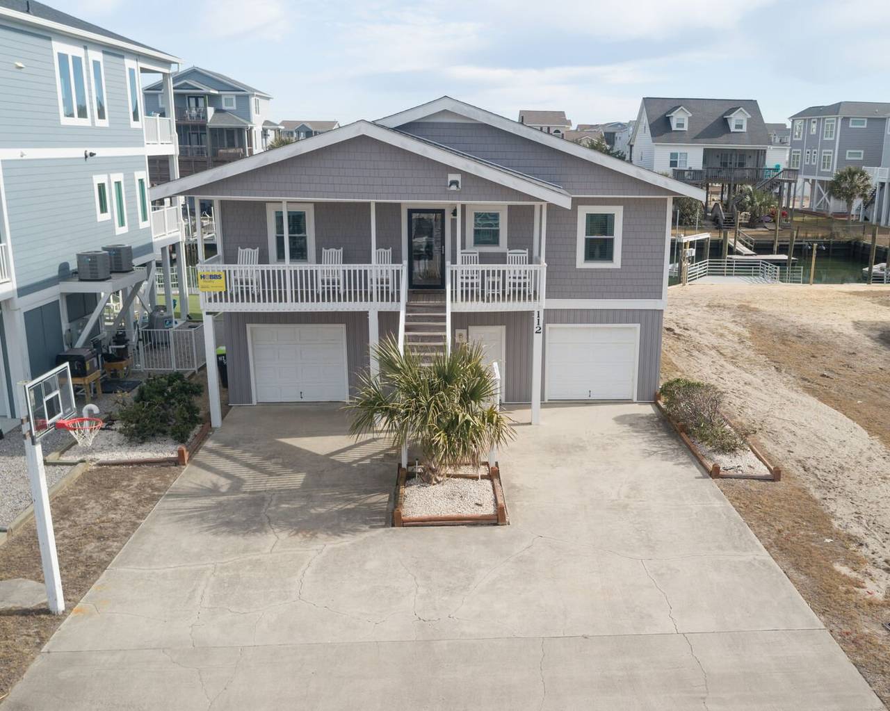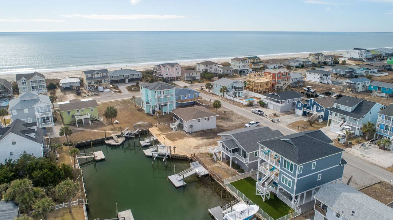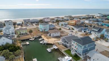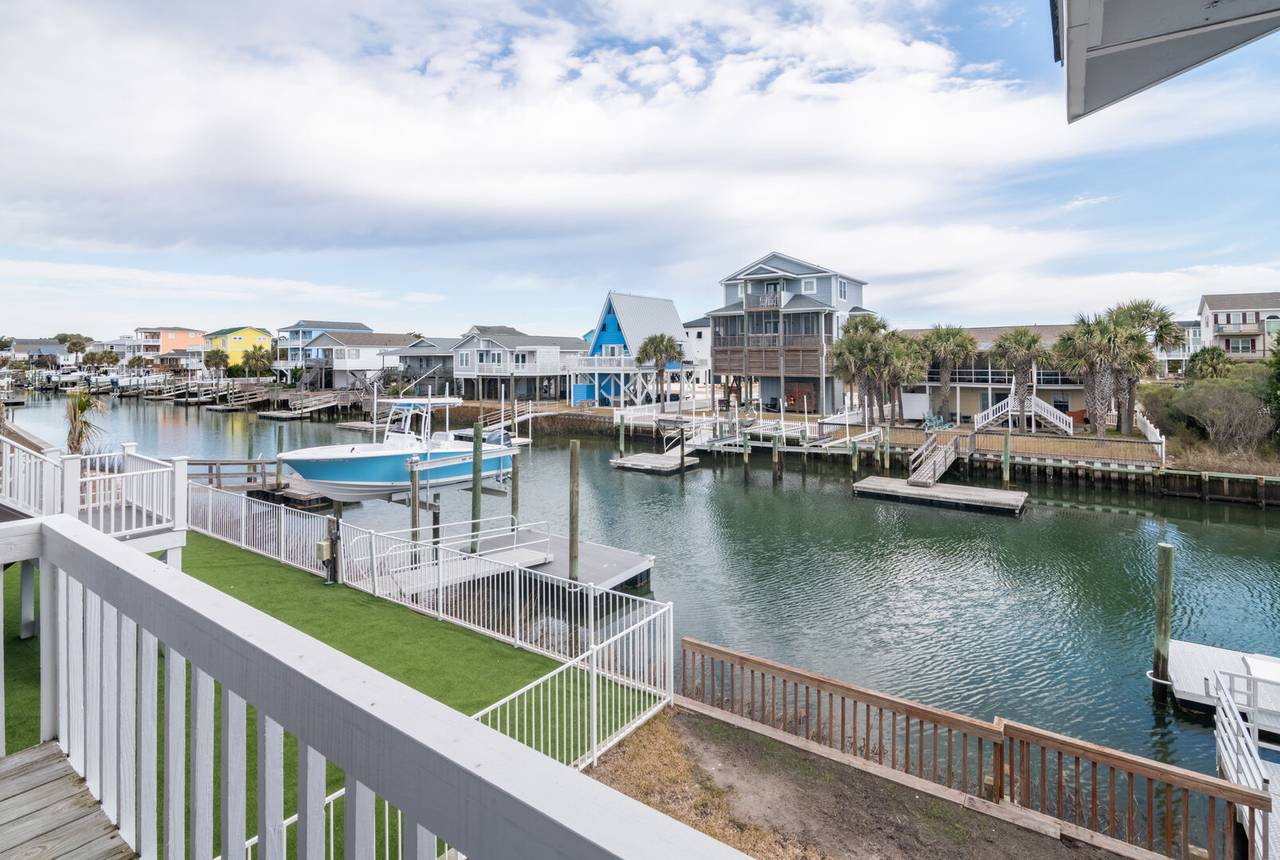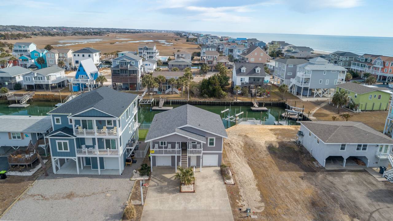 This 4 bedroom/2 bathroom dream boasts a kitchen with stainless steel appliances, a double oven, and a Keurig! The open-concept floor plan is light and airy and allows for maximum quality time! Enjoy meals at the countertop bar or large dining table. Sit and relax on the screened canal porch and watch the tide roll in. Just a quick walk to the beach with two convenient beach accesses to both the left and right of the street entrance, both beach accesses are about 100 yards away. Have a blast with water sports from the aluminum floating dock and ramp. The floating dock measures 8x16 feet for all of the boat lovers in the group. Kayaks, jet skis, paddleboards, and more! Or enjoy some fresh seafood by casting your fishing pole or dropping a crab trap from the convenience of your backyard. Enjoy a game of basketball with the hoop in the front yard/driveway. The laundry area is located in the ground-level storage room inside the garage, not connected to stairs inside the home.